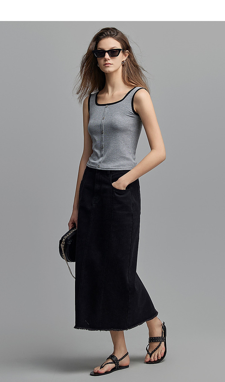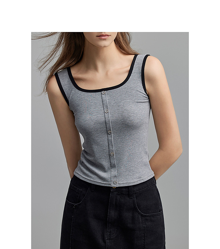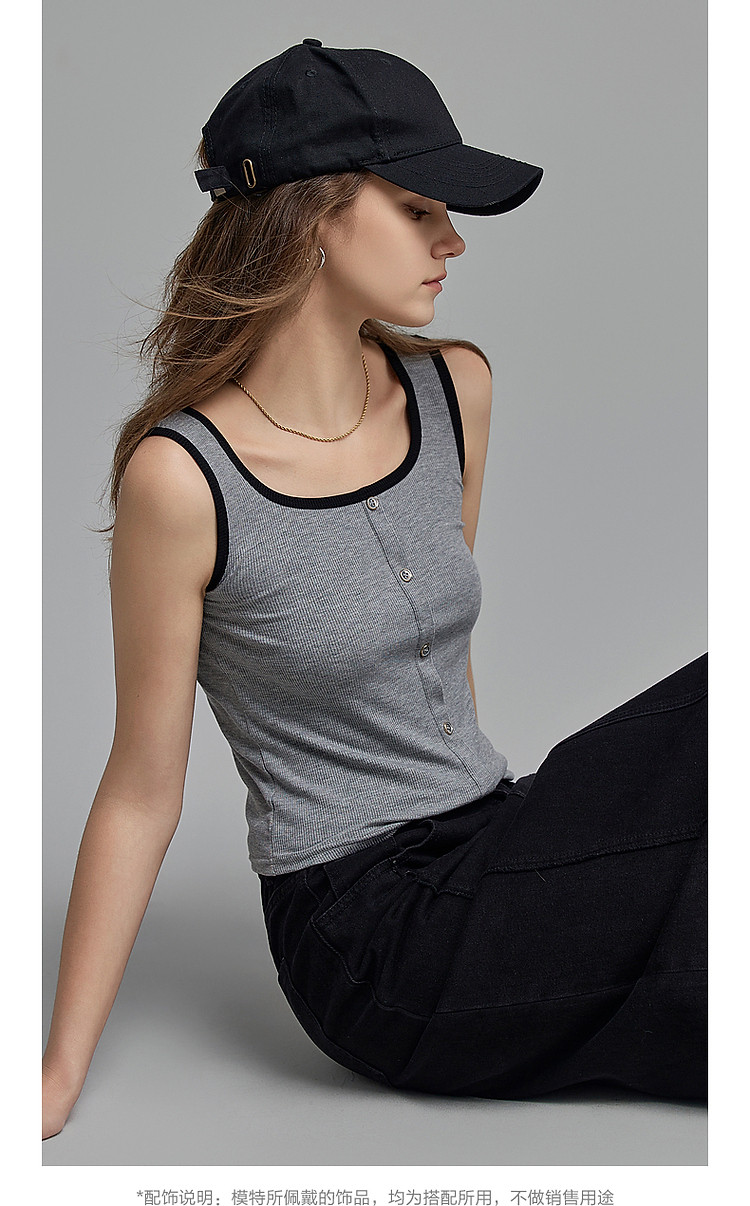 【胶囊背心】夏法式方领撞色修身无袖针织背心内搭显瘦打底上衣 774593