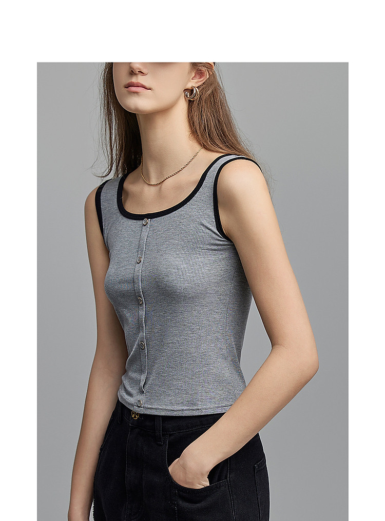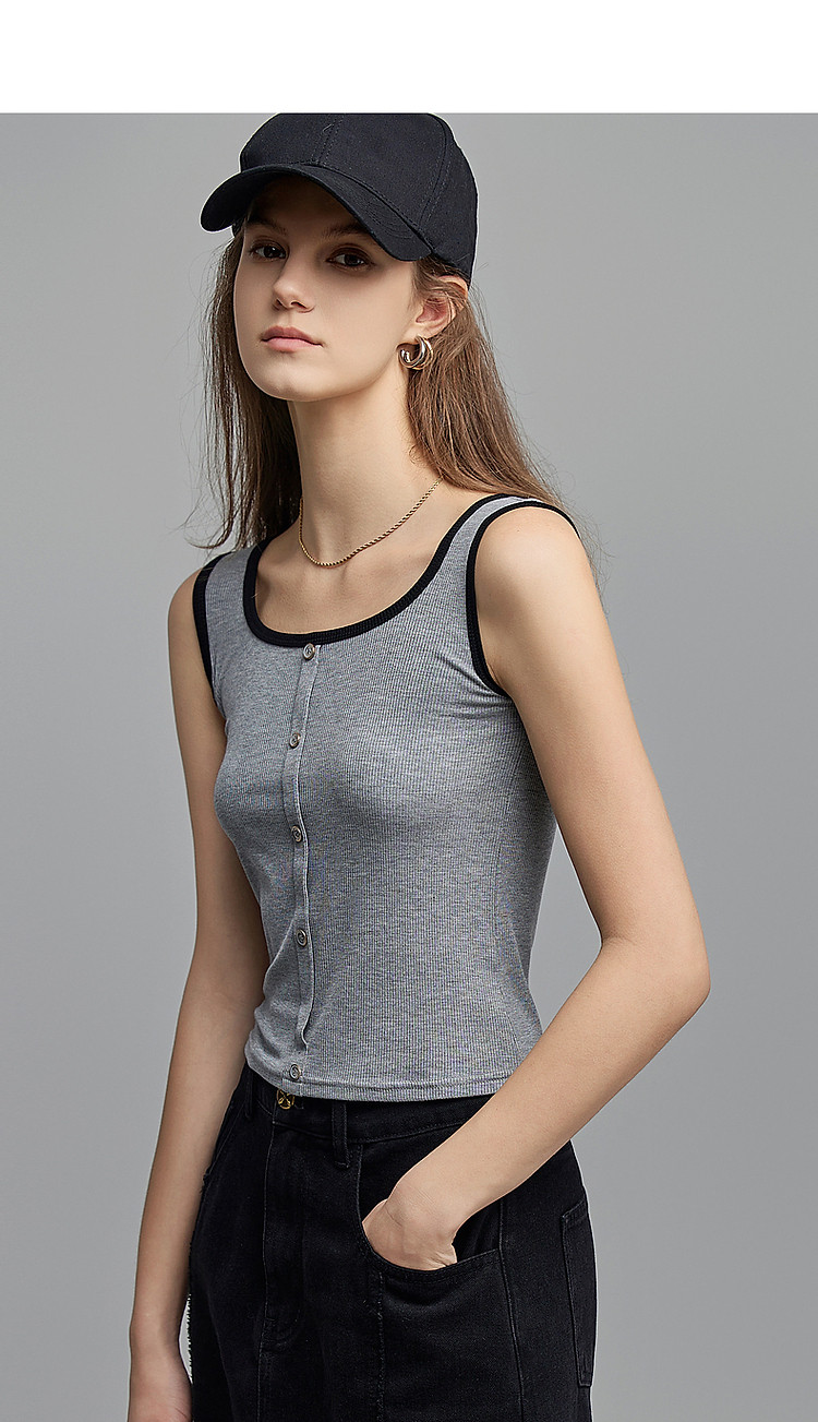 商品名称:【胶囊背心】夏法式方领撞色修身无袖针织背心内搭显瘦打底上衣 774593