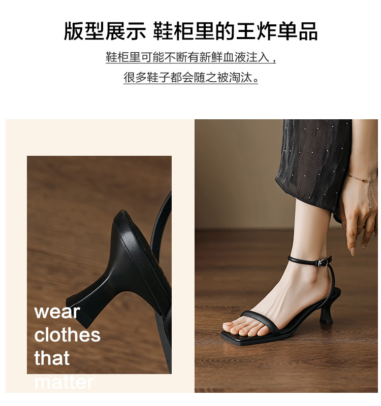 夏季优雅简约气质高级感纯色条带酒杯跟一字带女凉鞋 832897