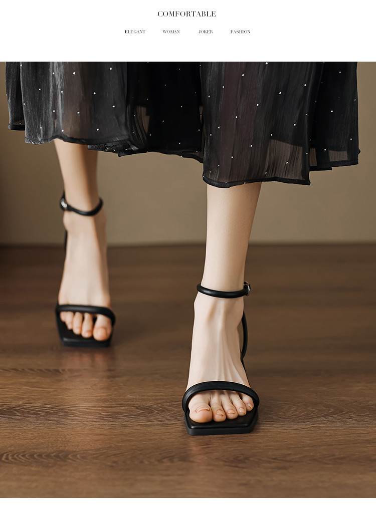 商品名称:夏季优雅简约气质高级感纯色条带酒杯跟一字带女凉鞋 832897