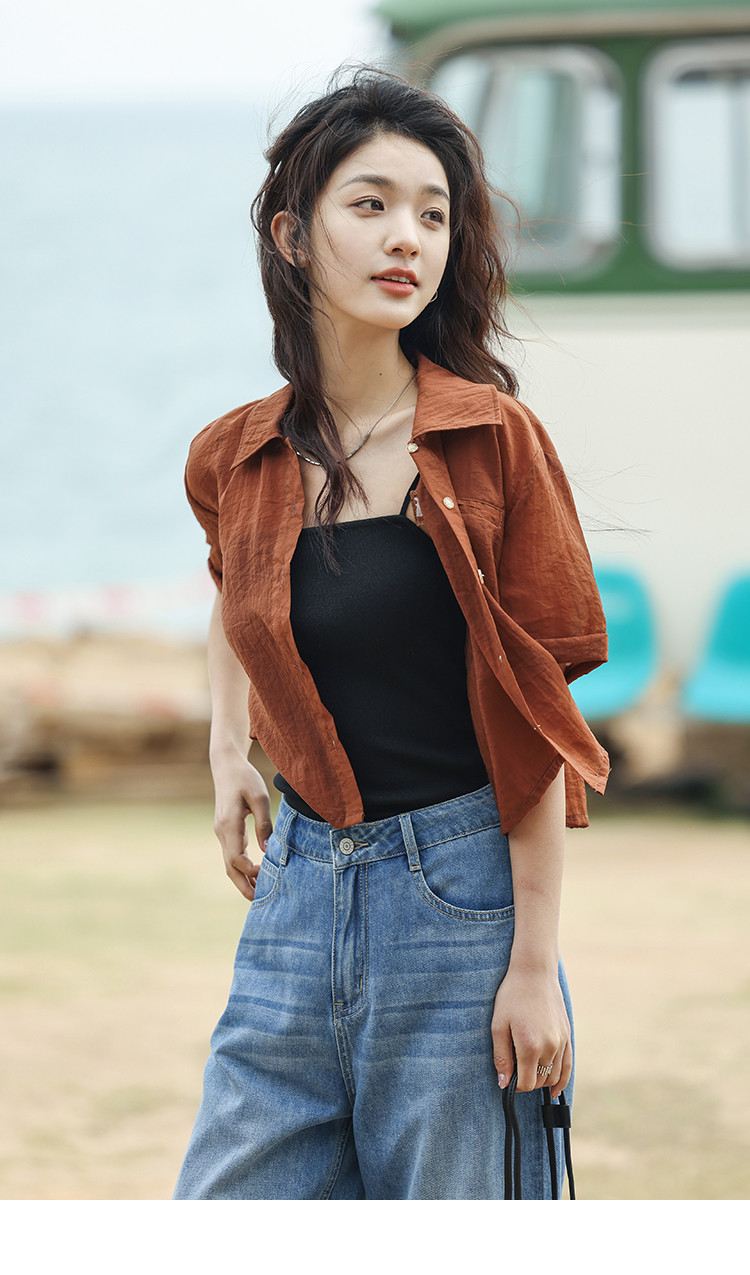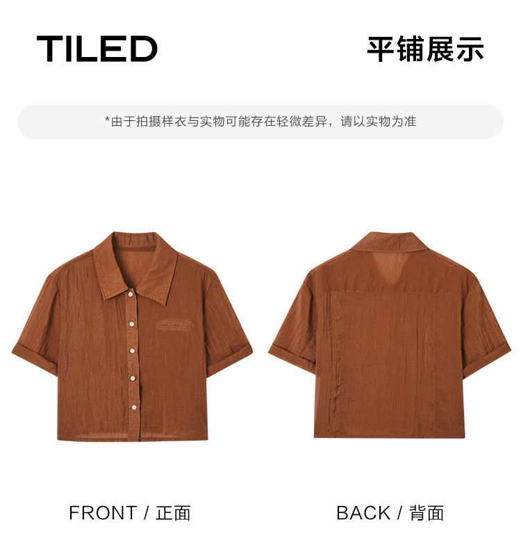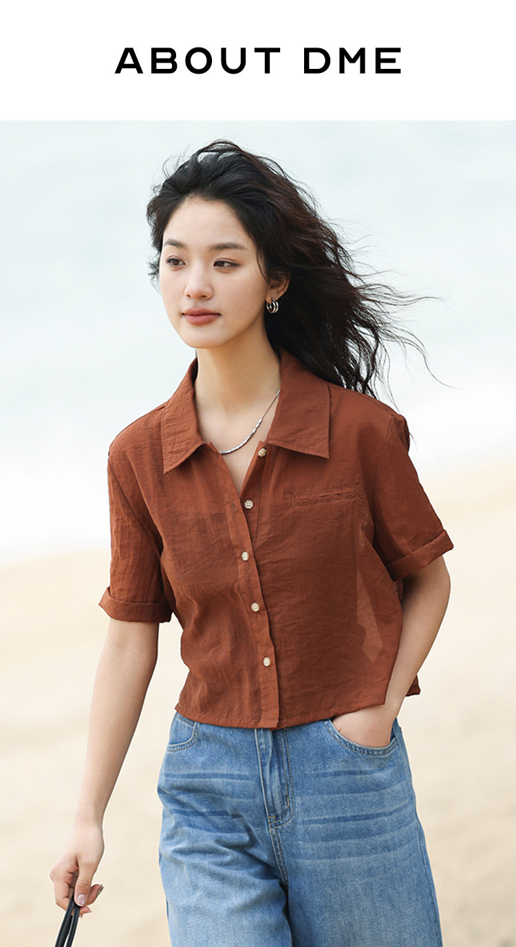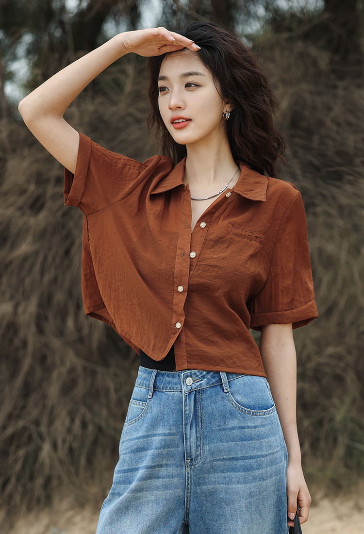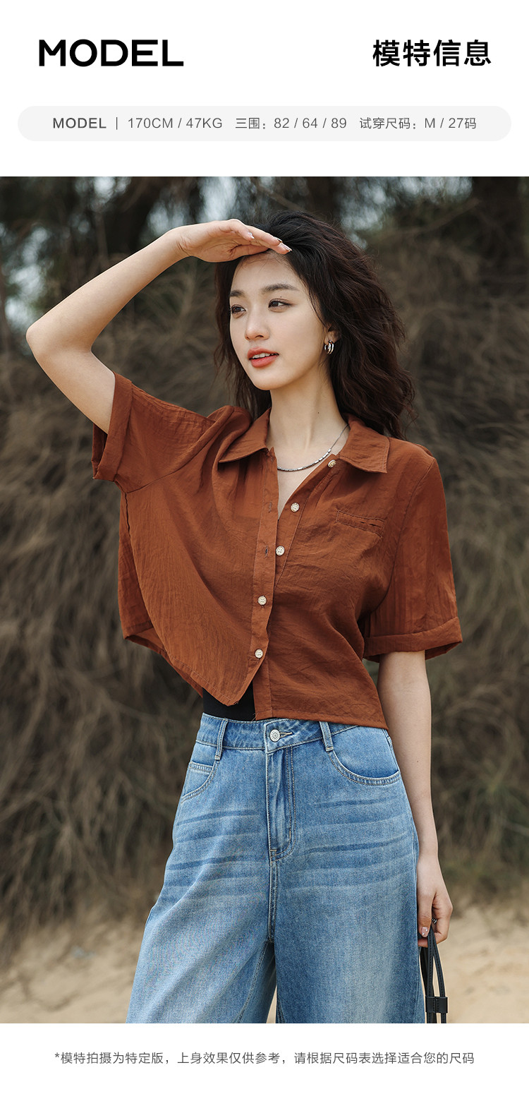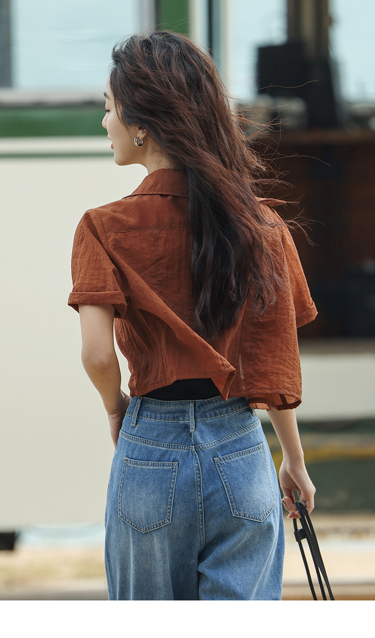 【轻薄感短款衬衫】夏款翻领一字袋短袖衬衫女 375298