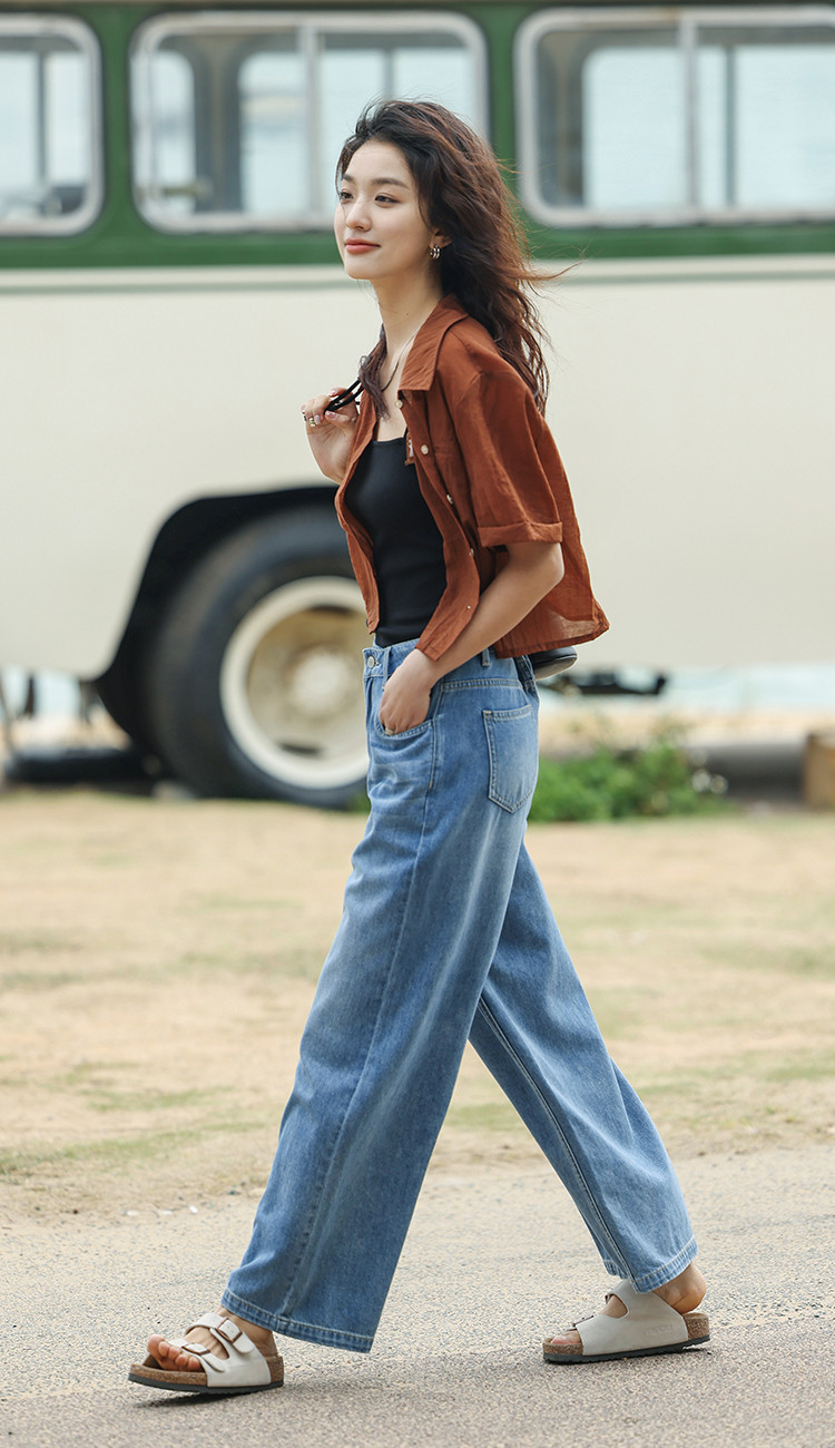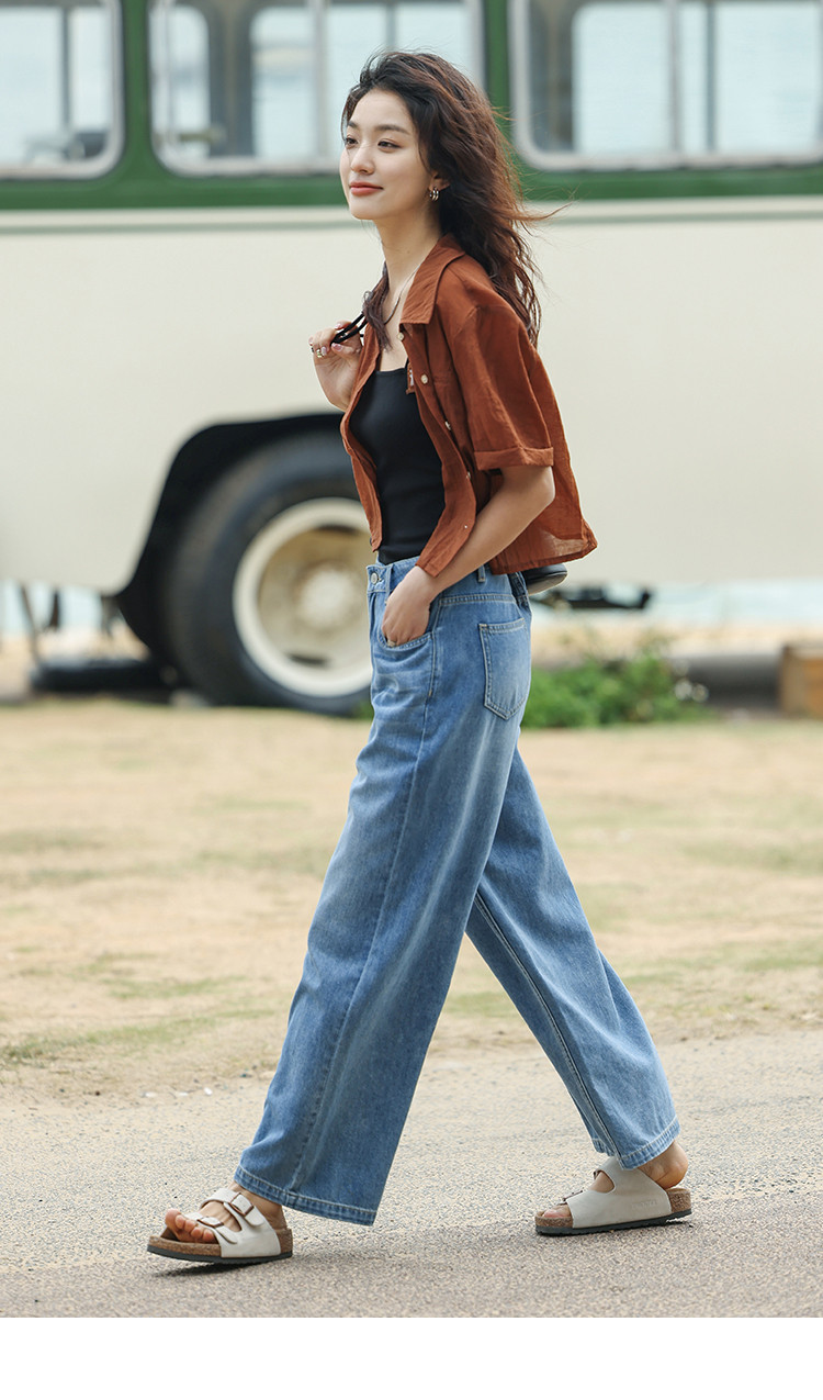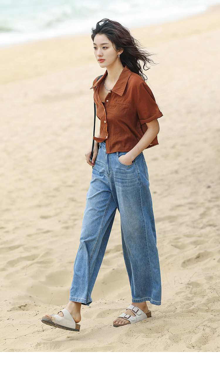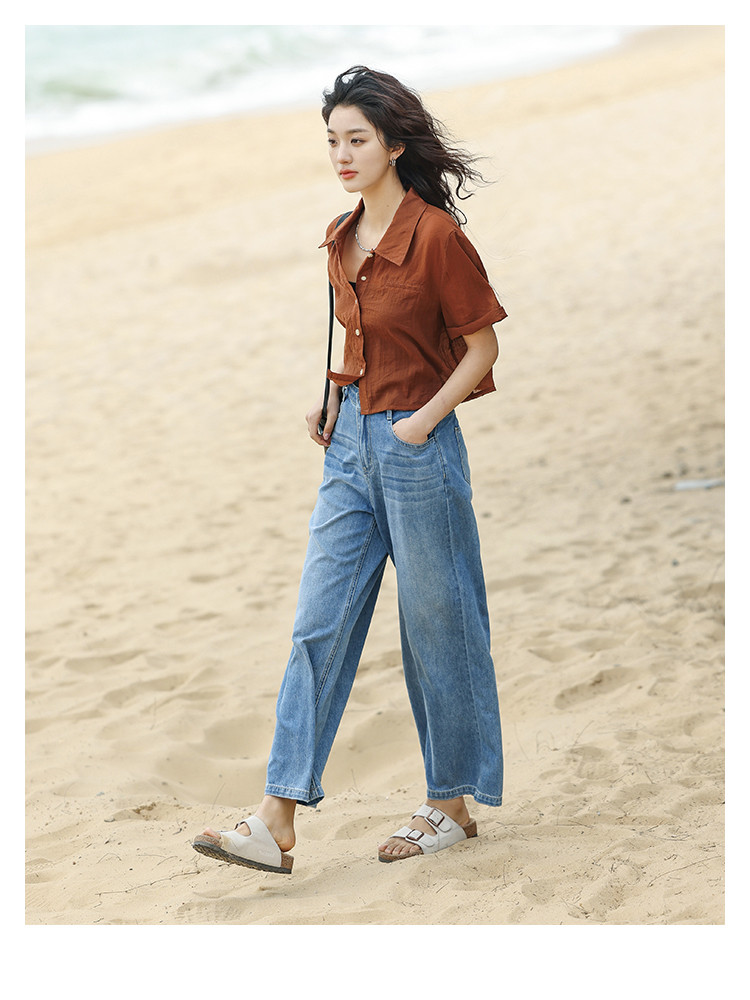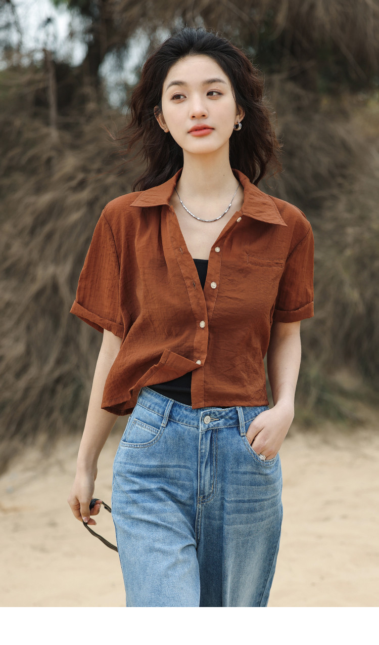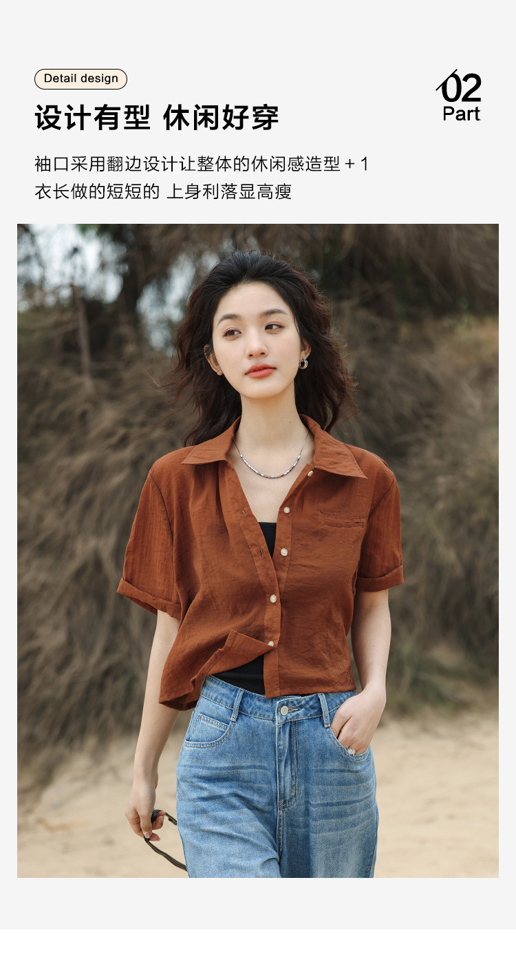 商品名称:【轻薄感短款衬衫】夏款翻领一字袋短袖衬衫女 375298