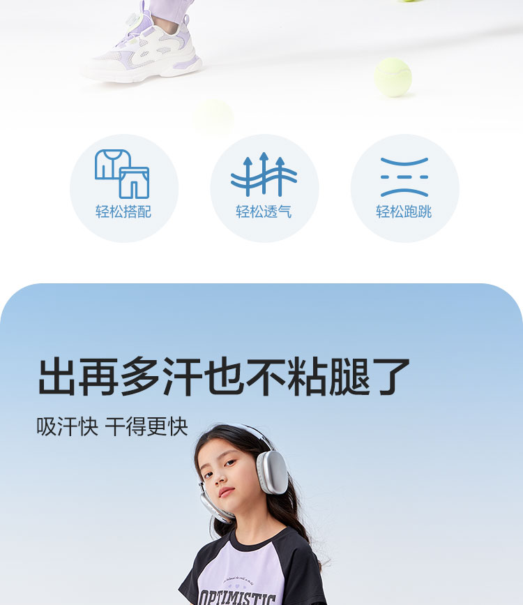 百搭轻薄运动裤儿童裤子女童夏季中大童休闲长裤清凉舒适 378053