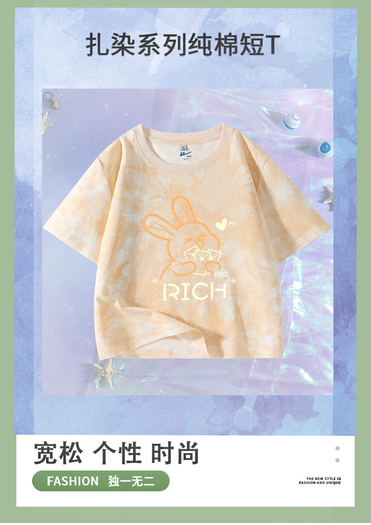 【女装】夏季扎染短款短袖纯棉女式T恤显瘦设计感上衣 474259