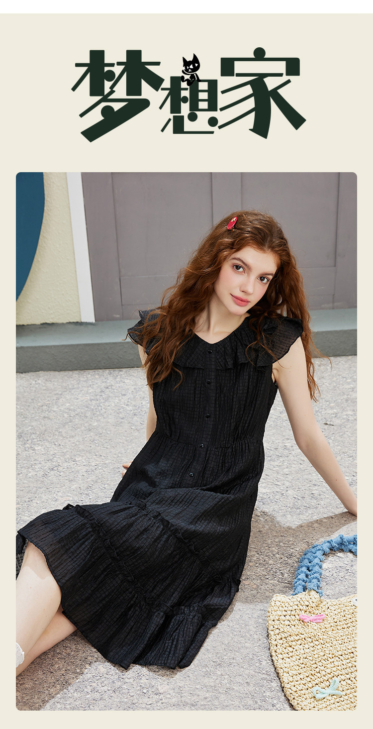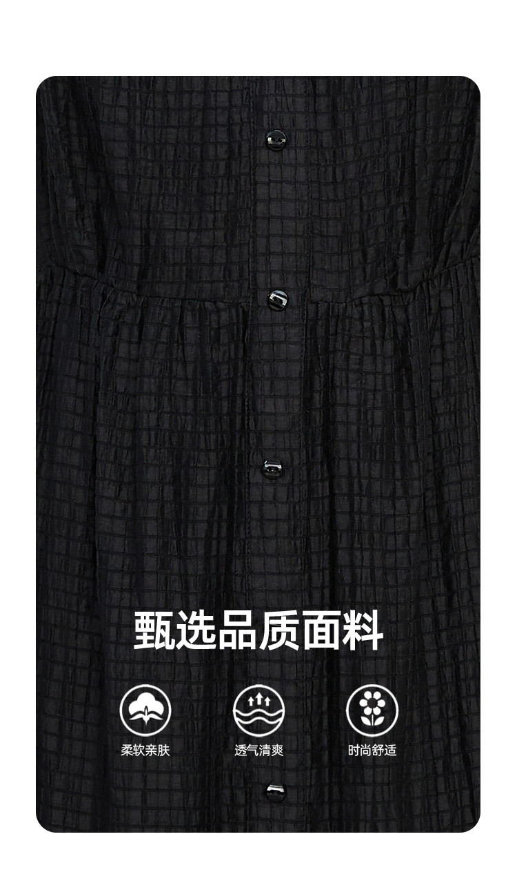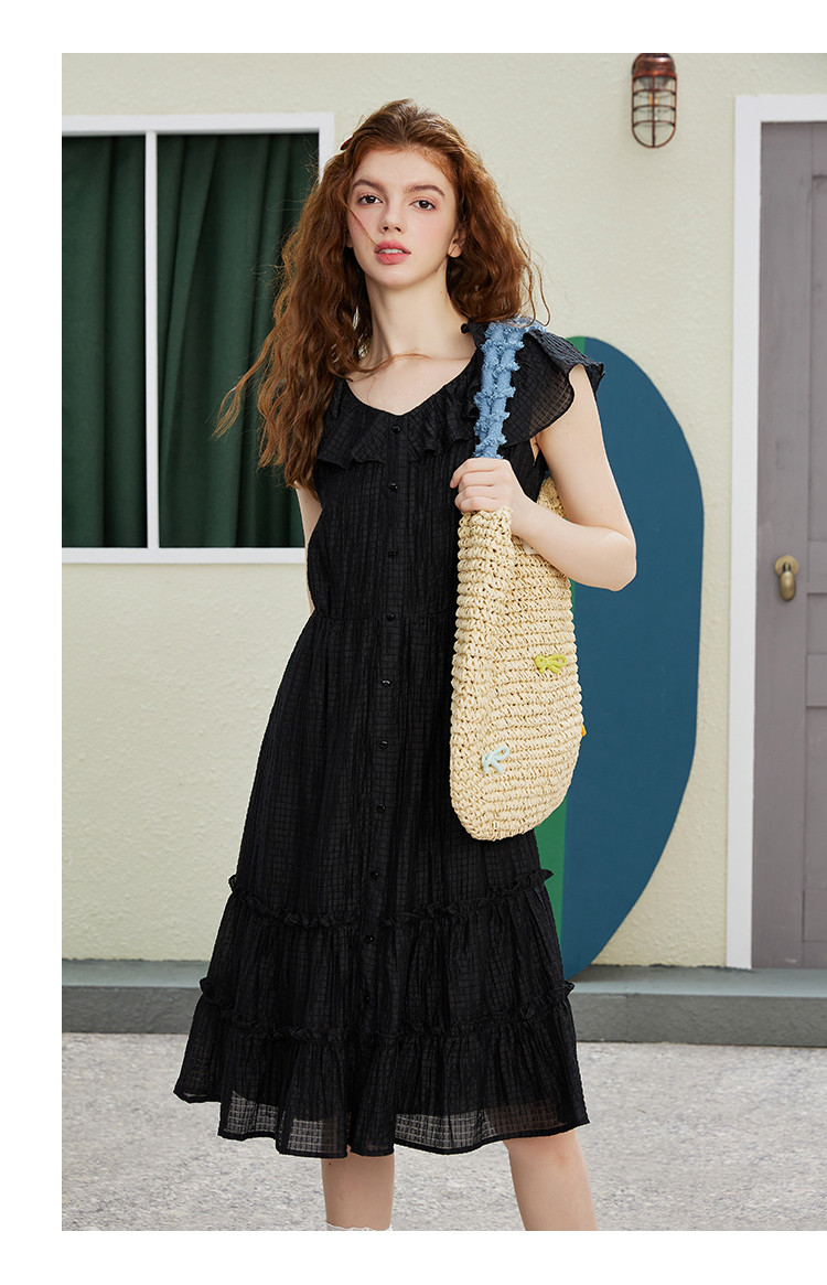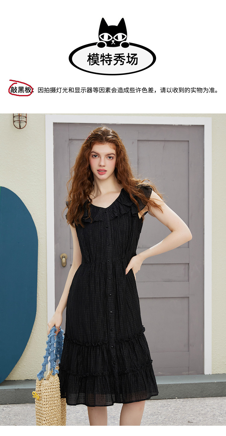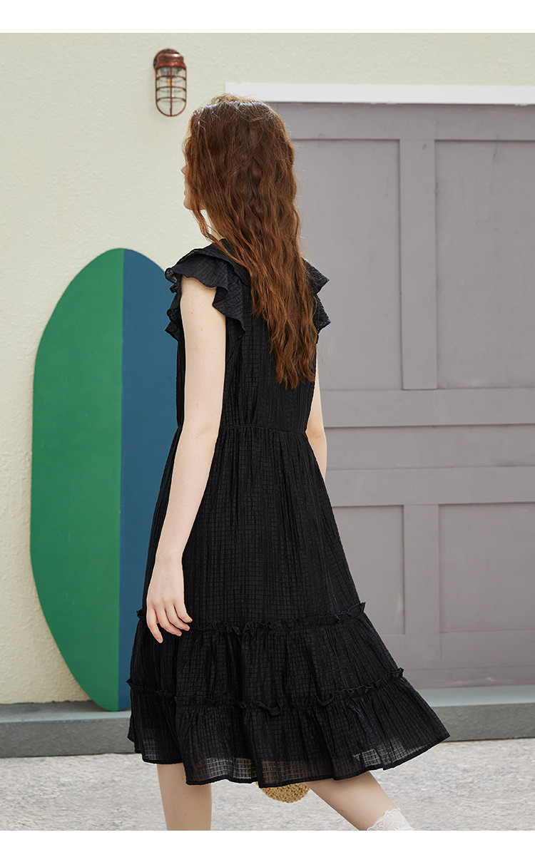 商品名称:飞飞袖简约设计感连衣裙夏季圆领中款优雅气质小黑裙 675037