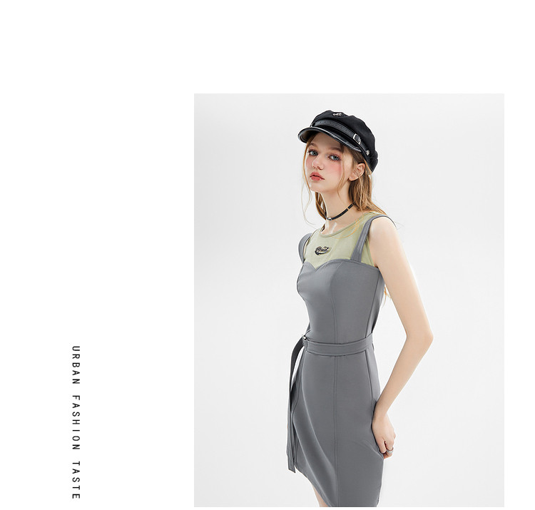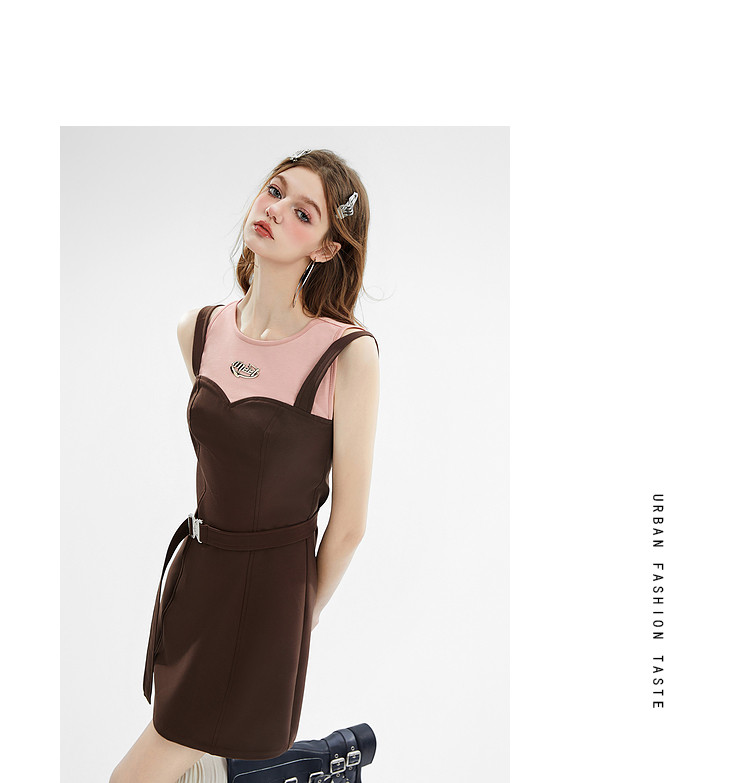 商品名称:夏装设计感假两件无袖连衣裙女辣妹包臀吊带短裙 748500