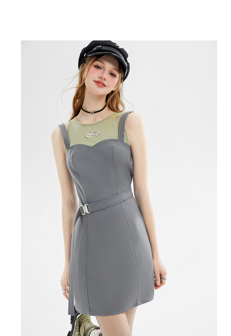 夏装设计感假两件无袖连衣裙女辣妹包臀吊带短裙 748500
