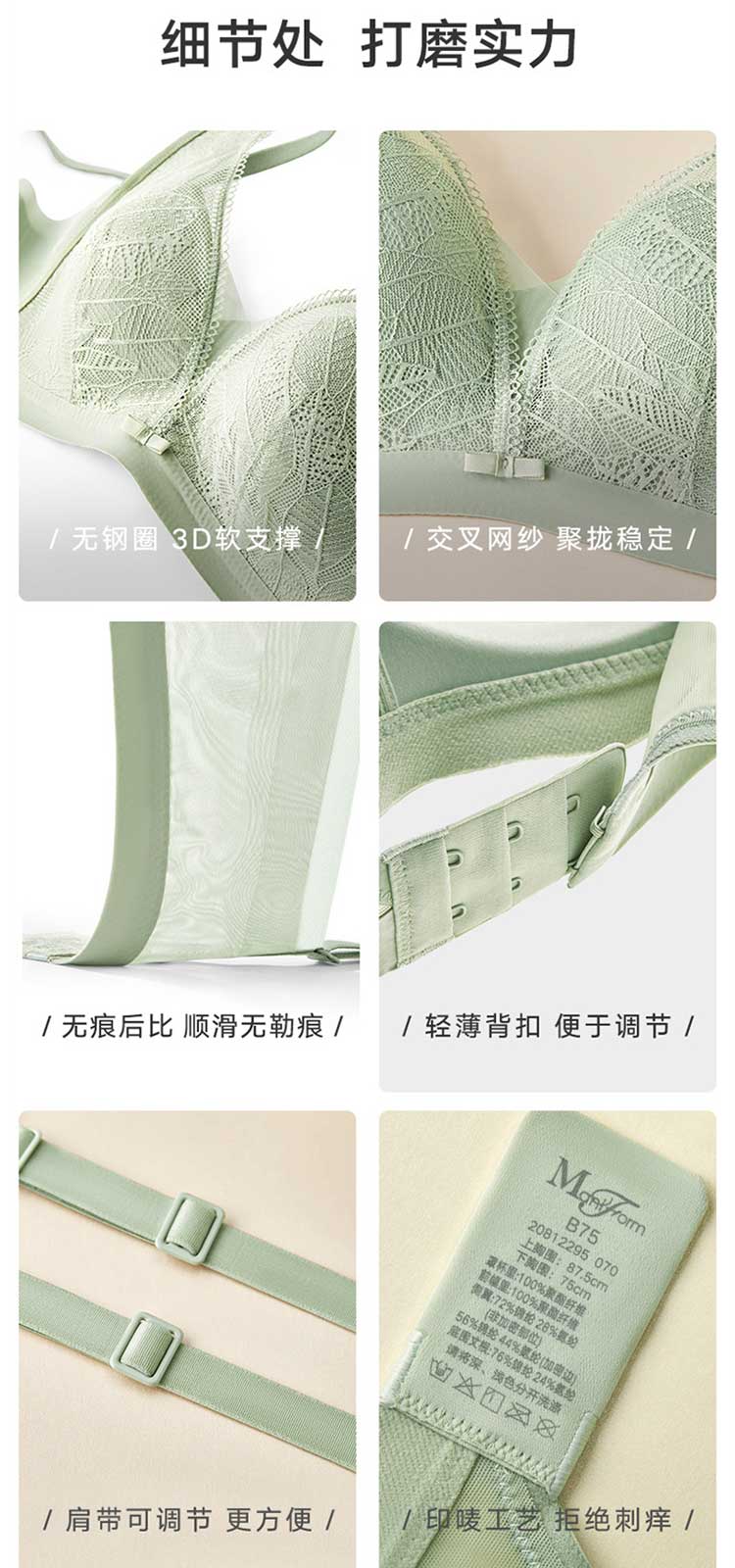 商品名称:【朱珠同款】自然向心聚拢不空杯无钢圈文胸性感蕾丝无痕内衣胸罩 685083