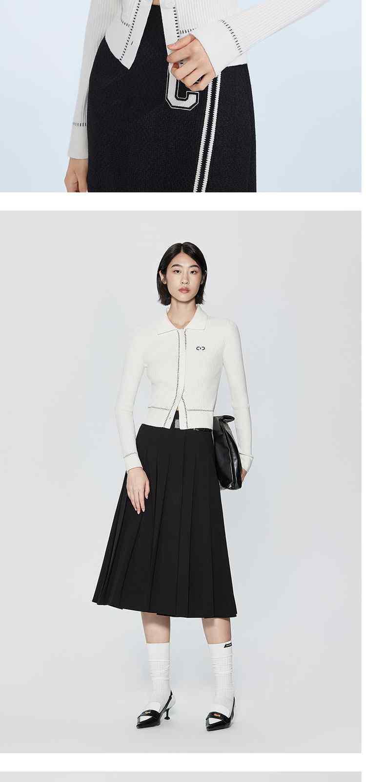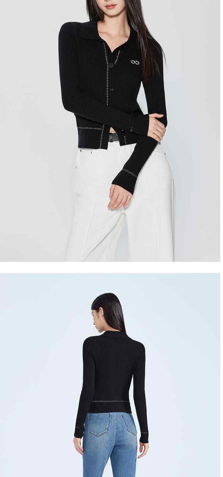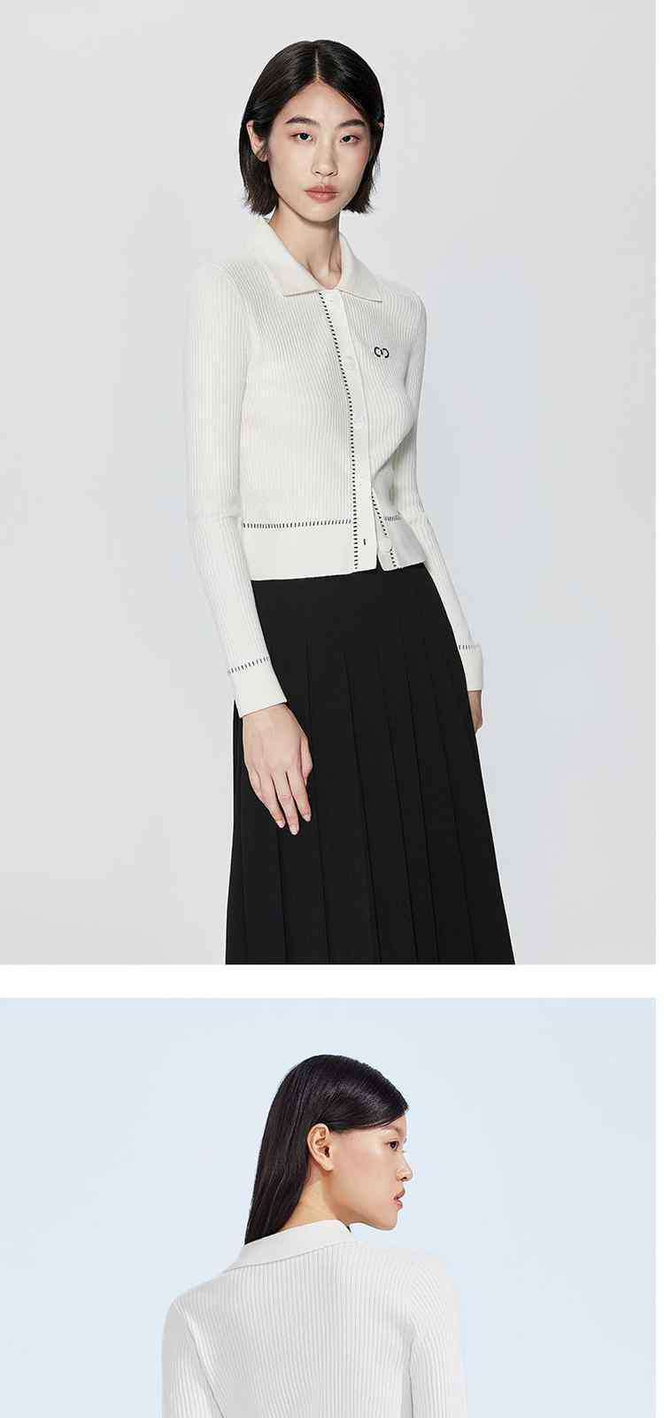 春装 撞边美式复古Polo领针织外套女 441935