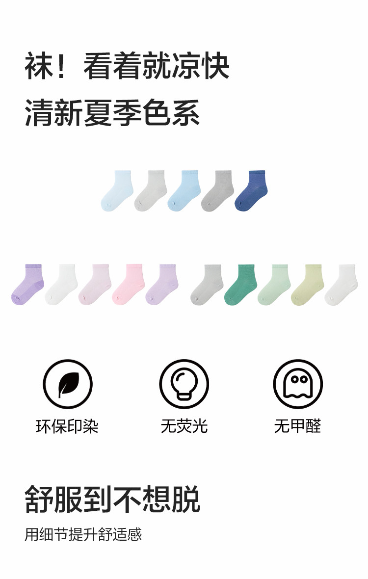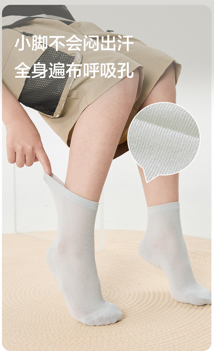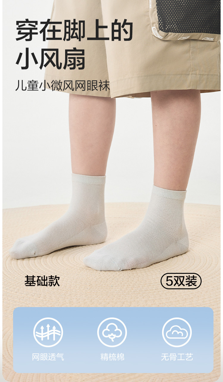 五双装精梳棉儿童袜子夏季薄款男童女童袜子纯色透气网眼袜不闷汗 064261