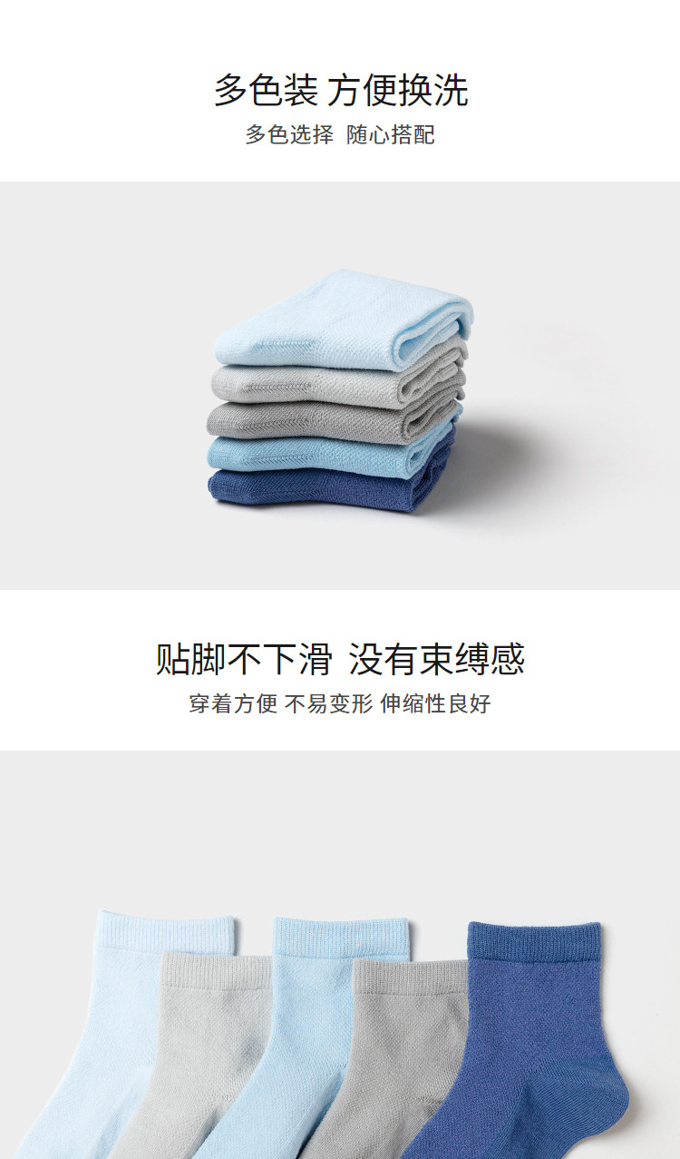 商品名称:五双装精梳棉儿童袜子夏季薄款男童女童袜子纯色透气网眼袜不闷汗 064261