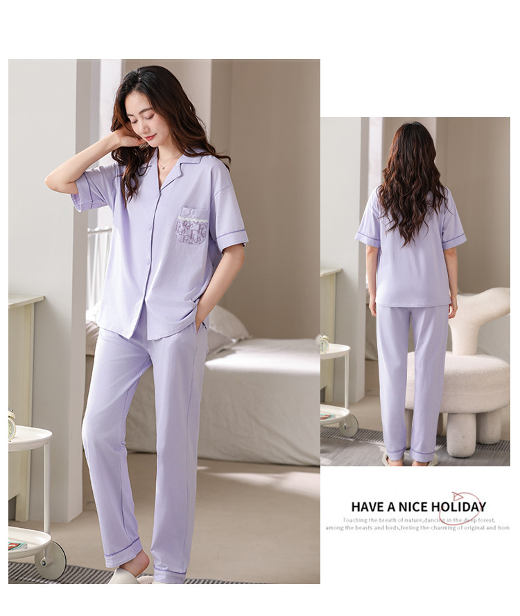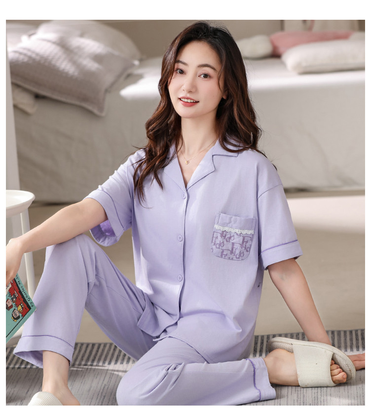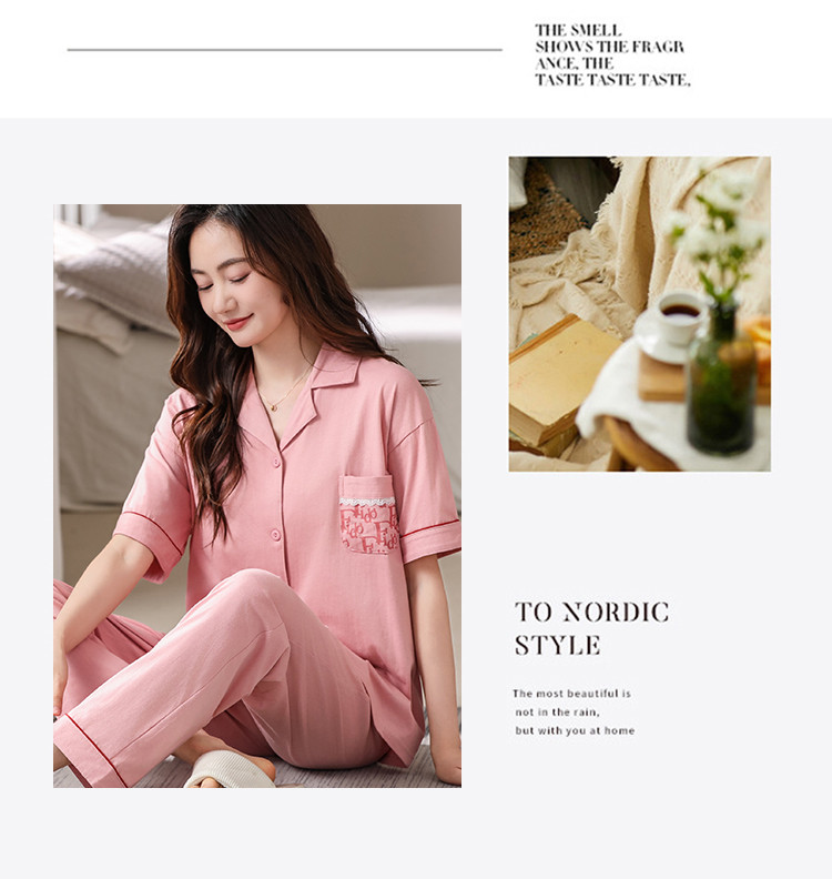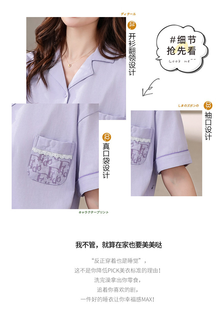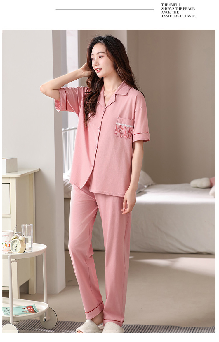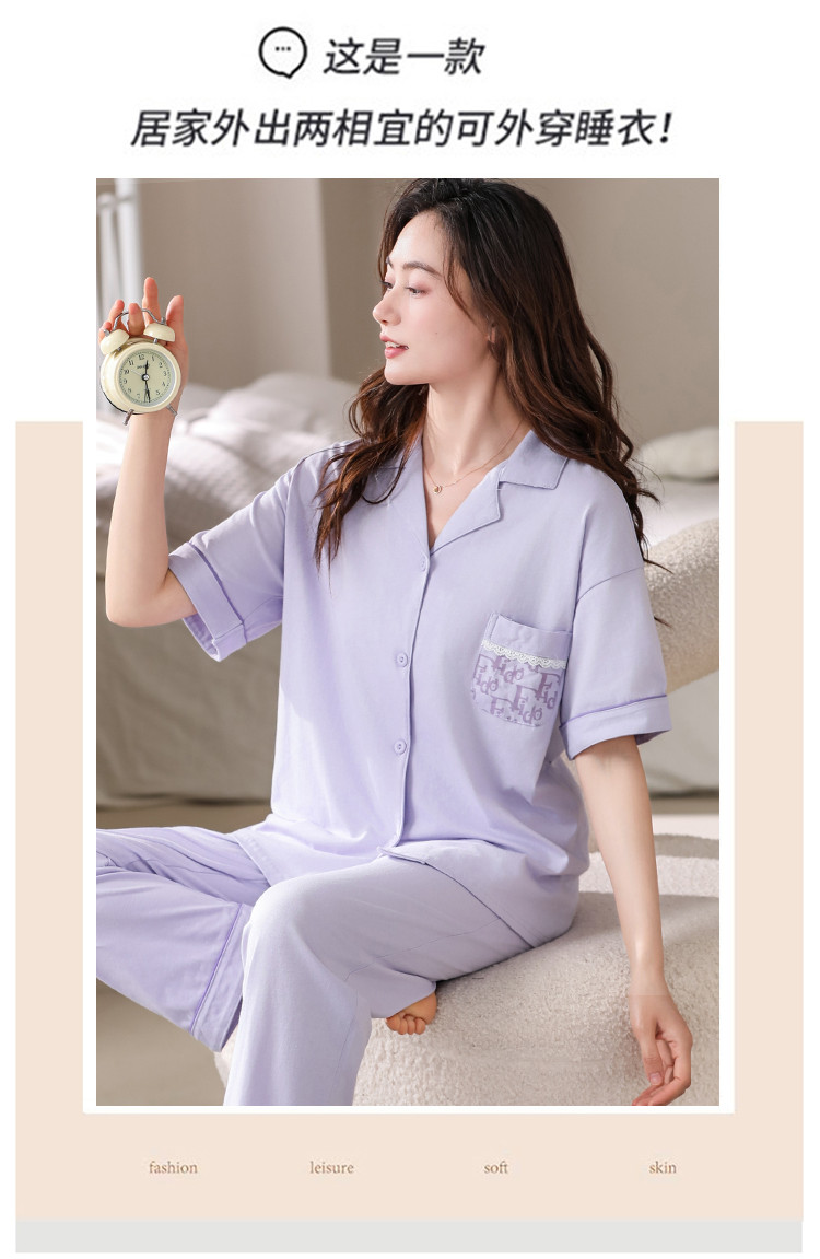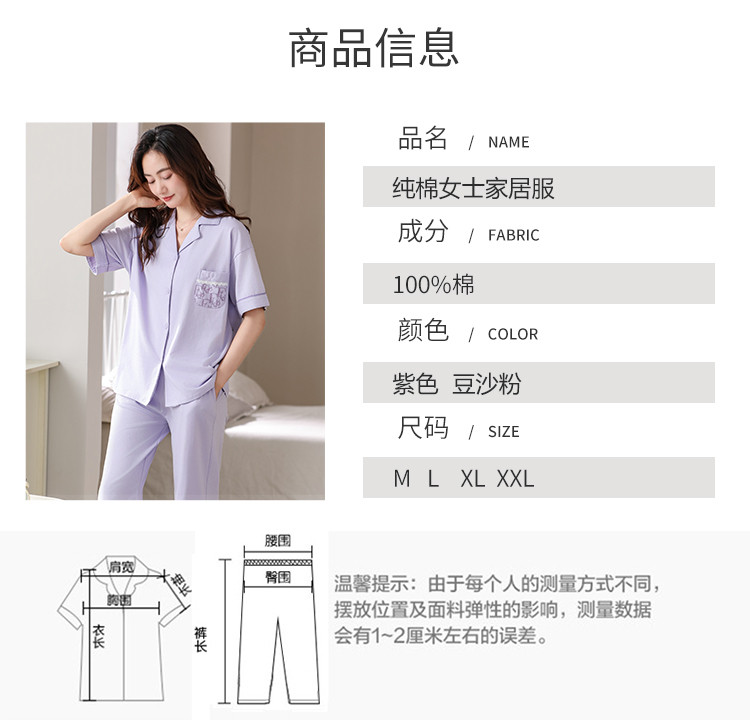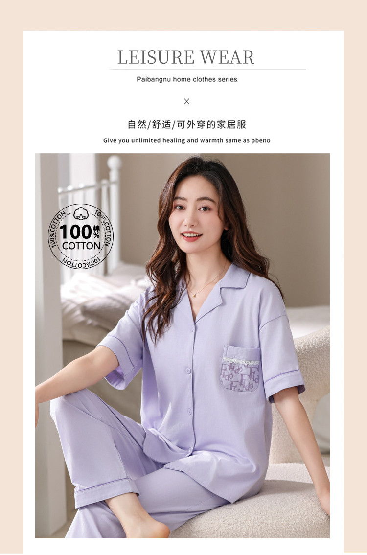 商品名称:【100%纯棉舒适】春夏翻领纯棉亲肤透气可外穿女士睡衣家居服 327838