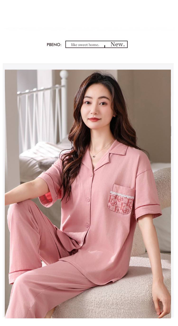 【100%纯棉舒适】春夏翻领纯棉亲肤透气可外穿女士睡衣家居服 327838