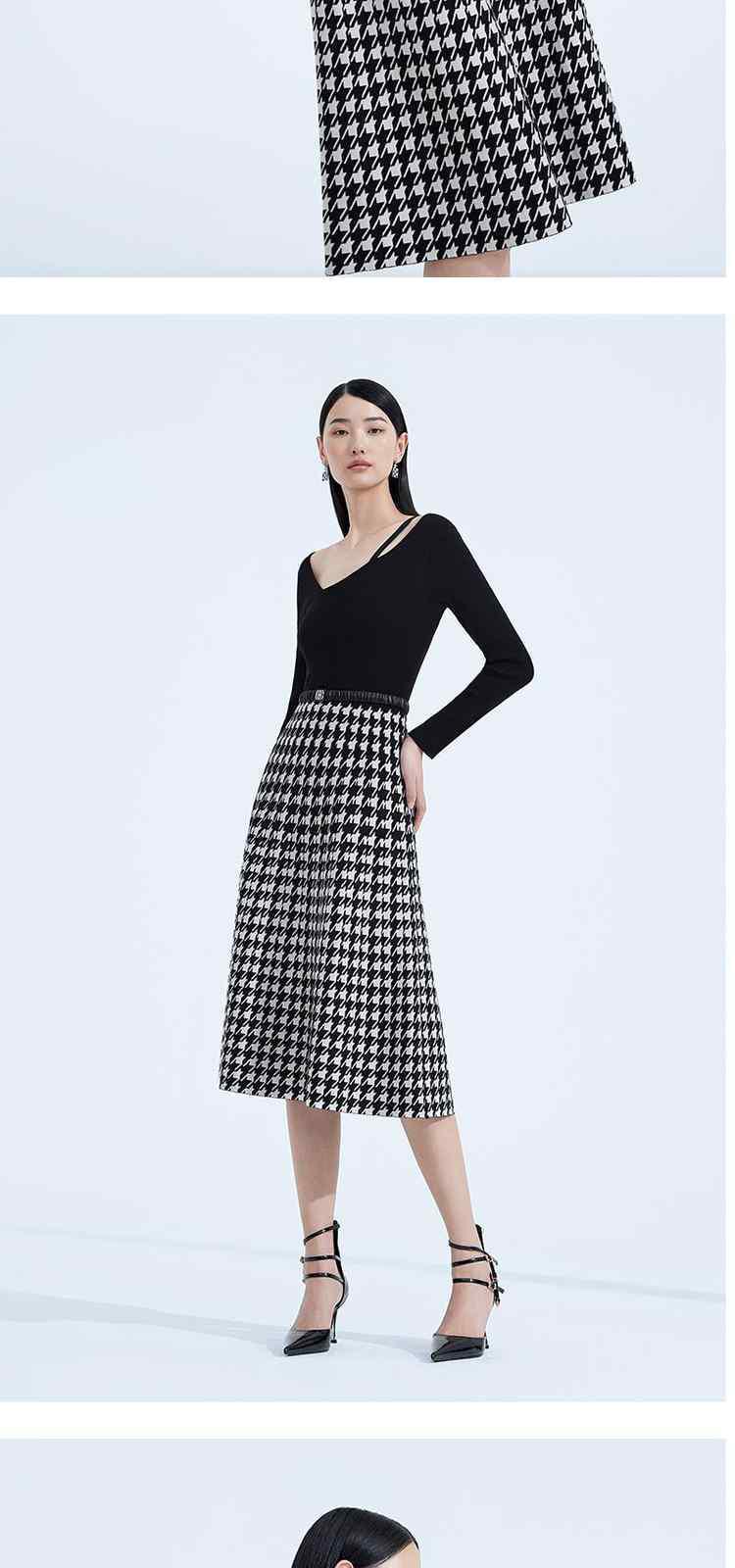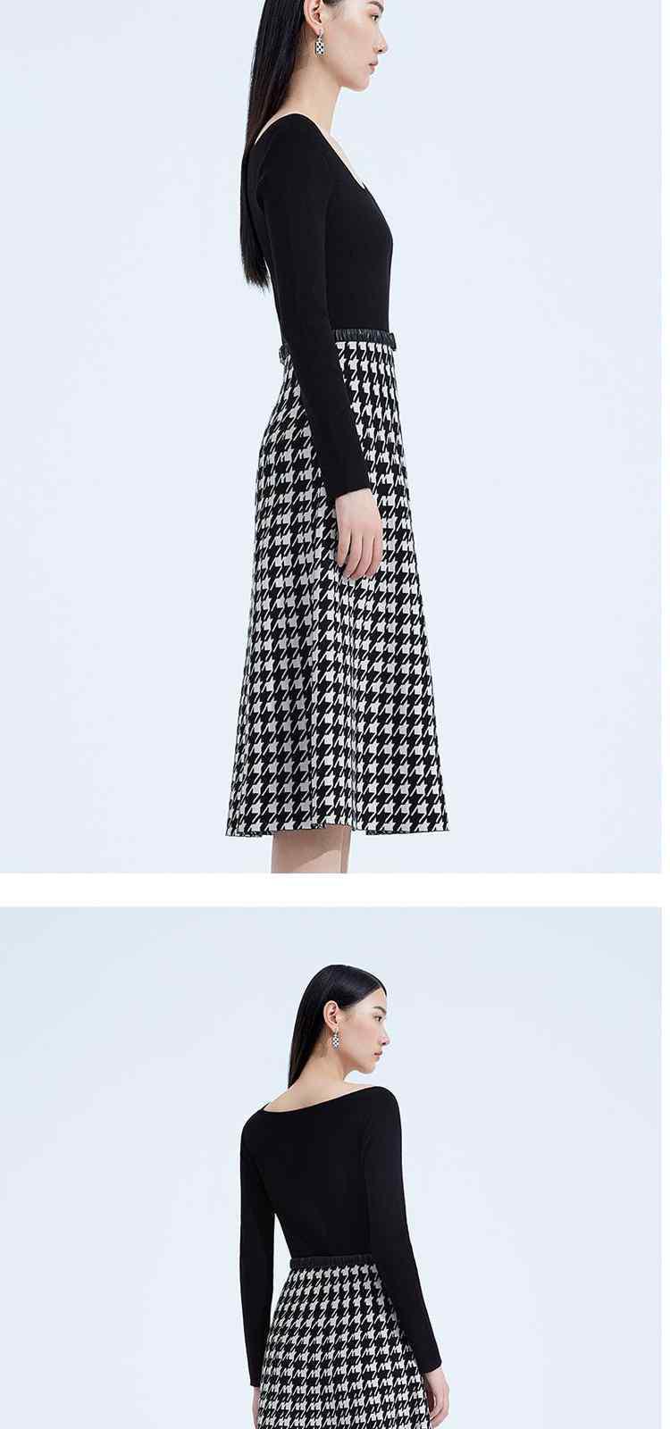 黑标系列 春装千鸟格腰带假两件超细羊毛织连衣裙 931407