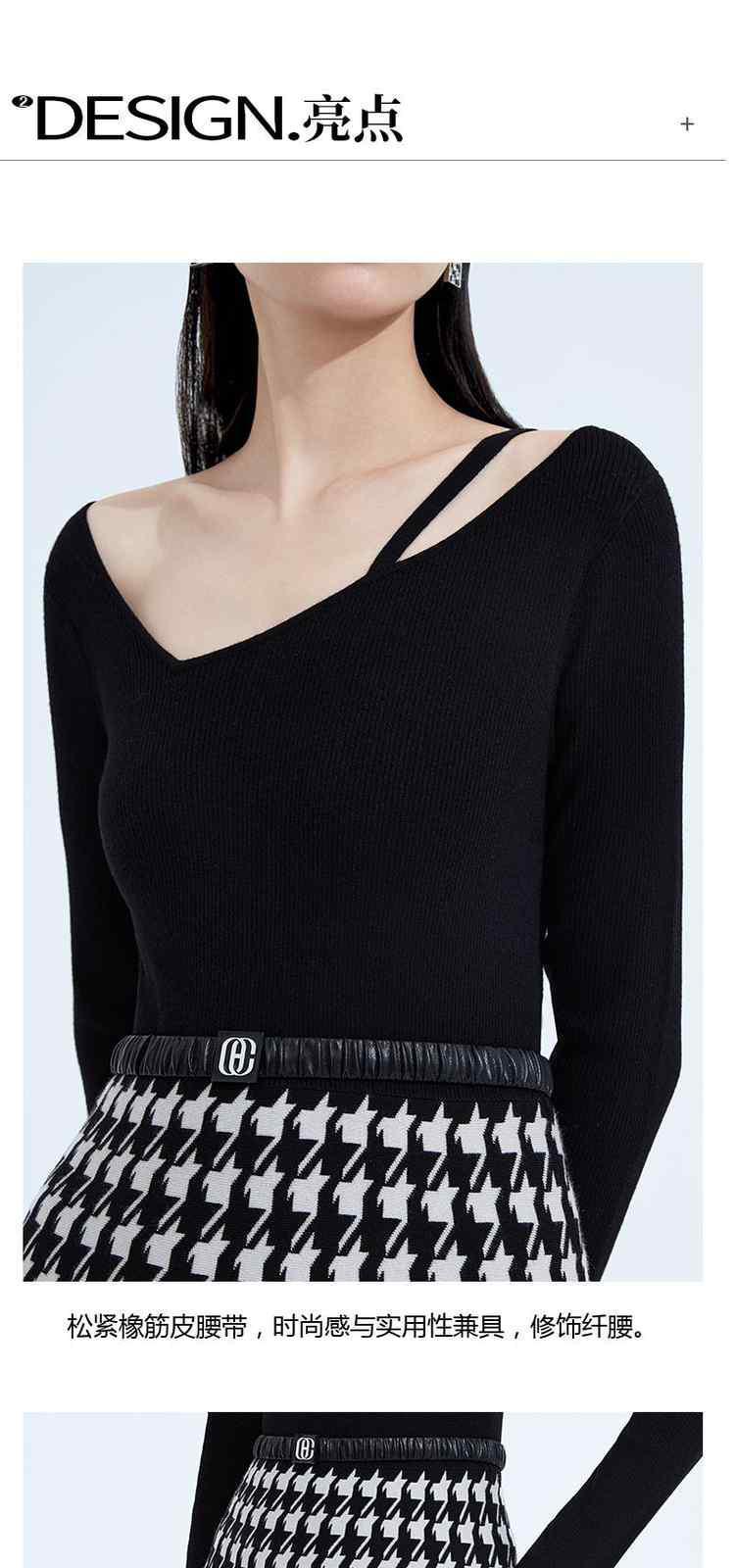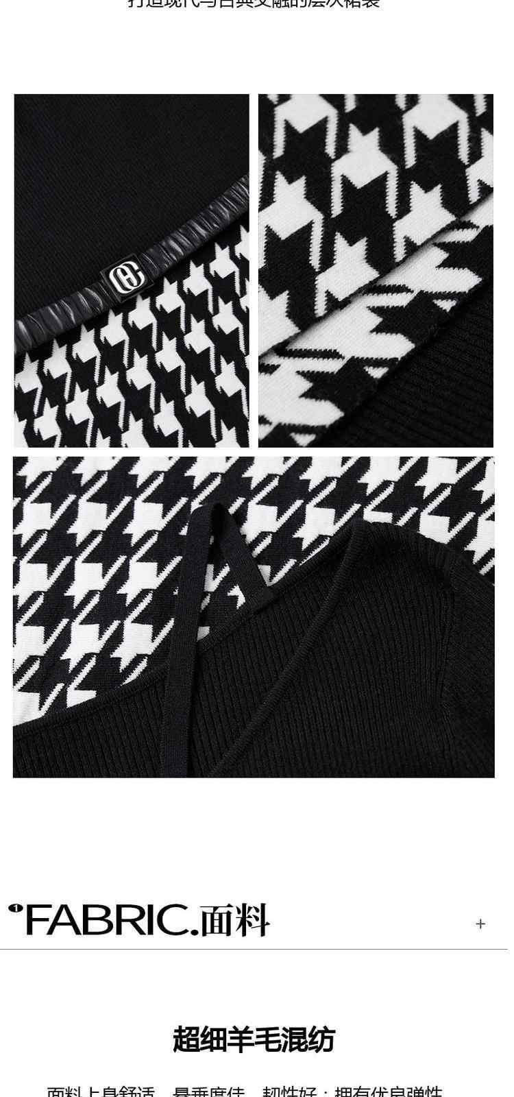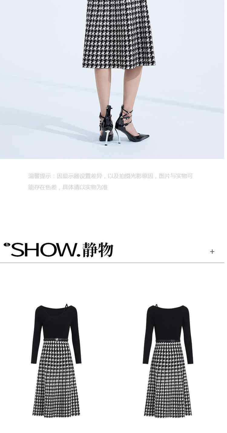 商品名称:黑标系列 春装千鸟格腰带假两件超细羊毛织连衣裙 931407