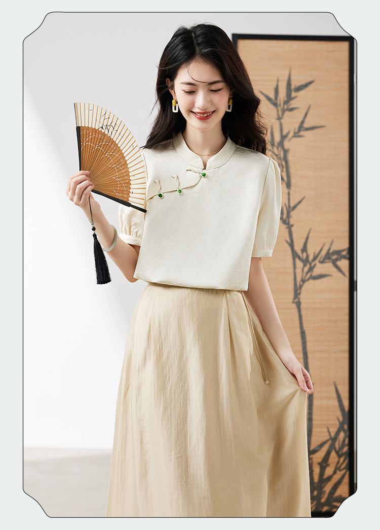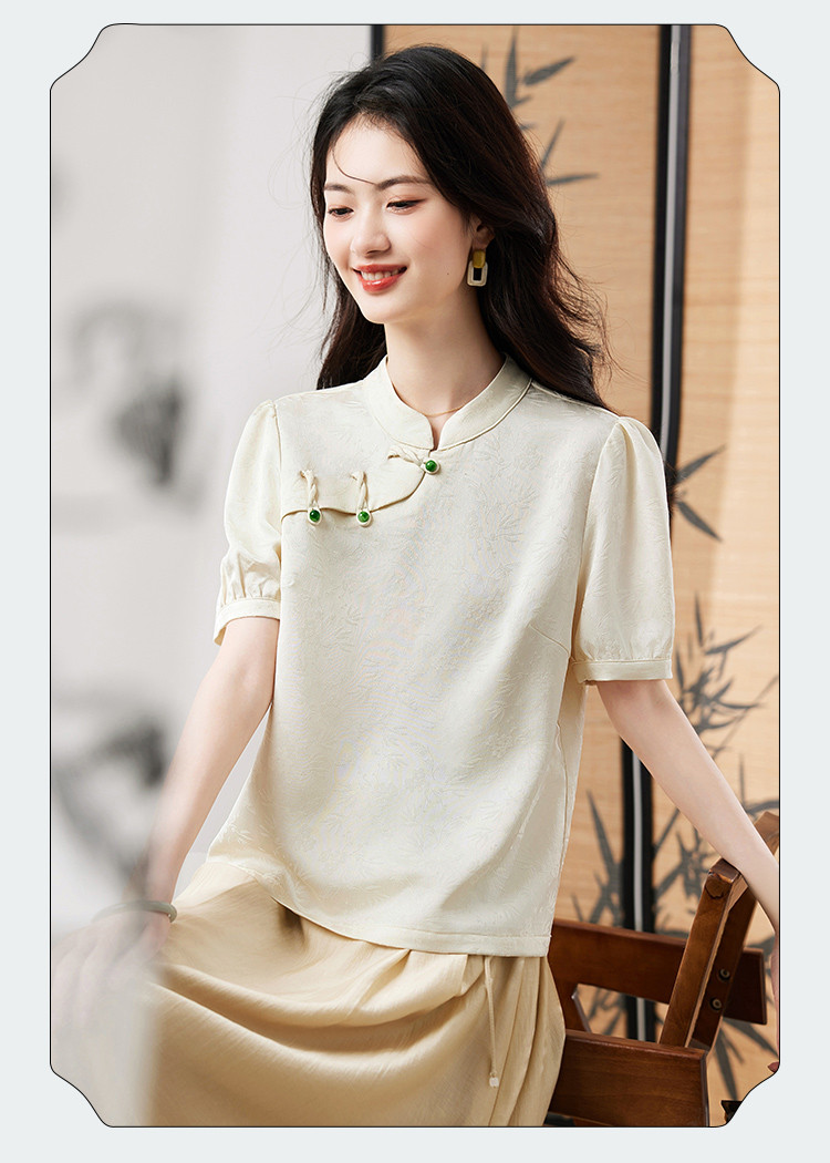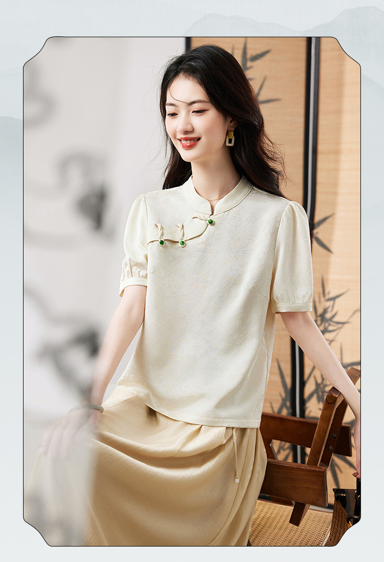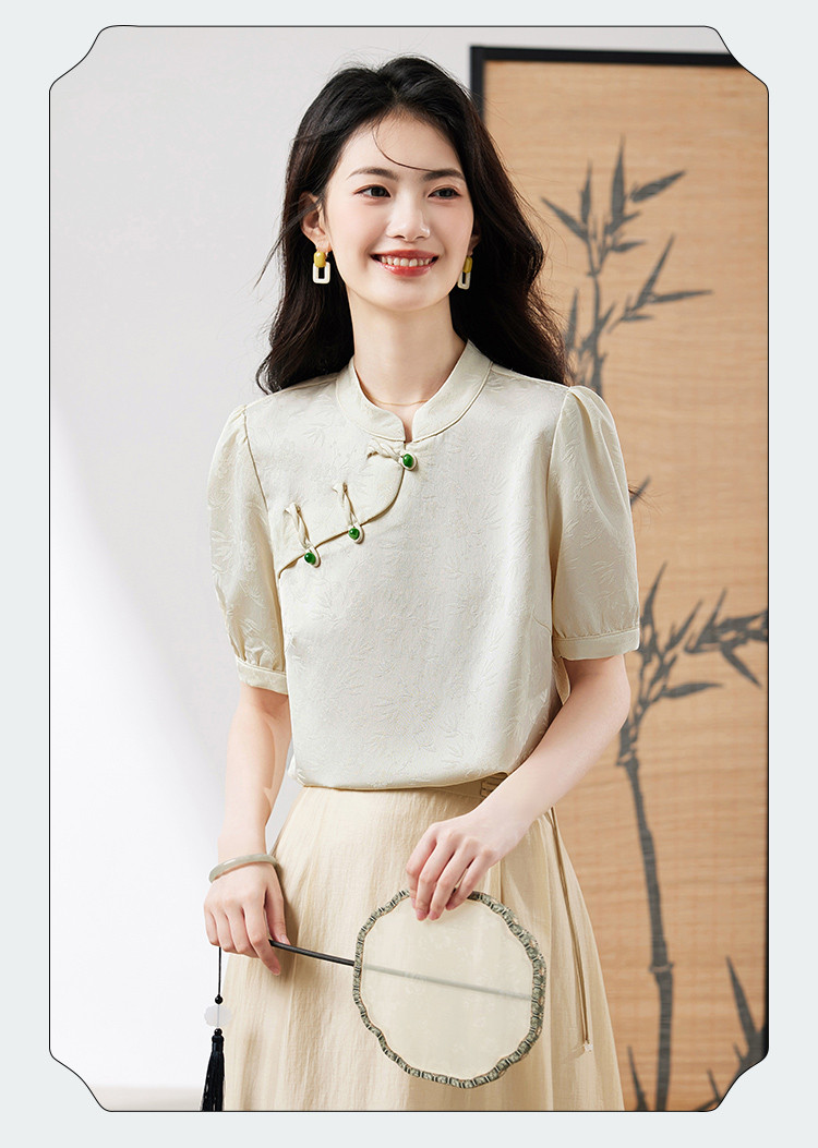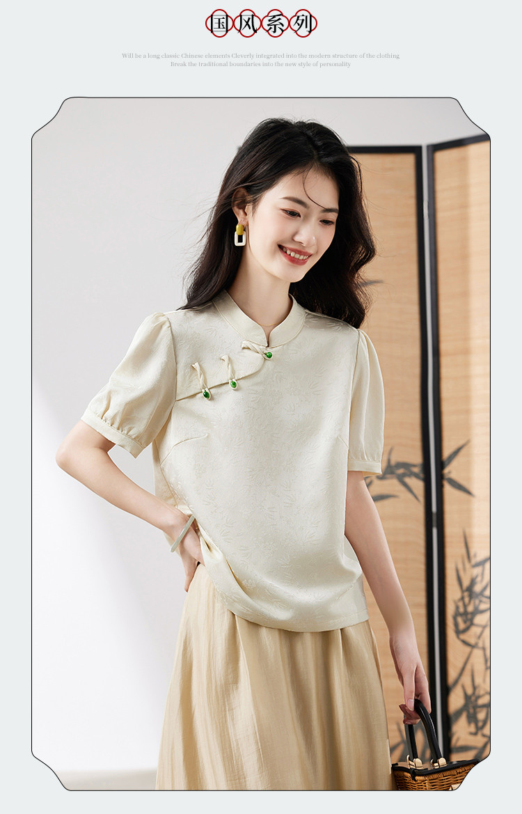 商品名称:【新中式提花盘扣衬衫】2025夏季新款正肩简约优雅高级感上衣 601624