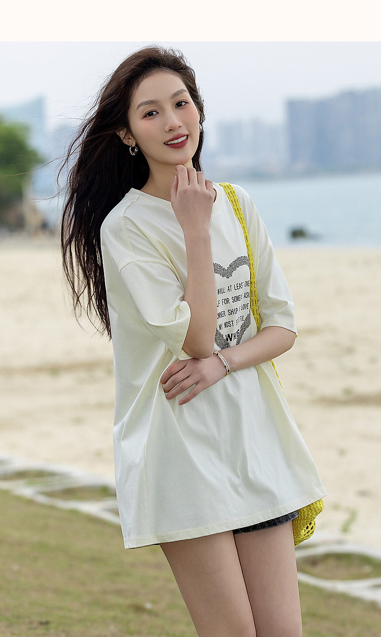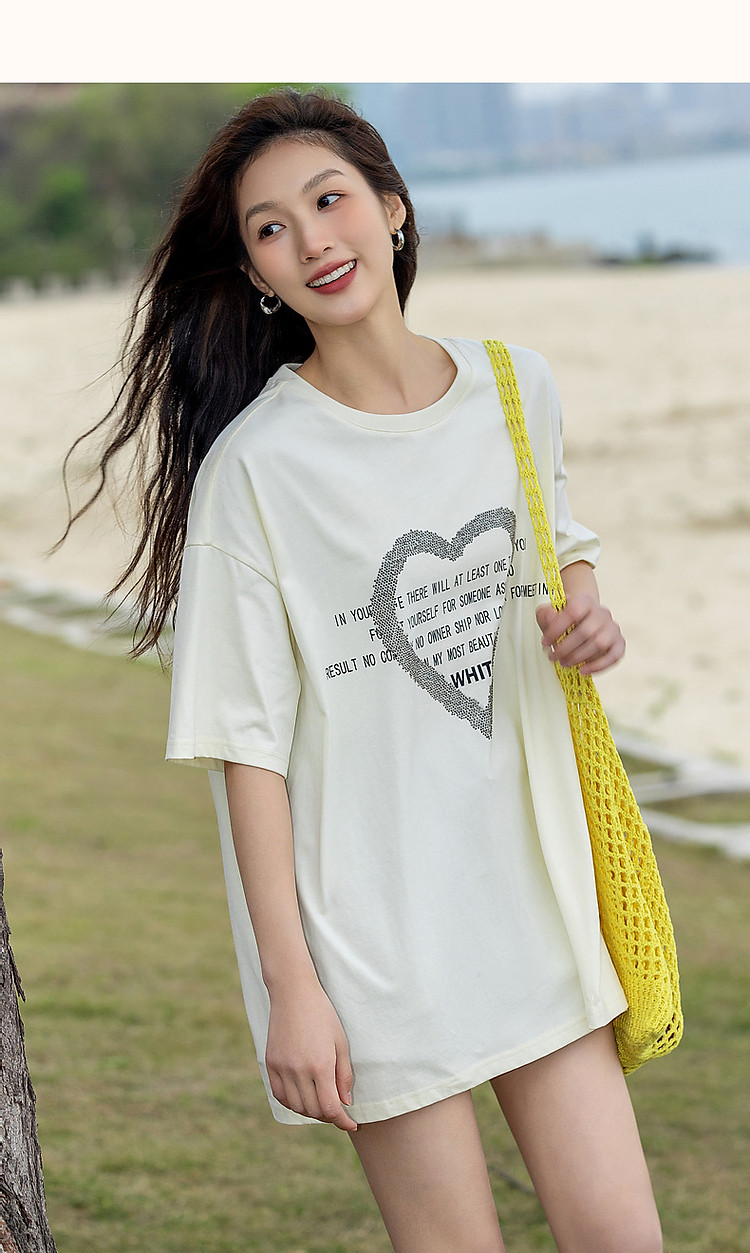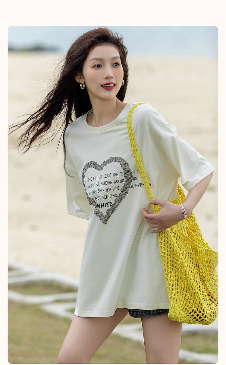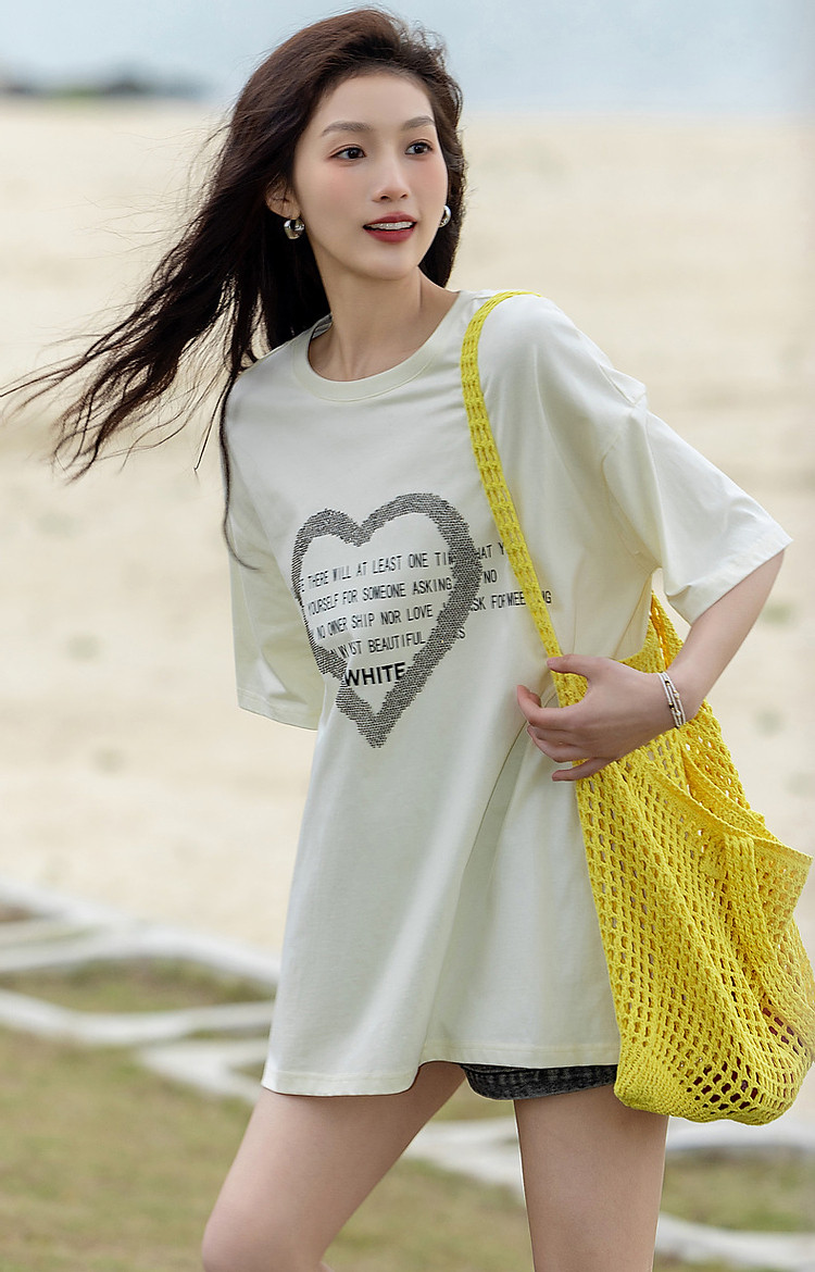 商品名称:【慵懒假日】夏新烫钻爱心字母印花短袖t恤女100%棉女式t恤 926529
