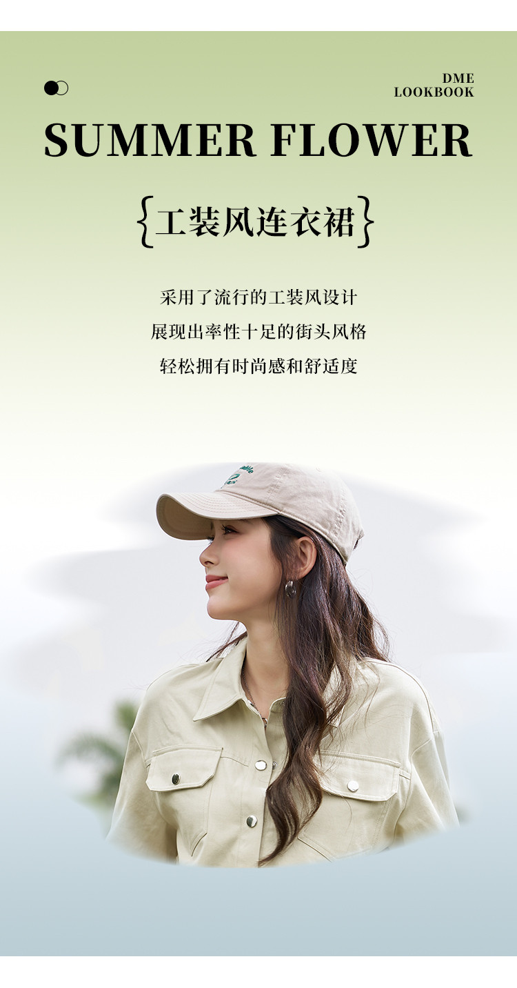 商品名称:【学院风工装连衣裙】夏季翻领显瘦气质开叉舒适百搭裙子女 678529