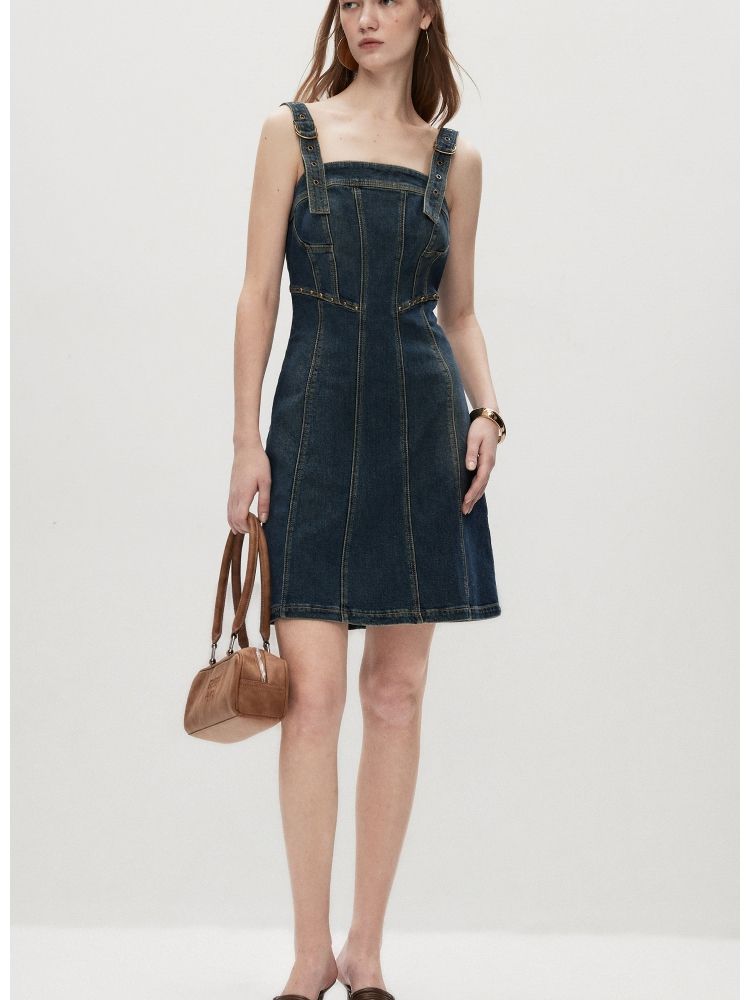 【小众设计】 夏季莱卡短裙牛仔吊带连衣裙女 692698