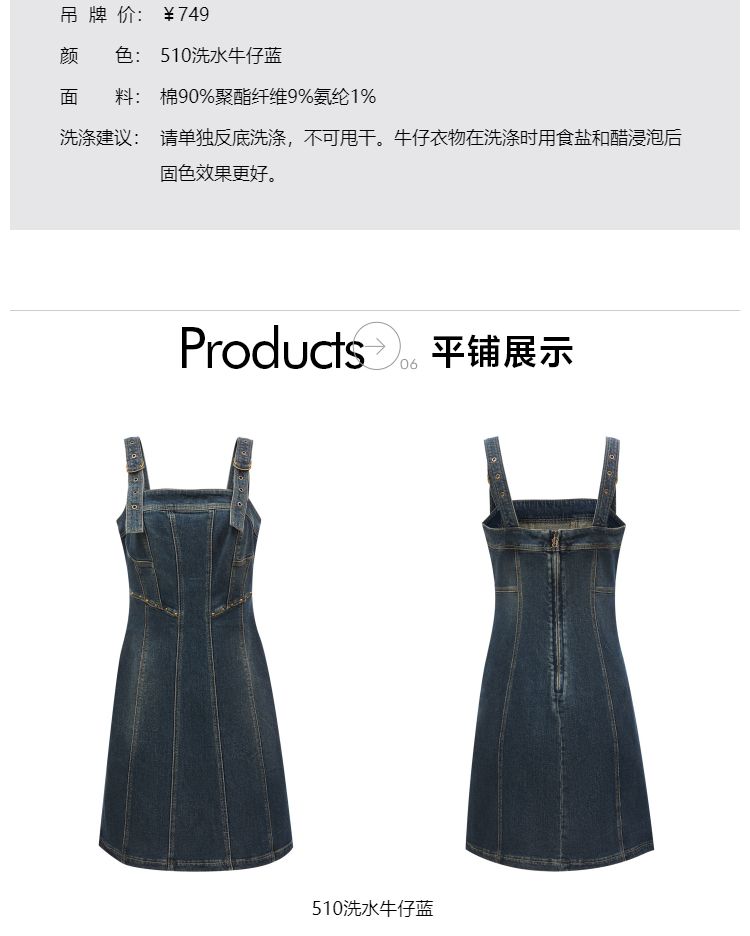商品名称:【小众设计】 夏季莱卡短裙牛仔吊带连衣裙女 692698