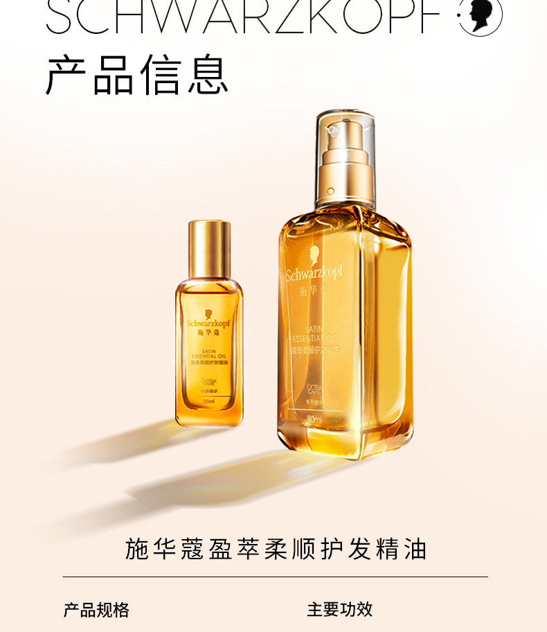 商品名称:施华蔻 盈萃韧养护发精油 80ml 光泽秀发