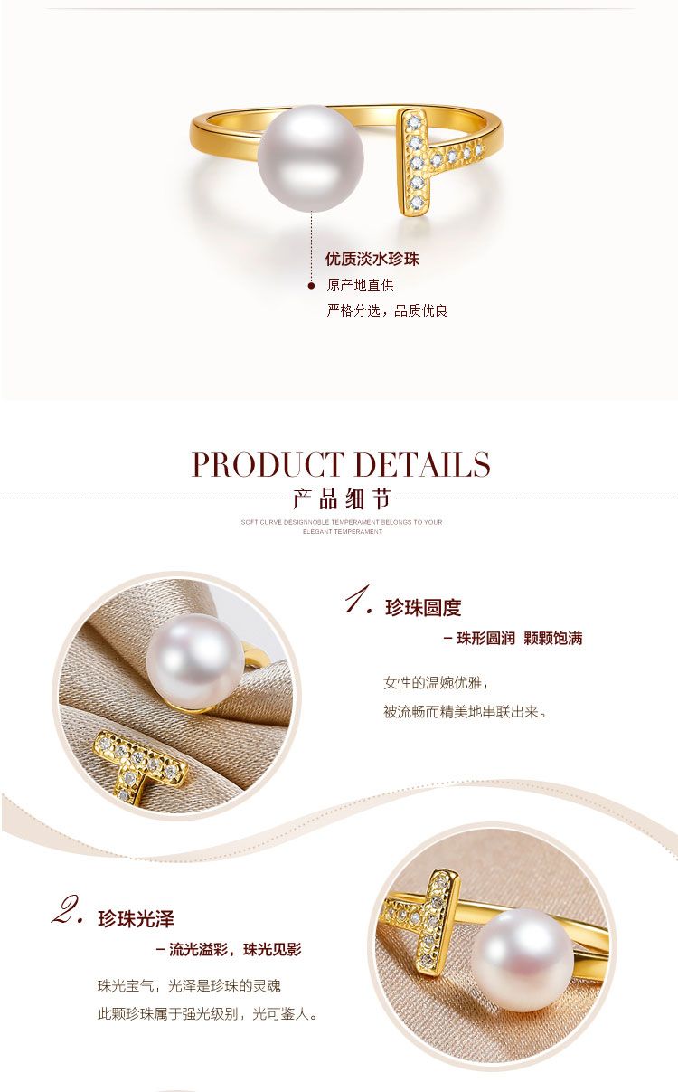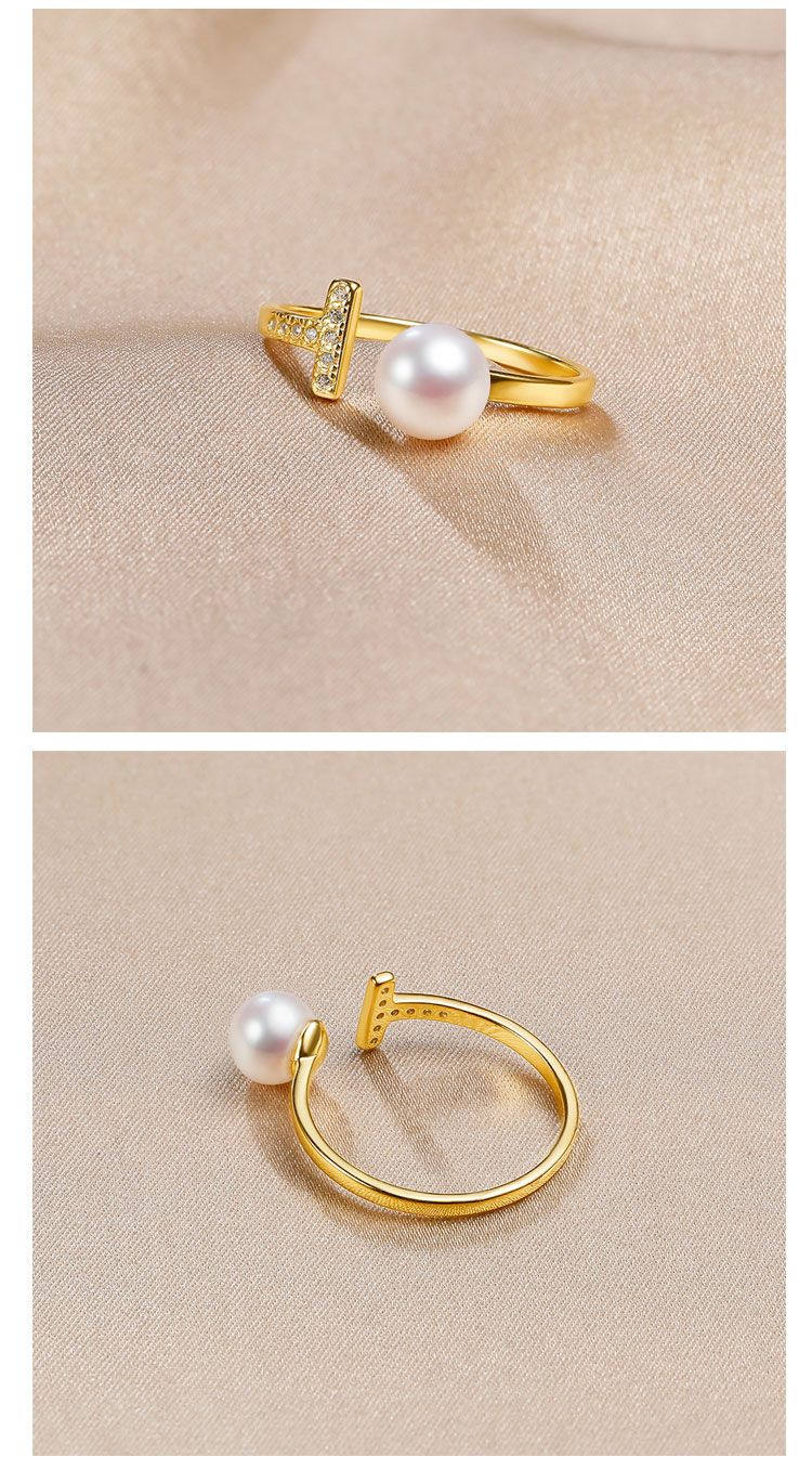 中银金行S925T字珍珠镶嵌戒指开口可调节戒指