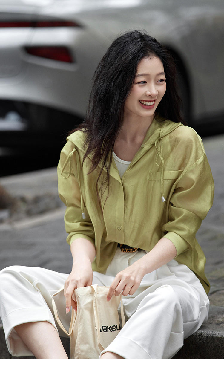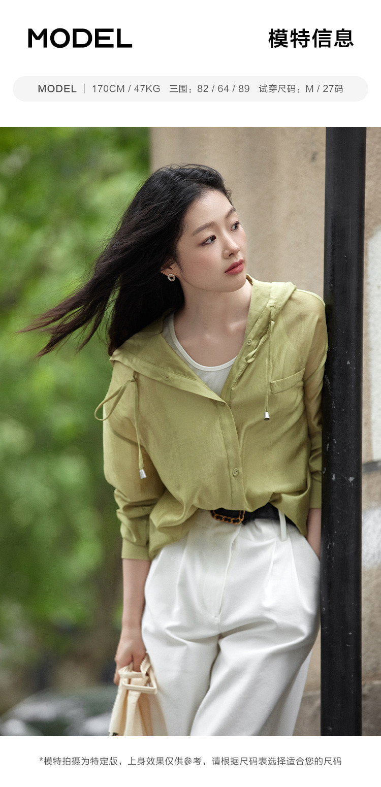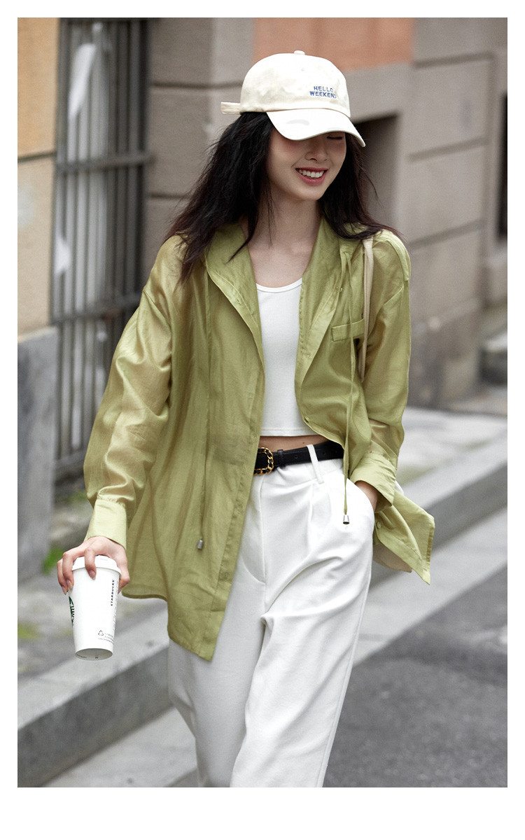 商品名称:【草绿色夏日轻薄感外套】夏款仿天丝连帽遮阳外套女 412162