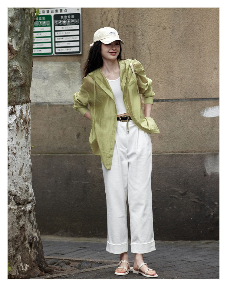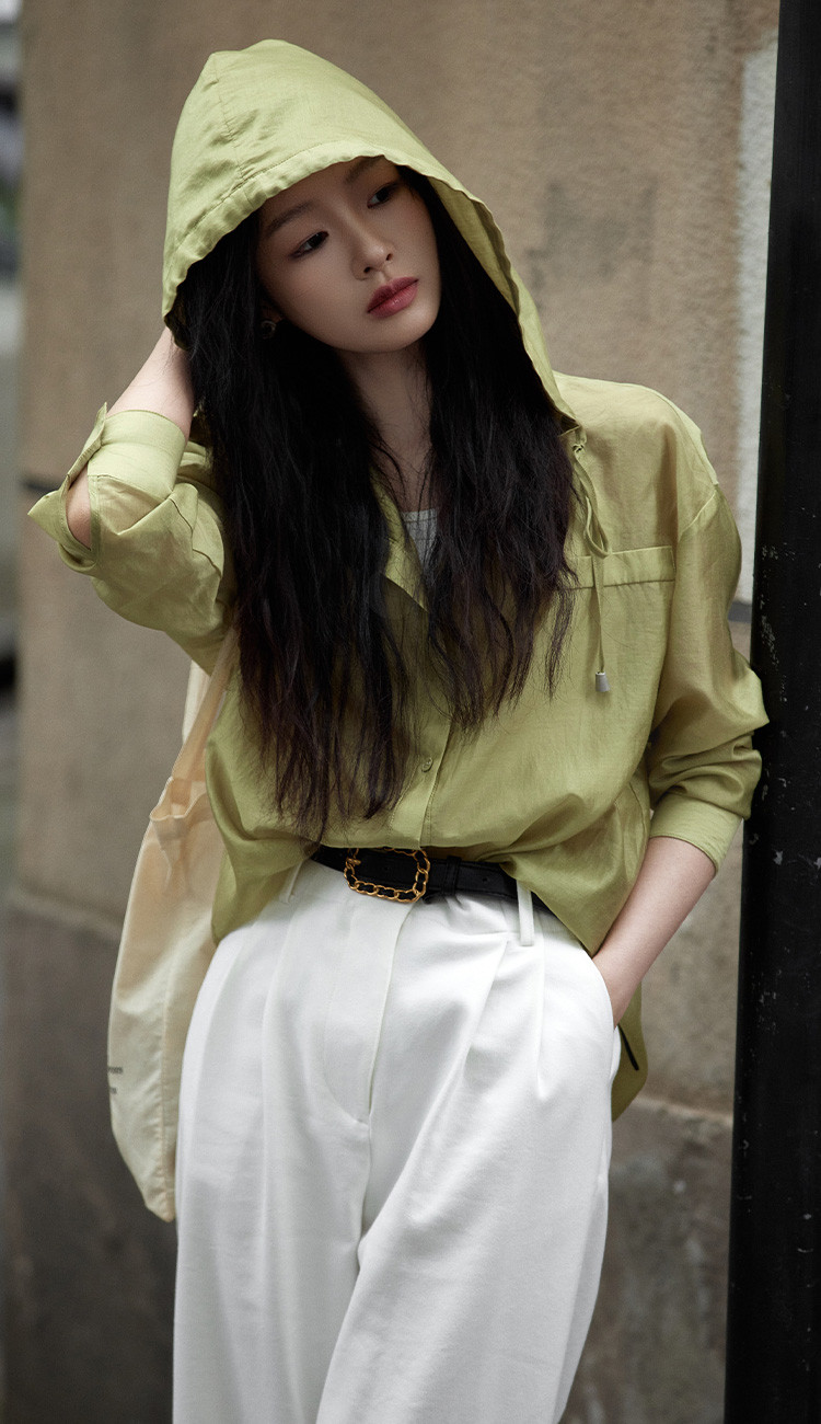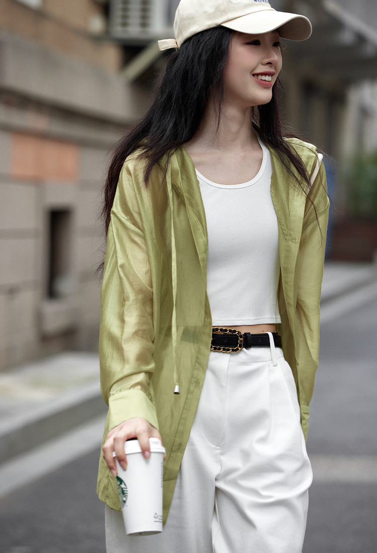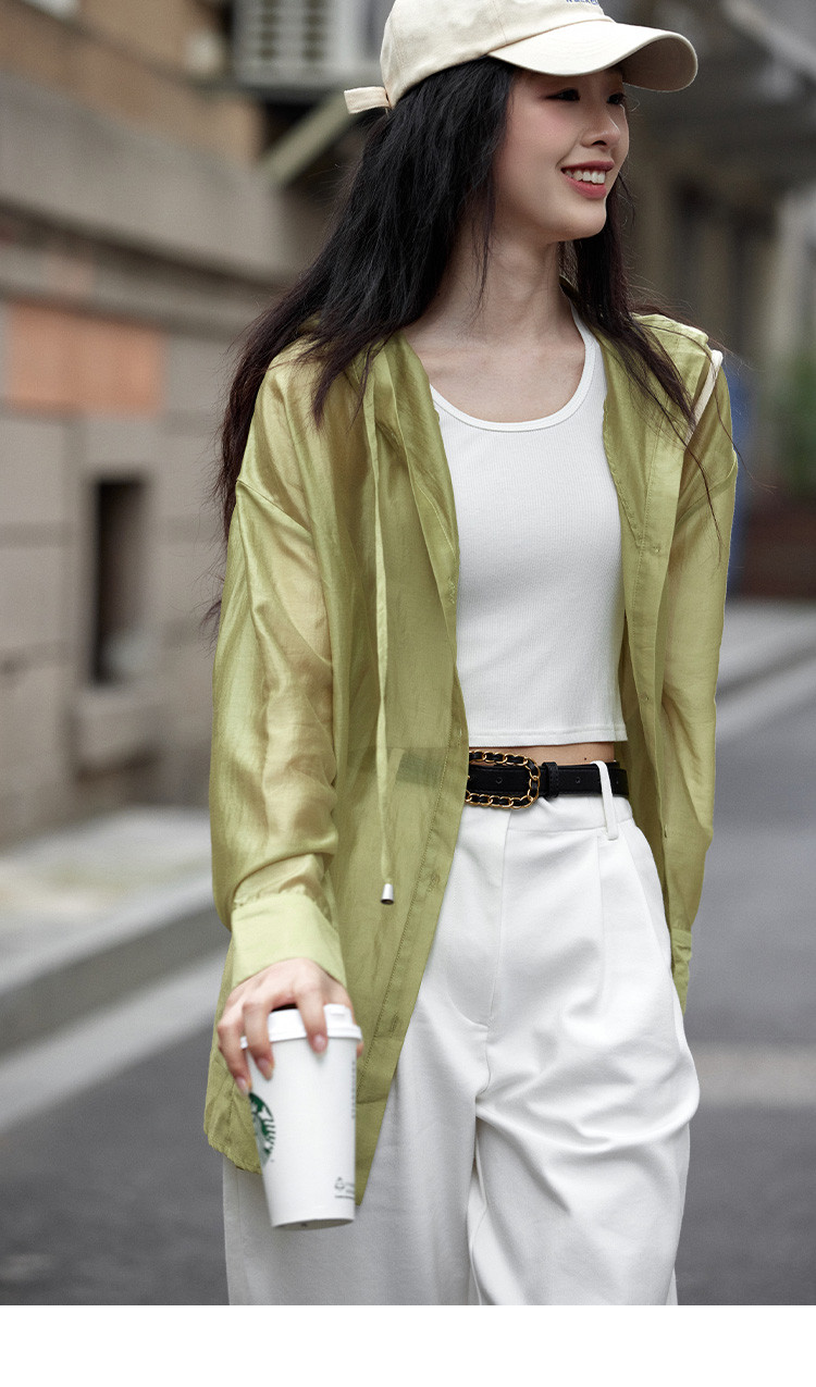 【草绿色夏日轻薄感外套】夏款仿天丝连帽遮阳外套女 412162