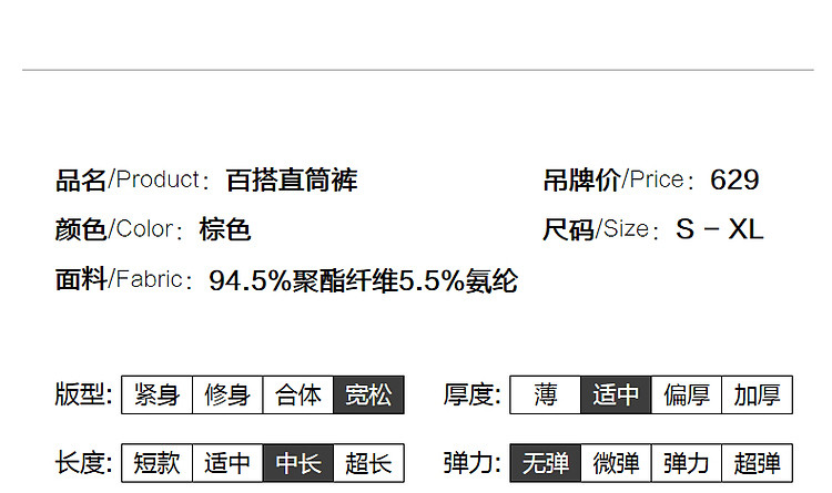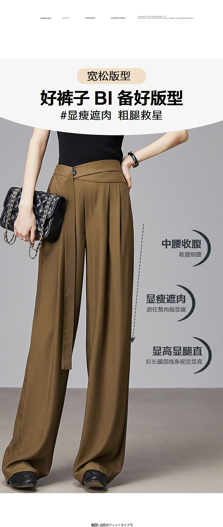 商品名称:【职场小心机】春秋日清爽丝滑垂坠弹力通勤轻熟直筒显瘦休闲裤 639681