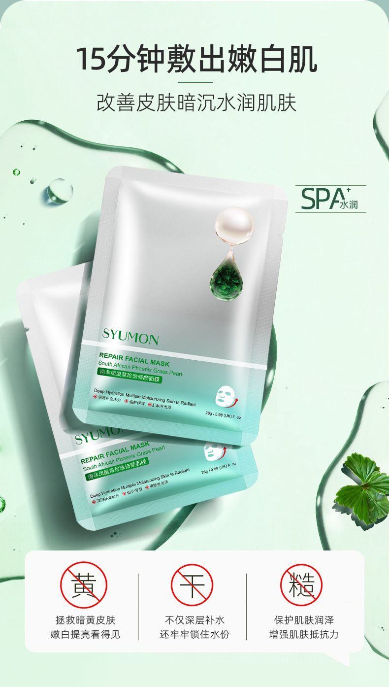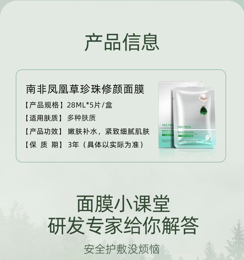 商品名称:水韵梦南非凤凰草珍珠修颜面膜28g*5片/盒