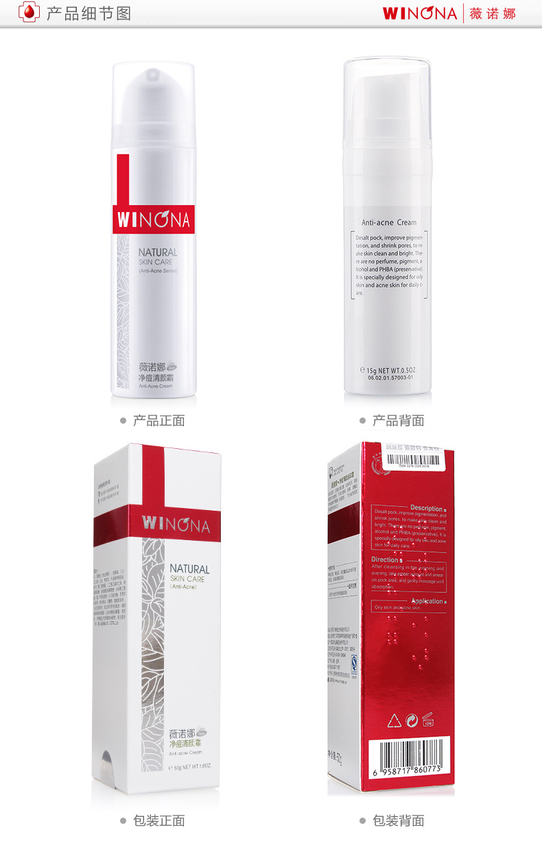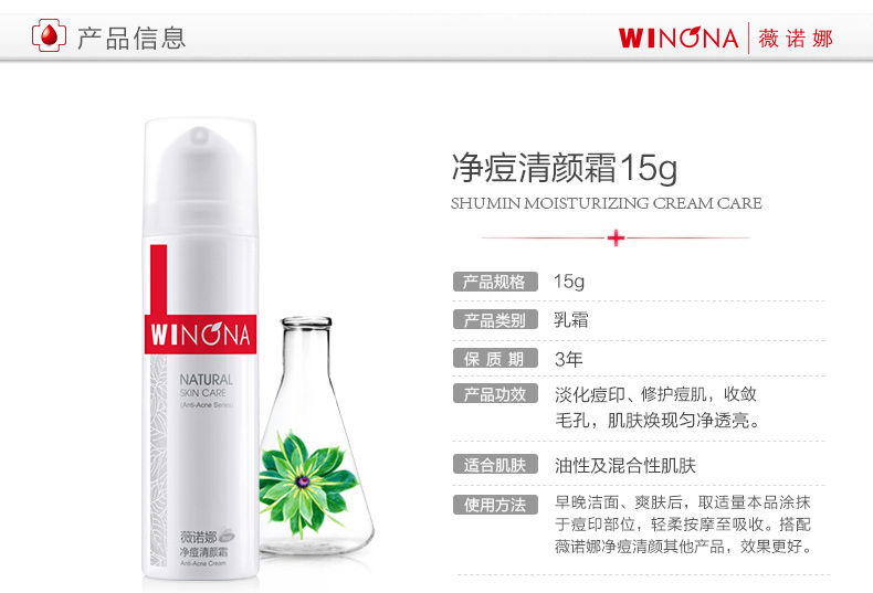 商品名称:Winqan/薇诺娜 净痘清颜霜 15g 舒缓肌肤