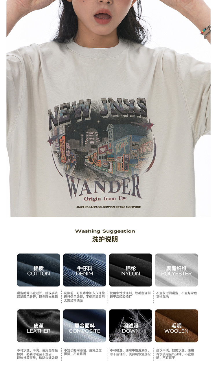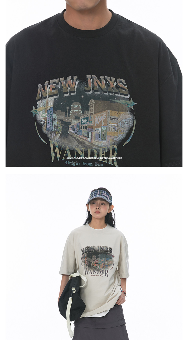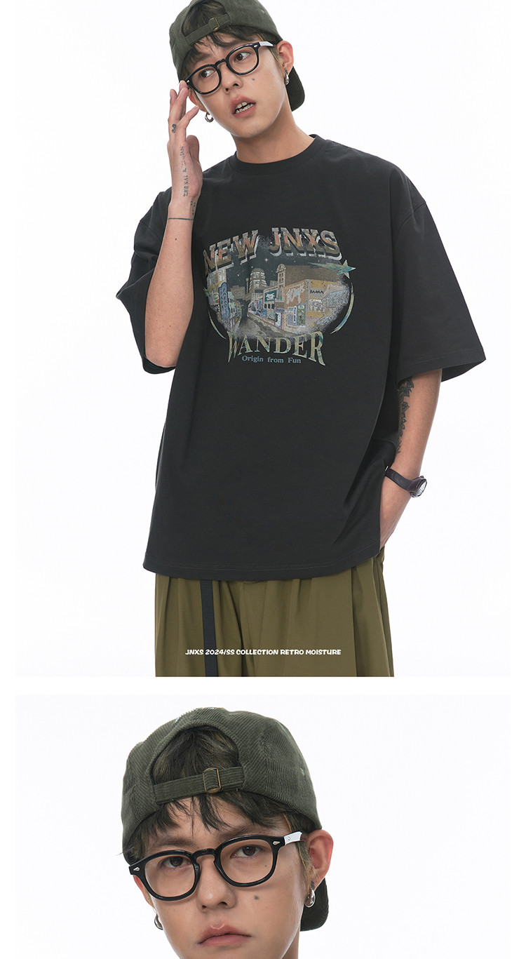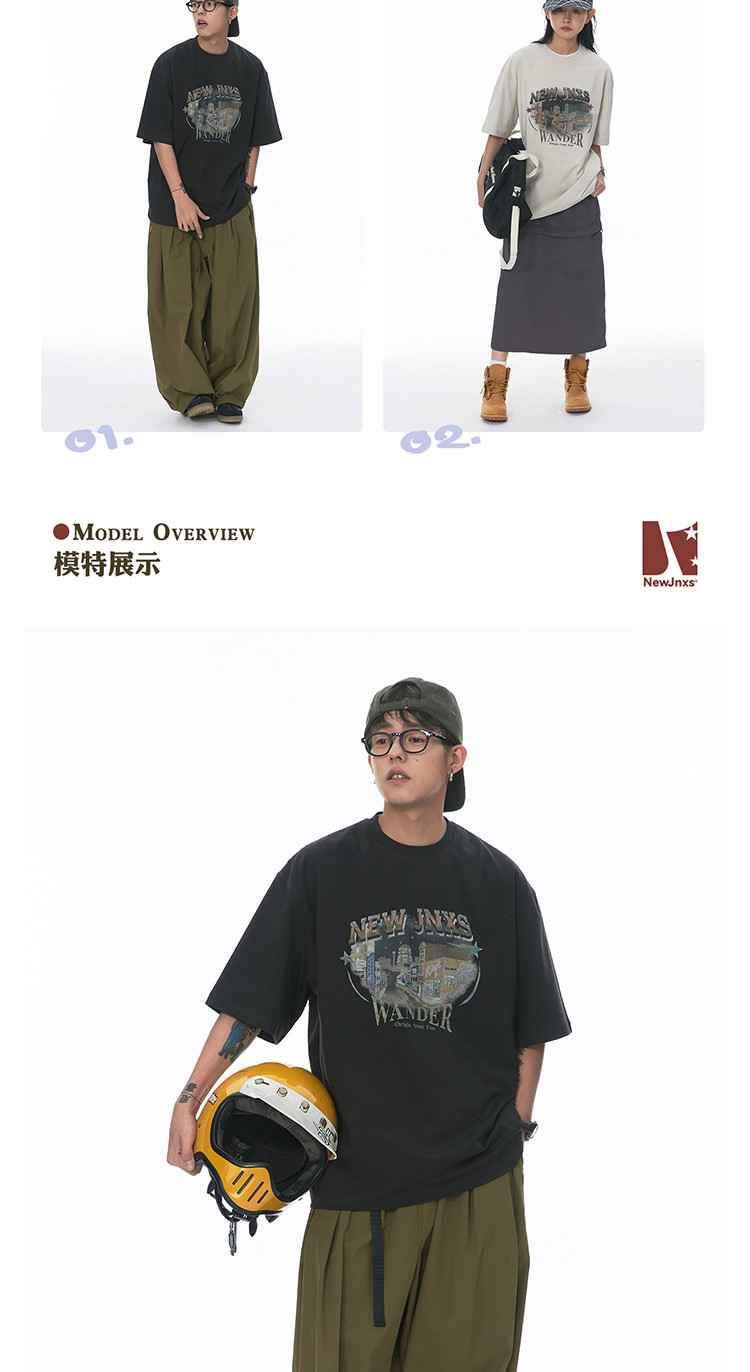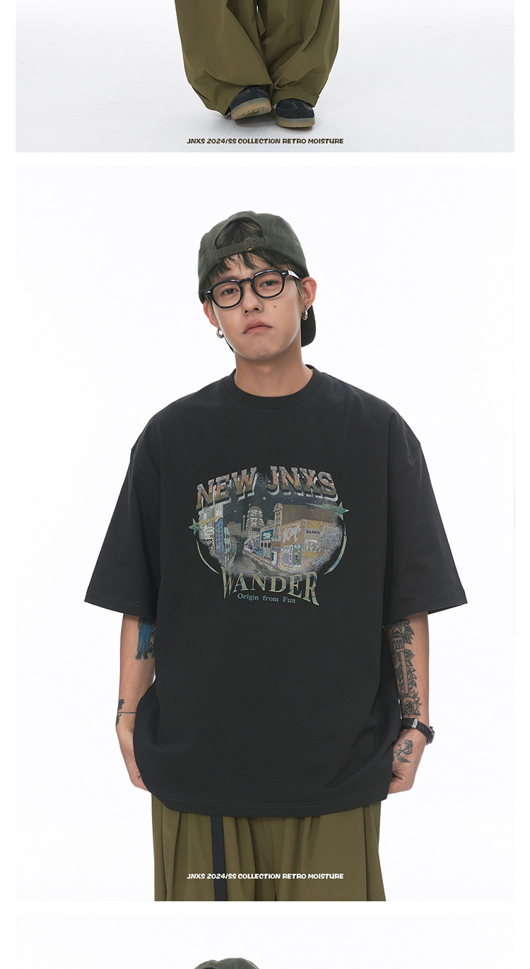 商品名称:江南先生美式复古索罗娜亲肤印花短袖T恤男女夏季潮半袖打底衫 074193