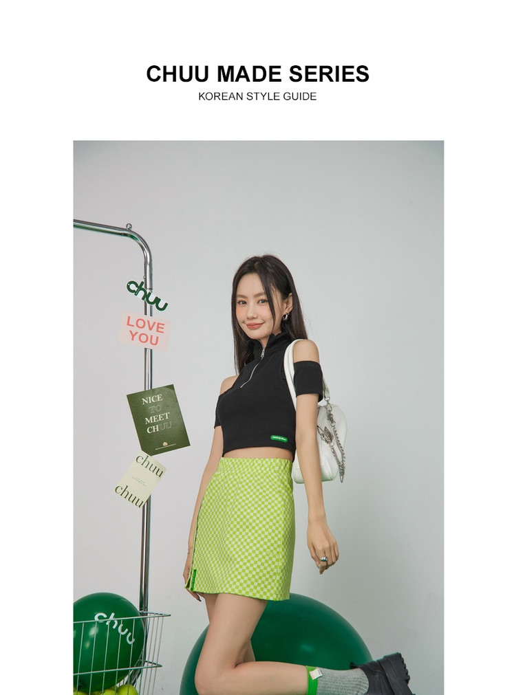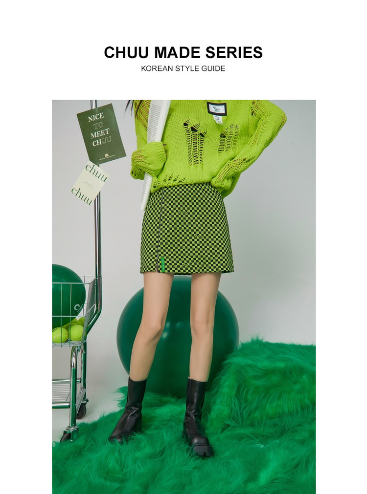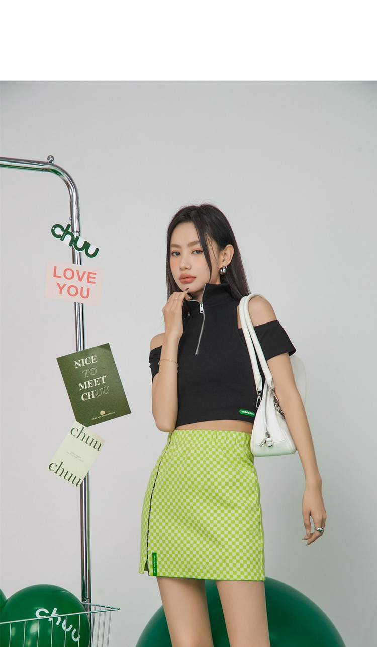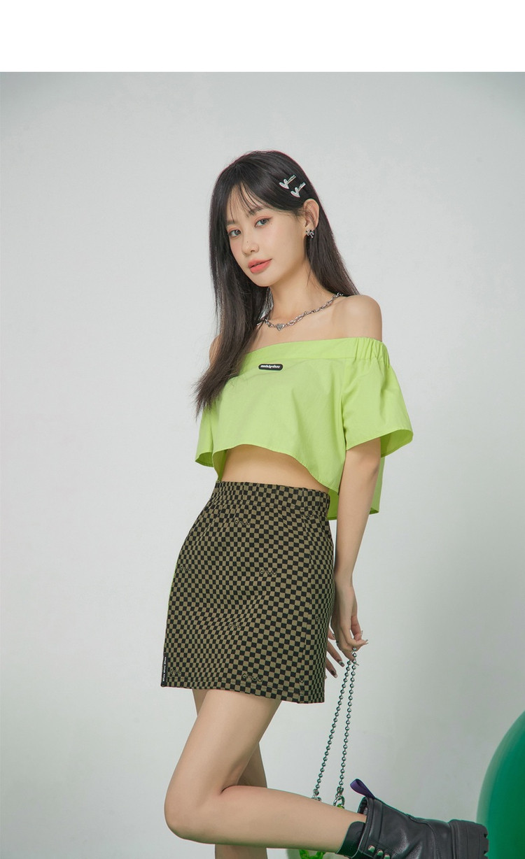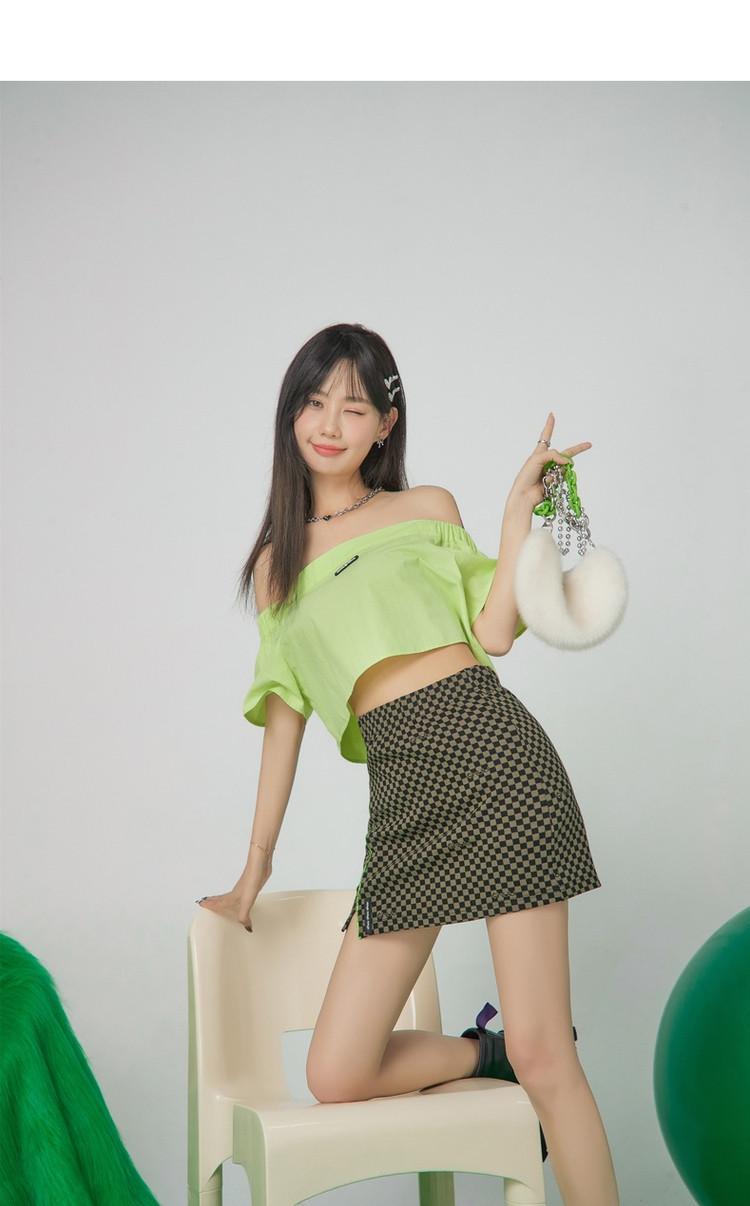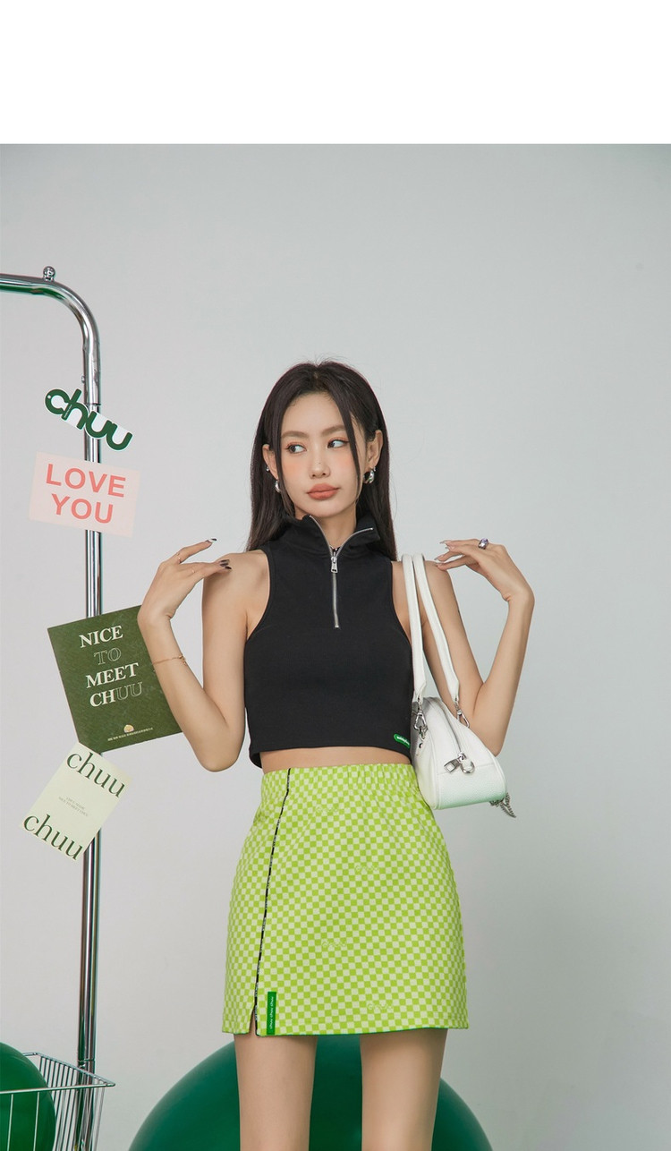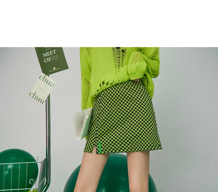 棋盘格高腰开衩半身裙女夏季a字包臀短裙子 596499