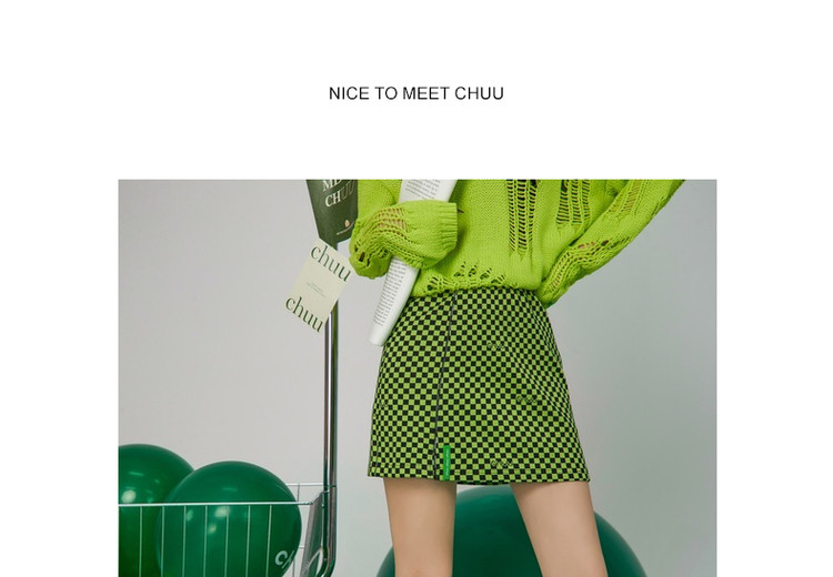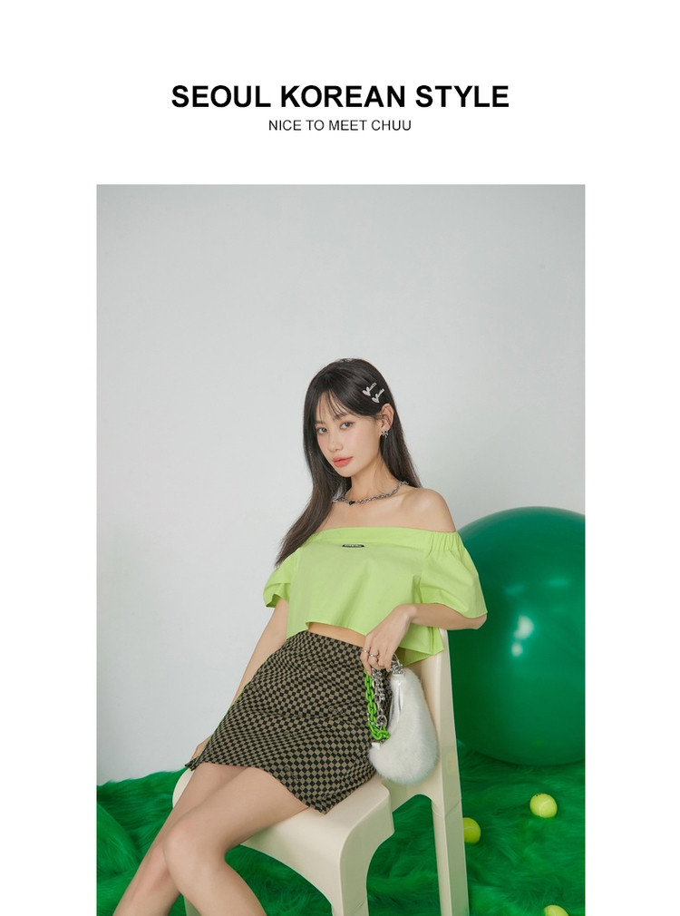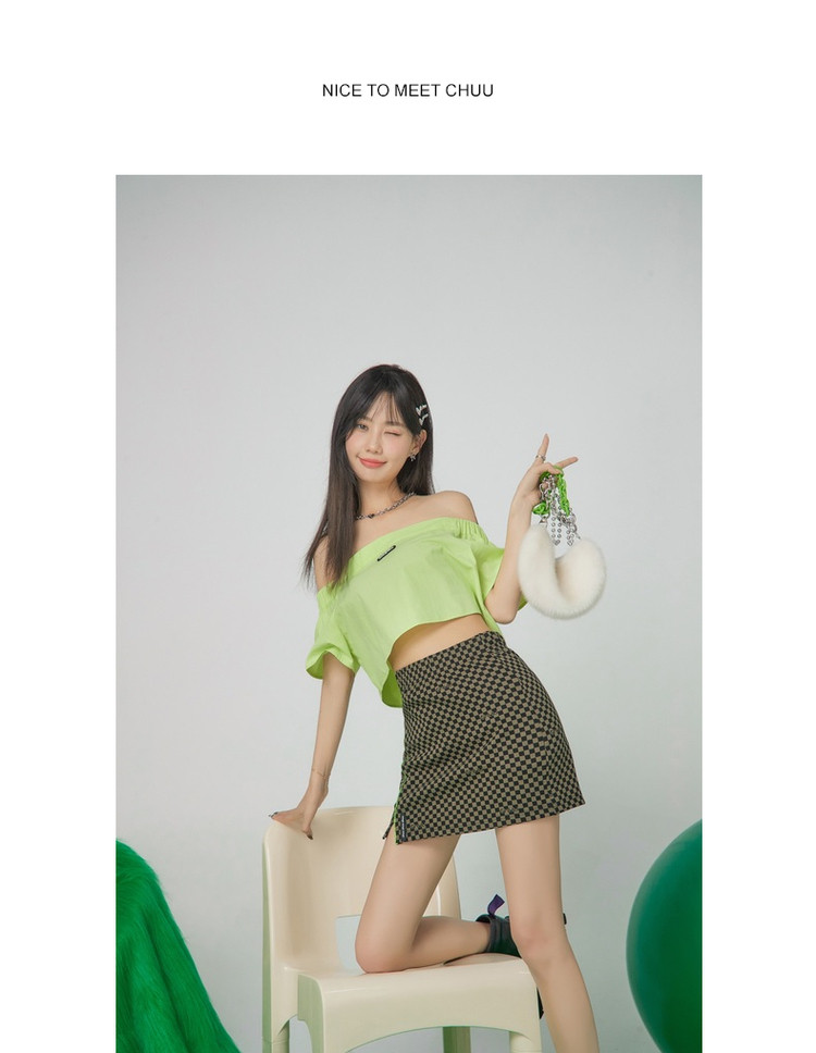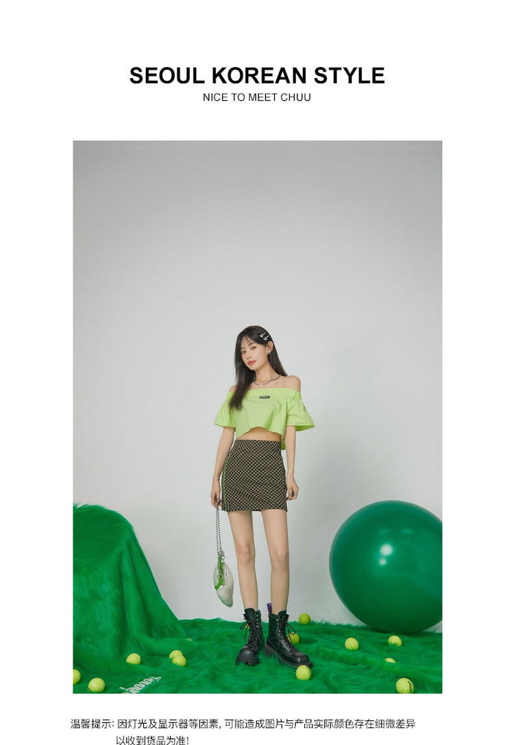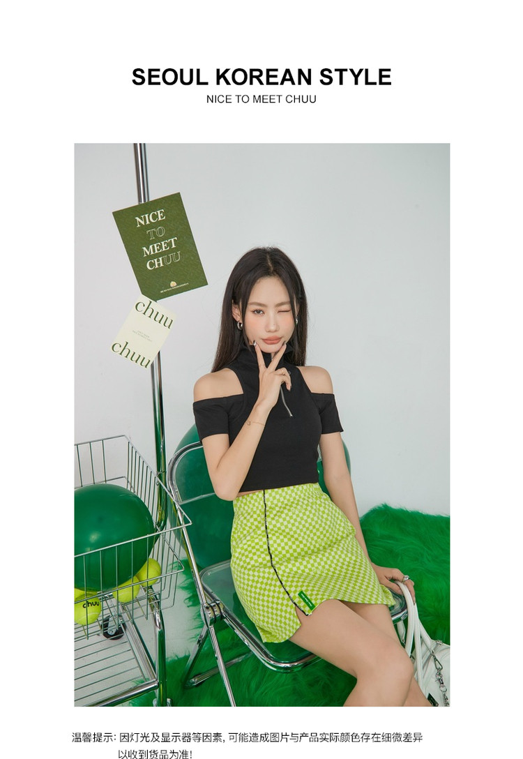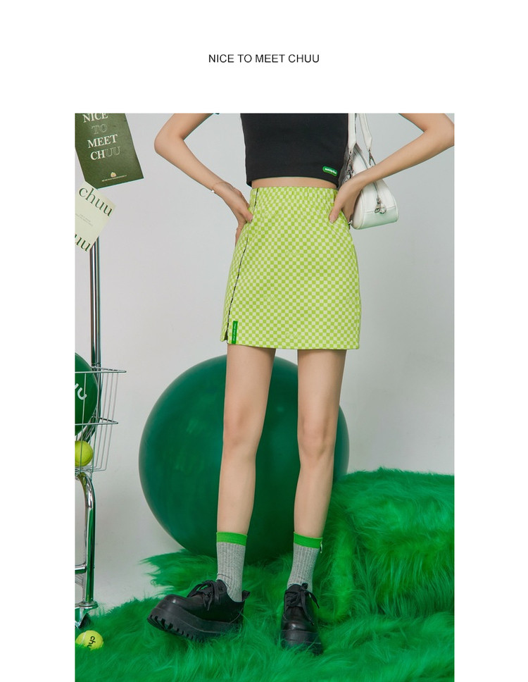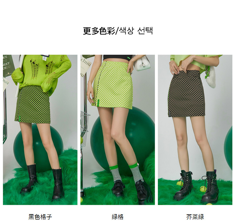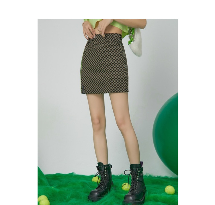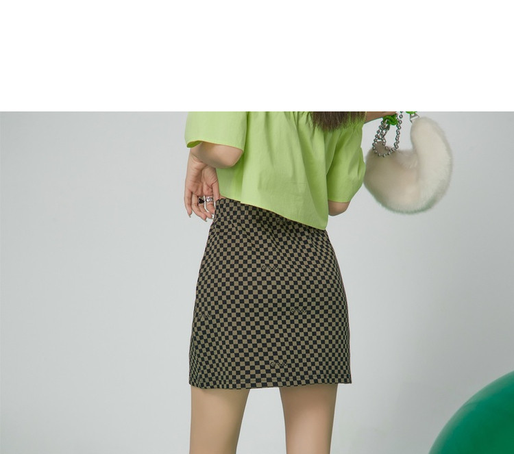 商品名称:棋盘格高腰开衩半身裙女夏季a字包臀短裙子 596499
