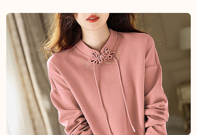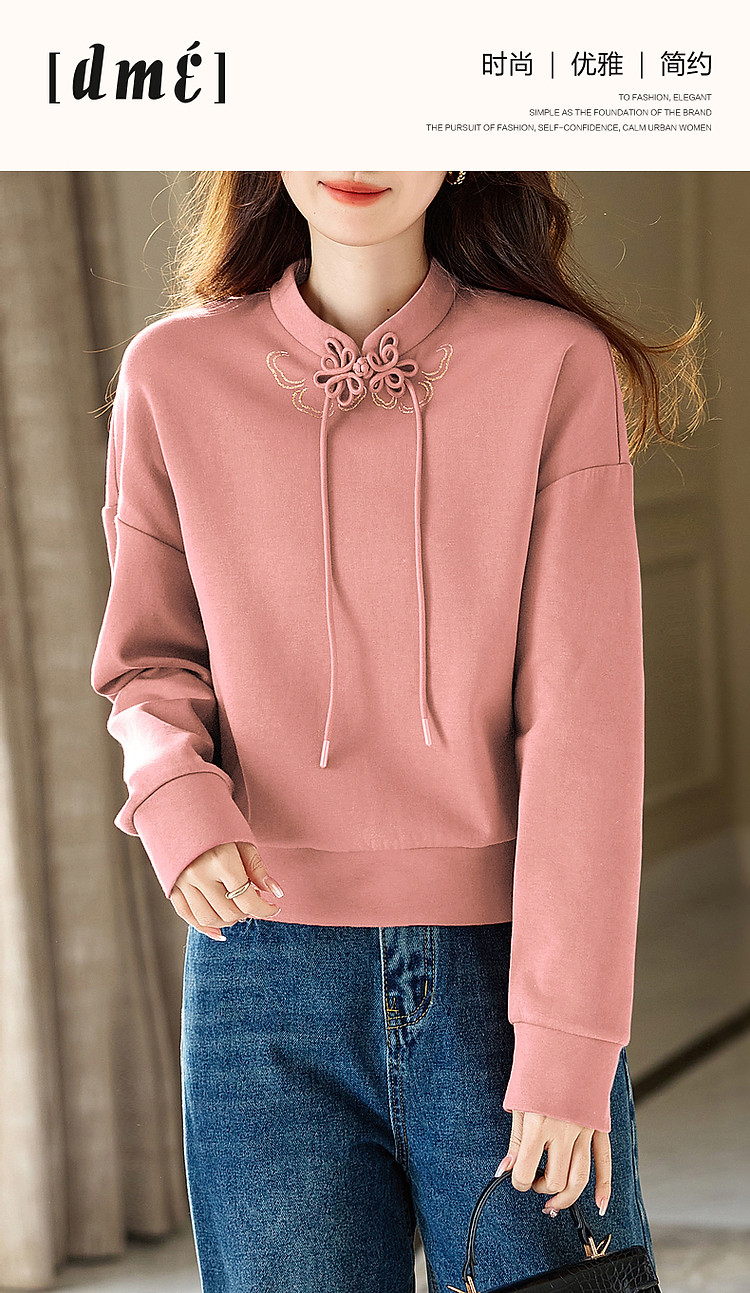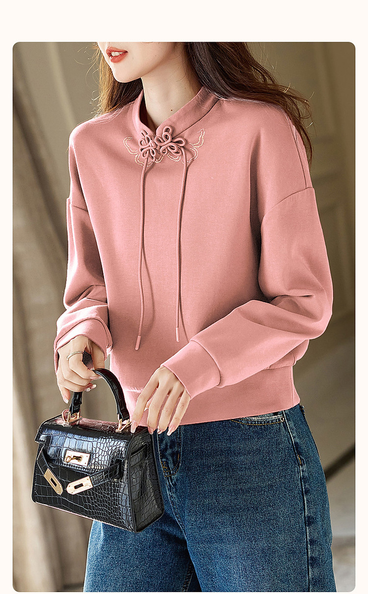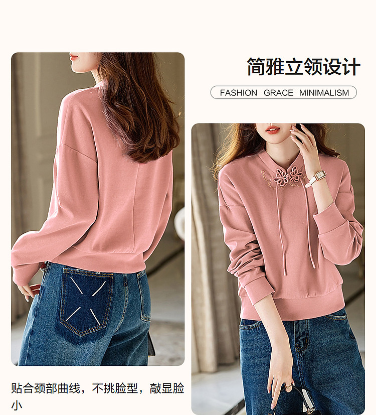 商品名称:【国风新中式】春秋复古立领精致烫印盘扣舒适空气层卫衣女上衣 547585