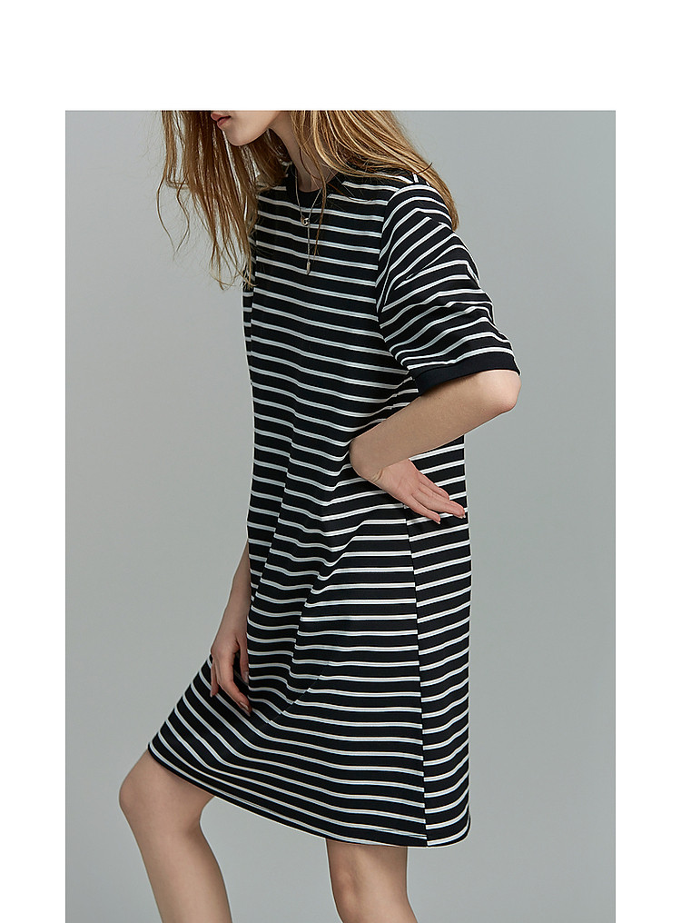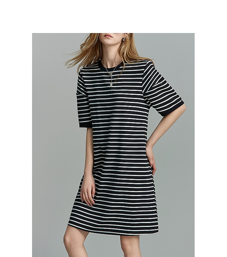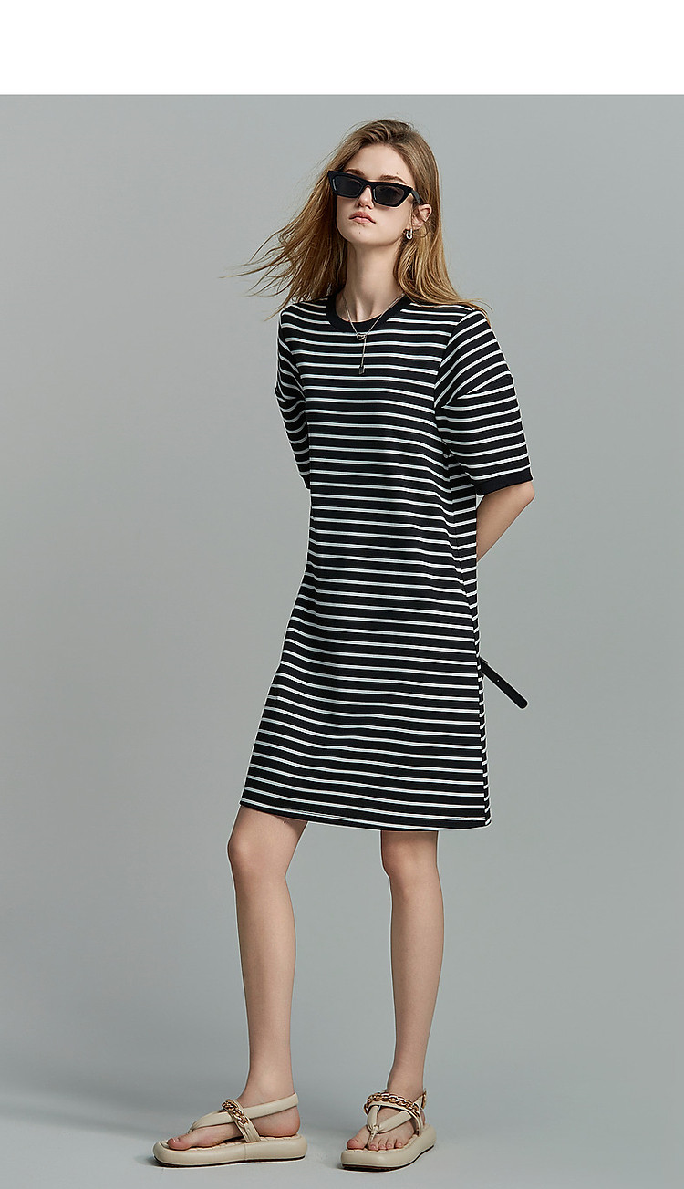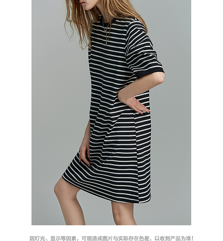 商品名称:【后青春的诗】夏懒人免搭圆领条纹短袖小个子短款针织连衣裙女 082177