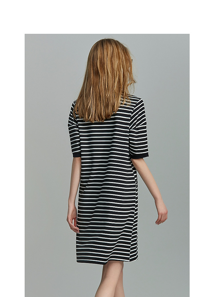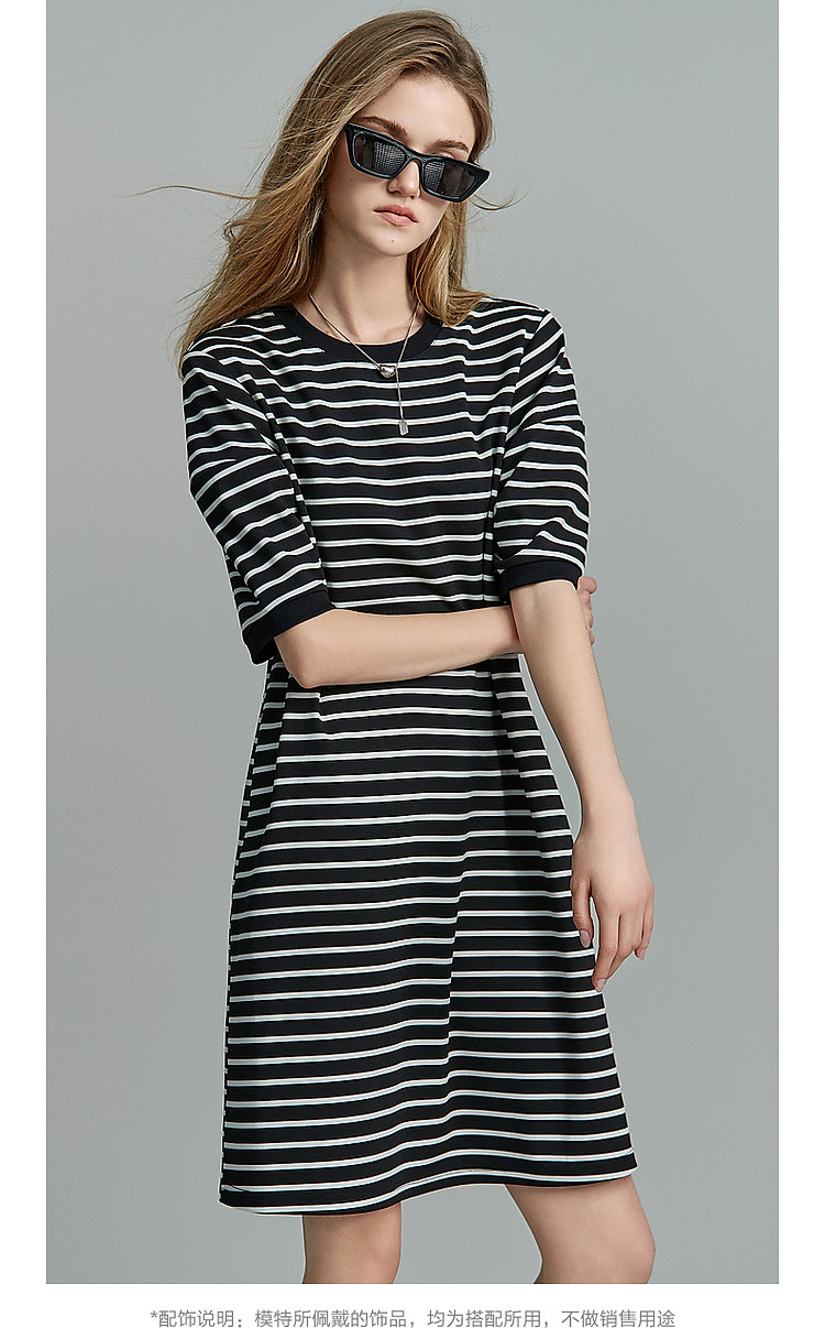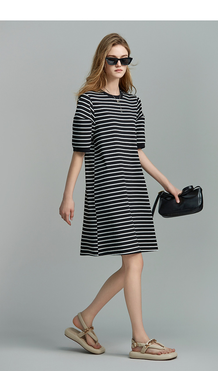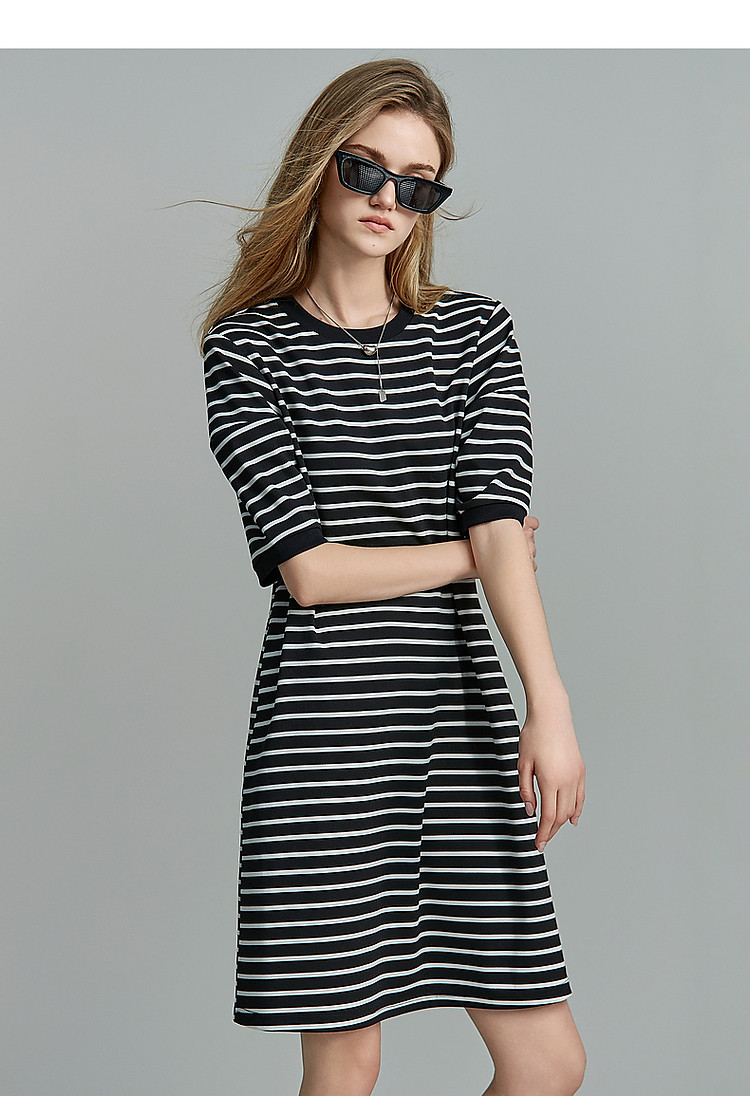 商品名称:【后青春的诗】夏懒人免搭圆领条纹短袖小个子短款针织连衣裙女 082177