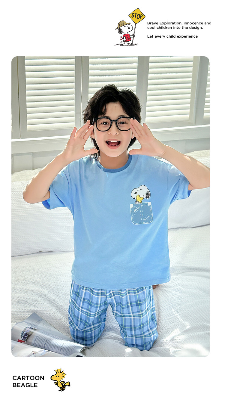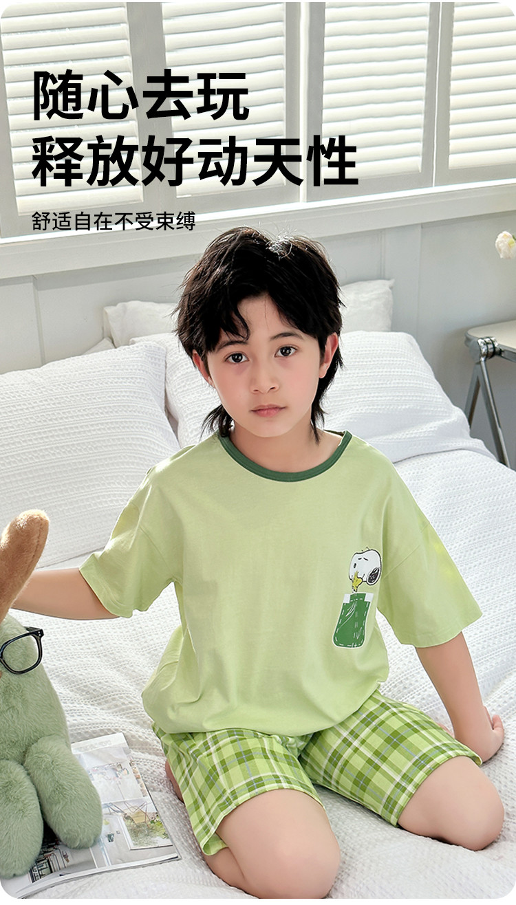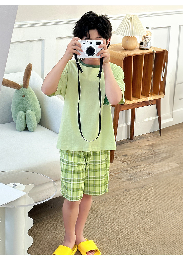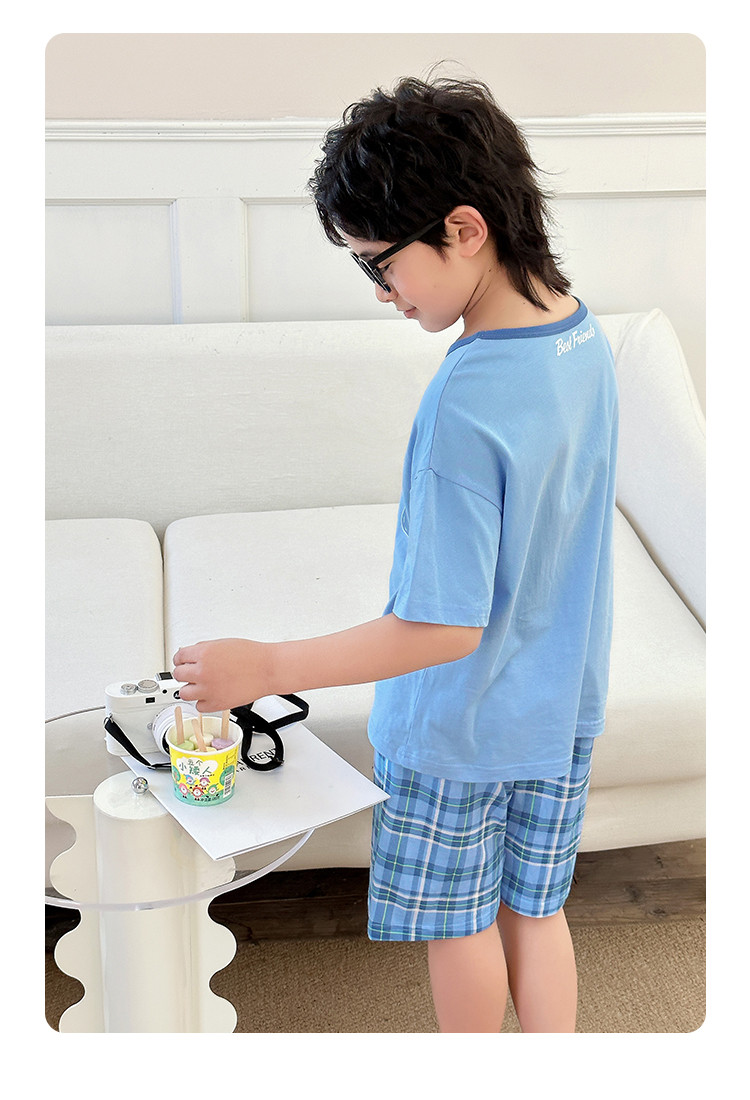 商品名称:【纯棉套装】夏季空调服短袖短裤2件套儿童家居服中大童睡衣套装 353048