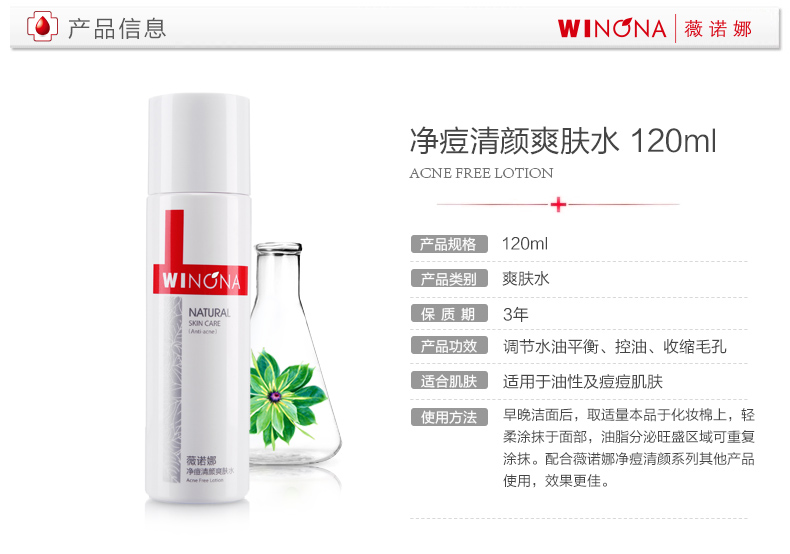 商品名称:Winqan/薇诺娜 净痘清颜爽肤水 120ml 控油补水