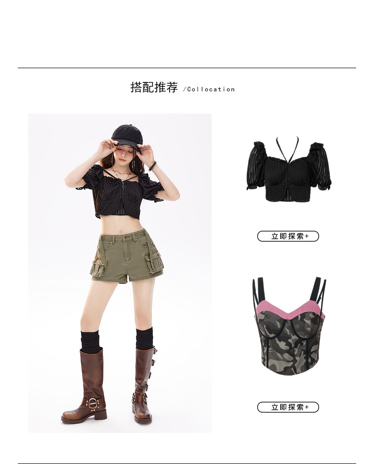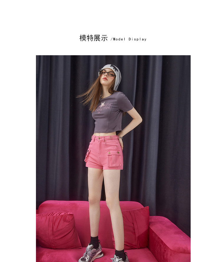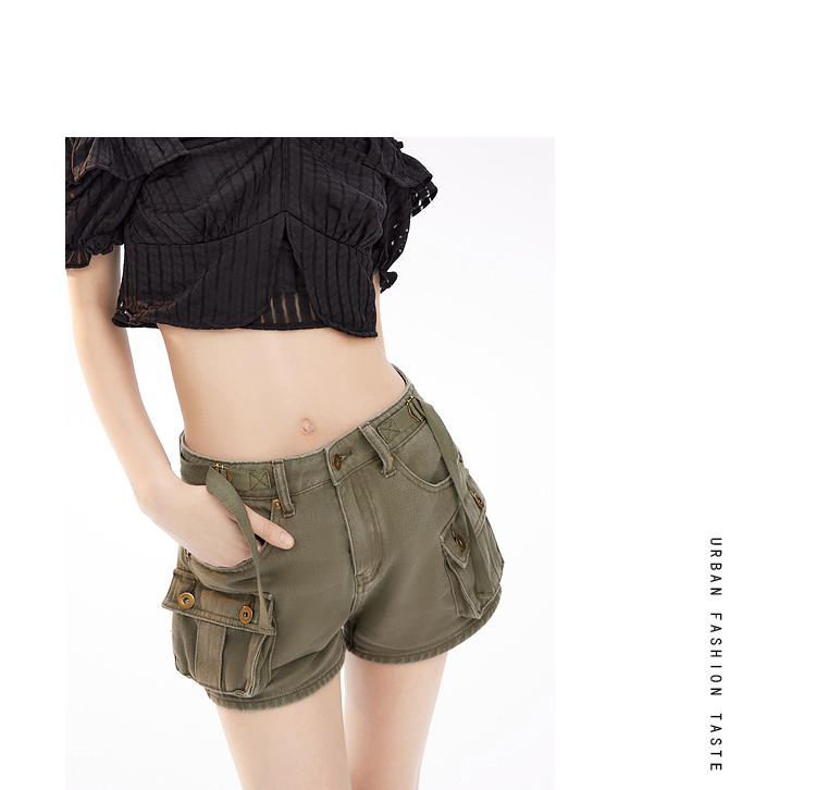 商品名称:美式复古大口袋牛仔短裤女辣妹工装a字热裤 371668
