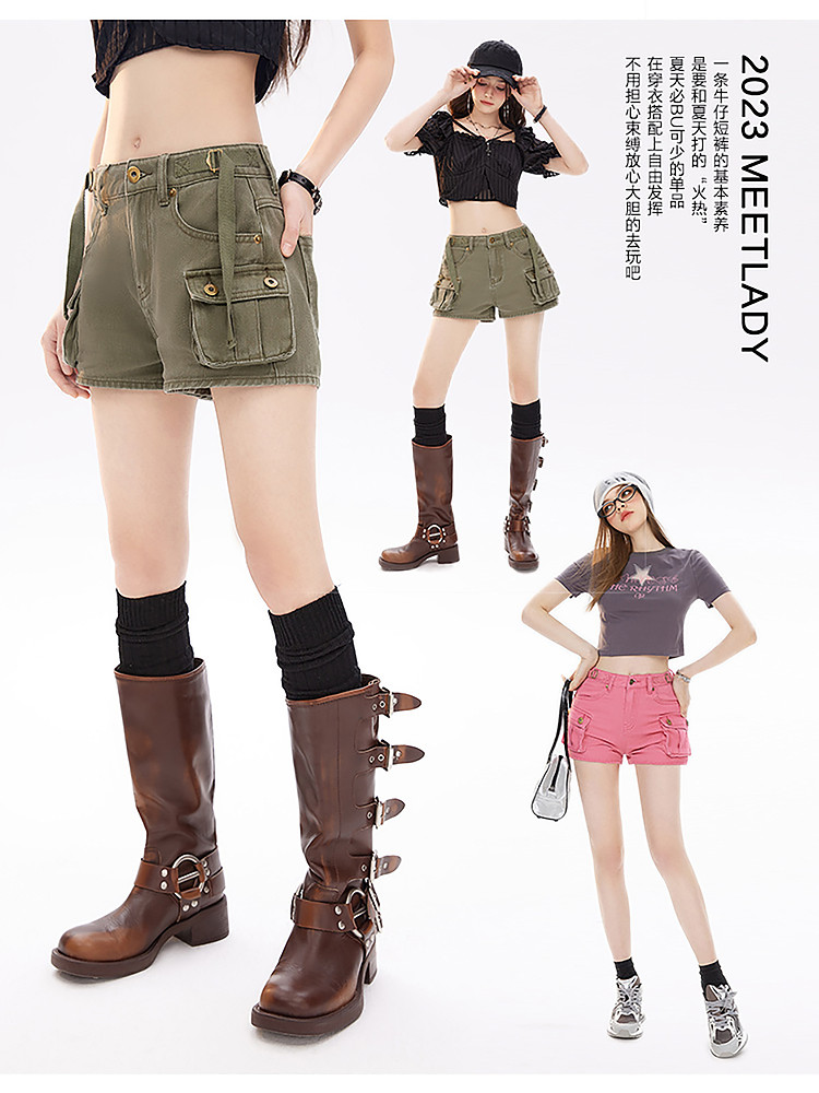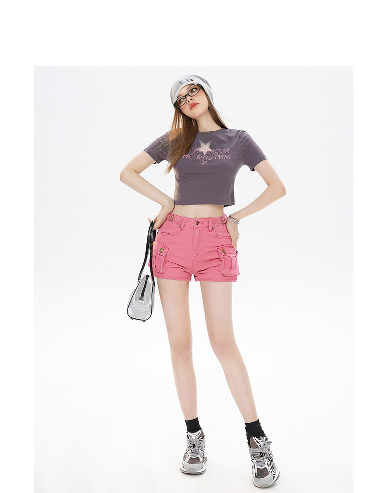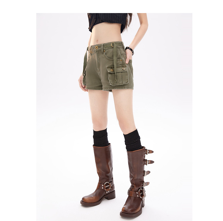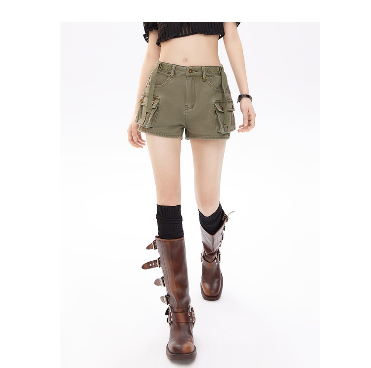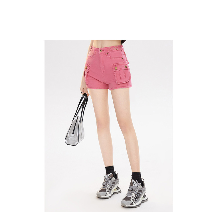 美式复古大口袋牛仔短裤女辣妹工装a字热裤 371668