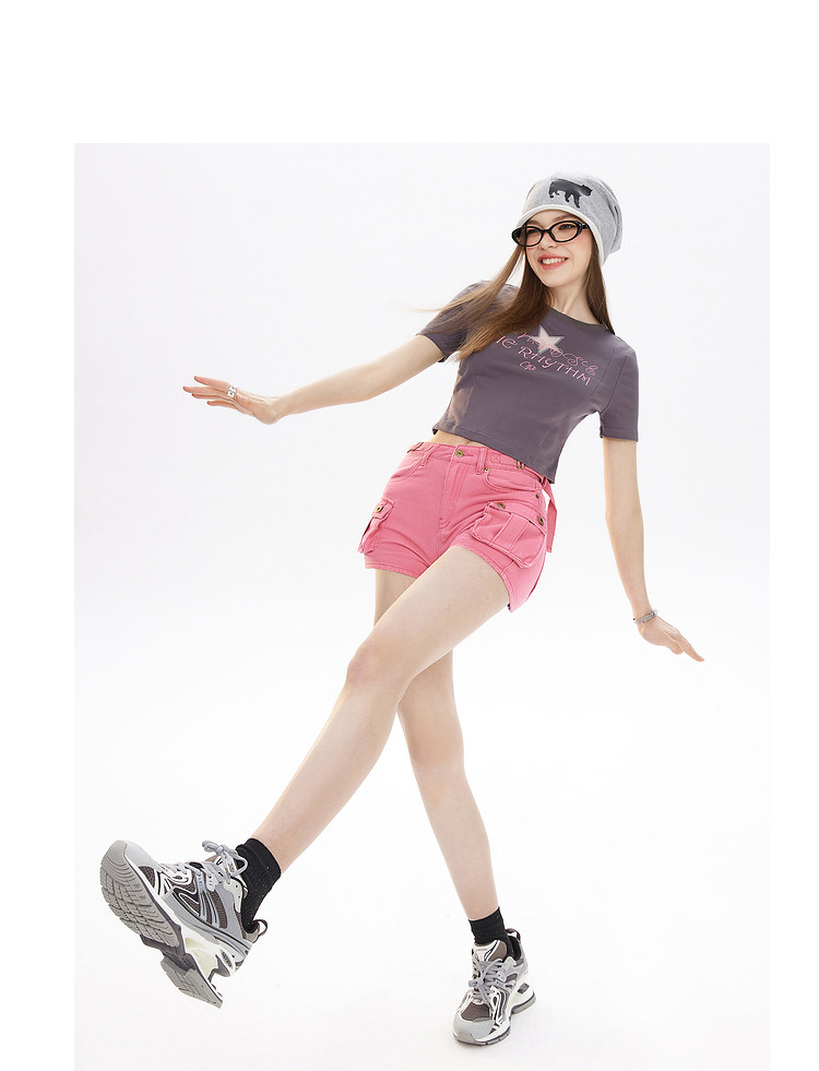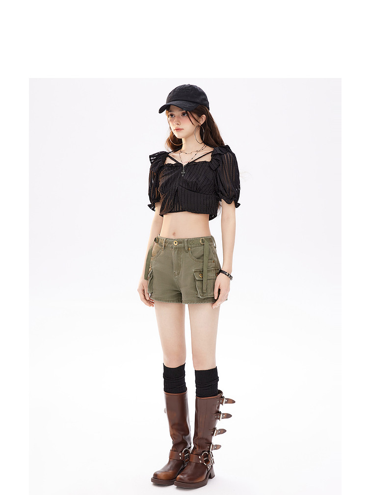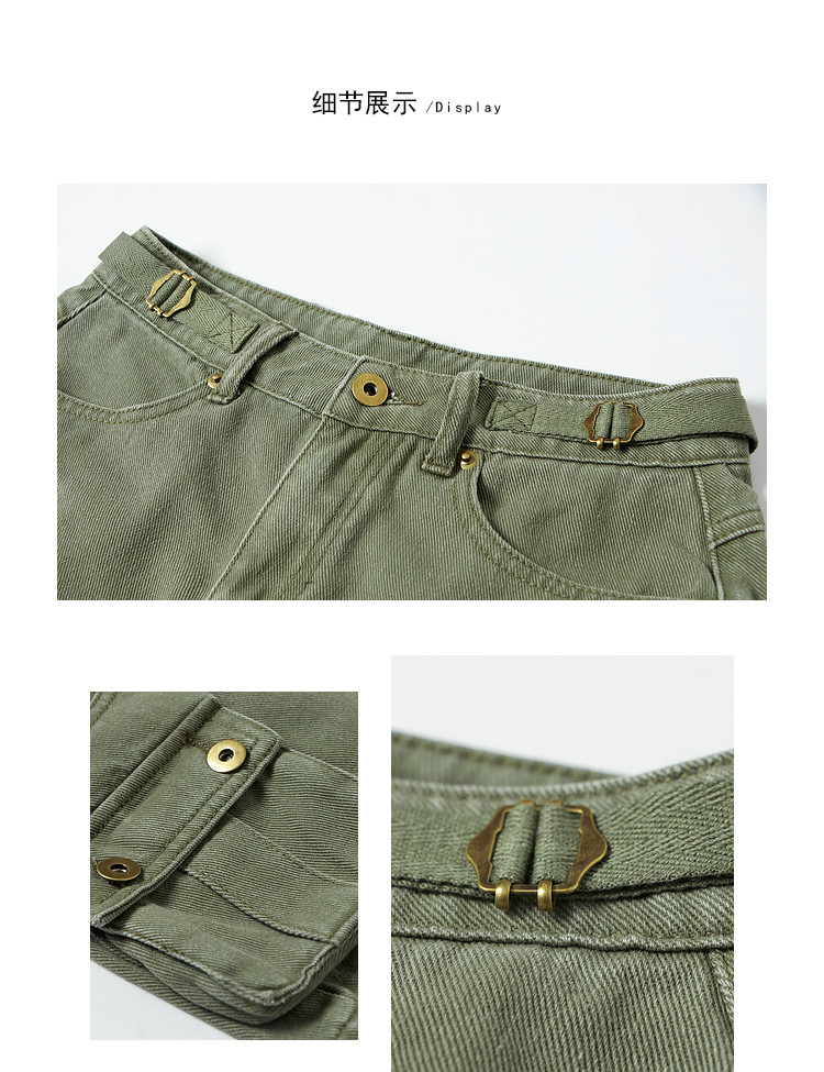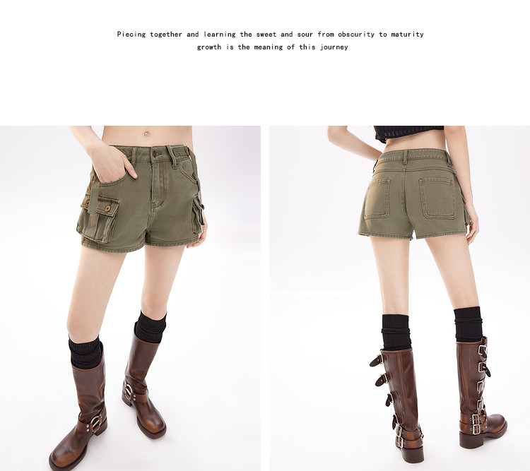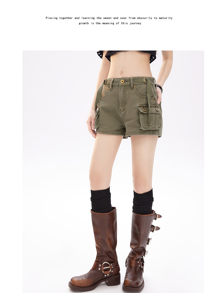 美式复古大口袋牛仔短裤女辣妹工装a字热裤 371668