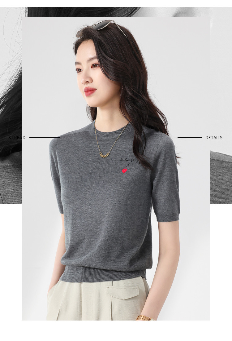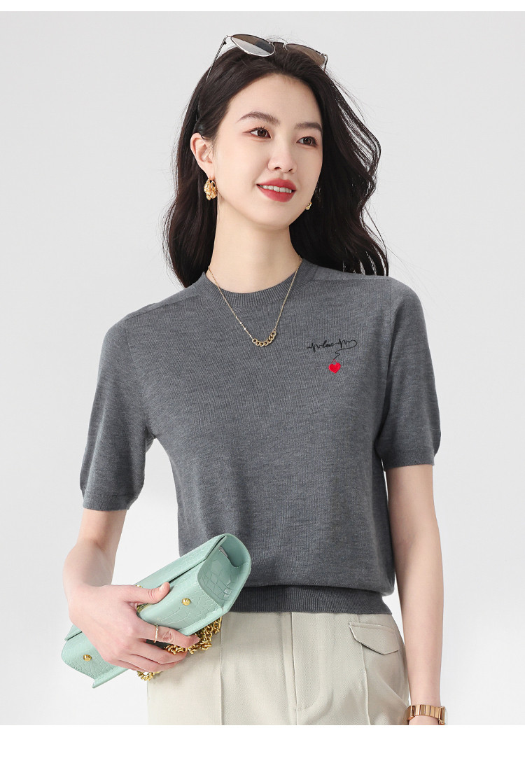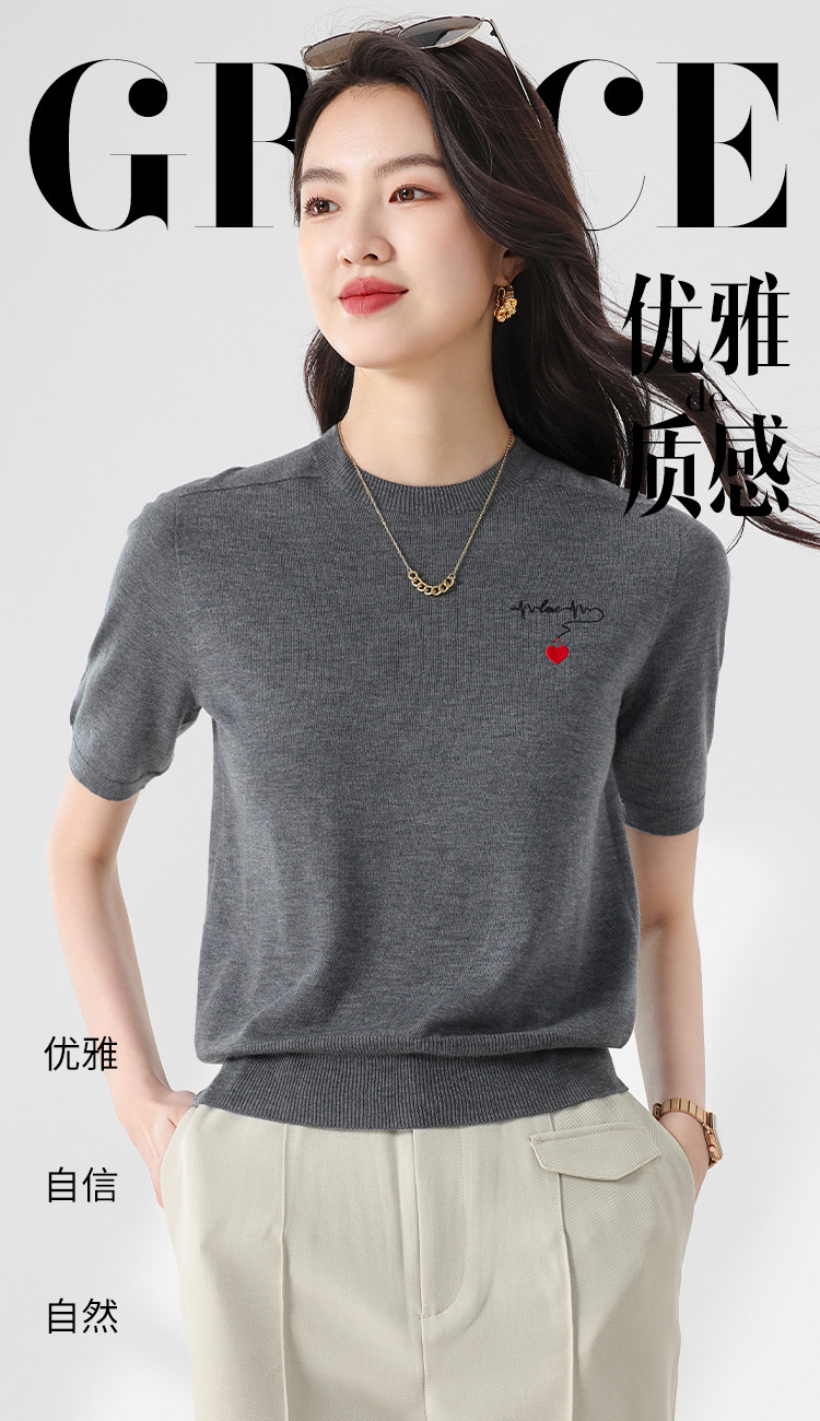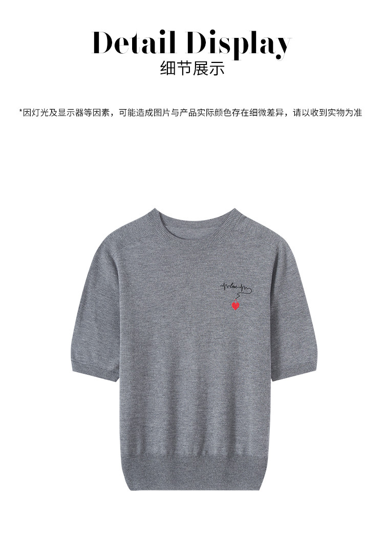 商品名称:【无缝 一线成衣】轻薄透气含桑蚕丝刺绣爱心针织打底衫短袖T恤 765395