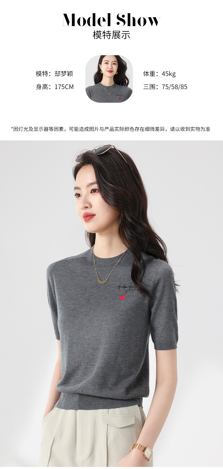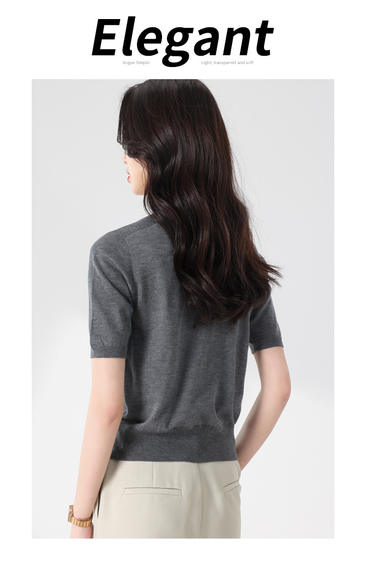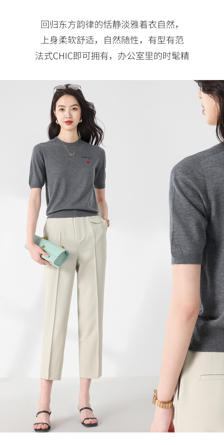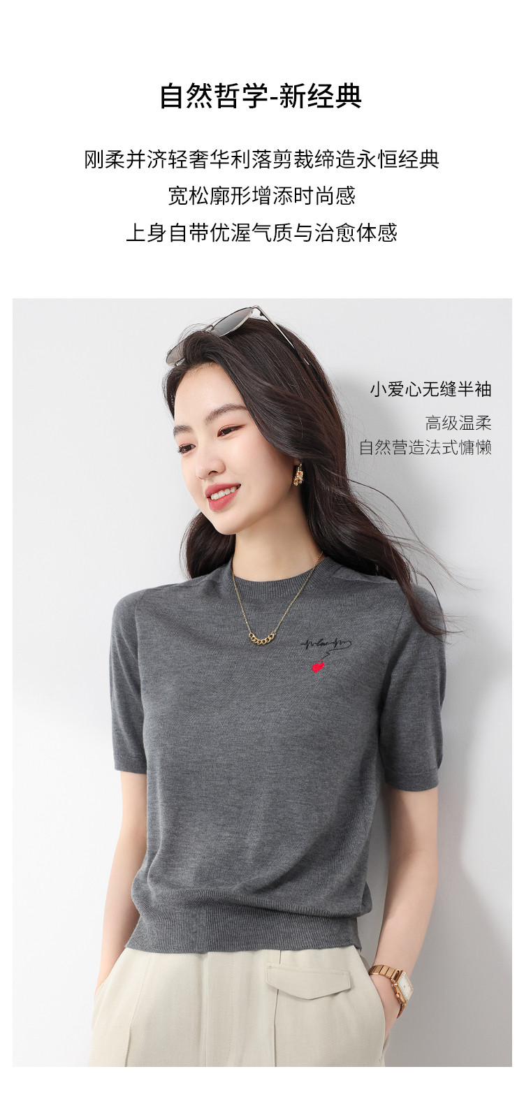 商品名称:【无缝 一线成衣】轻薄透气含桑蚕丝刺绣爱心针织打底衫短袖T恤 765395