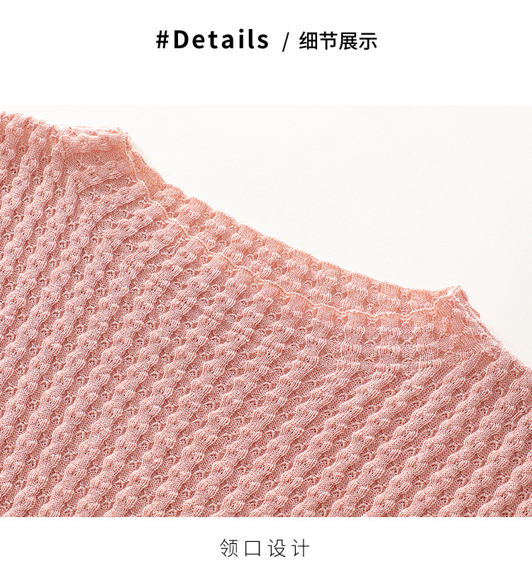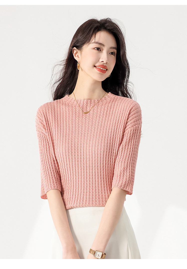 轻薄透气纯色泡泡提花圆领含桑蚕丝针织衫女夏打底衫短袖T恤 233299