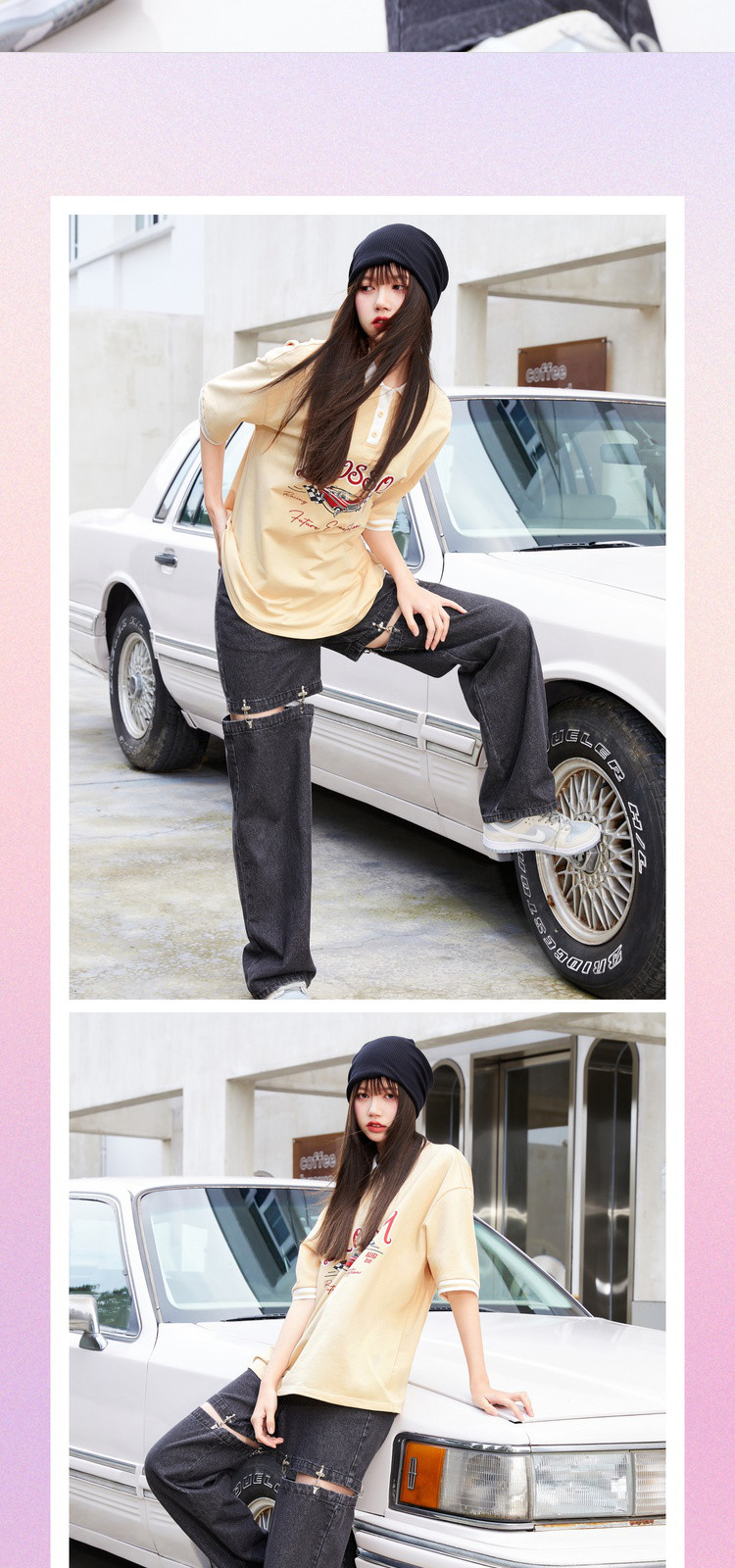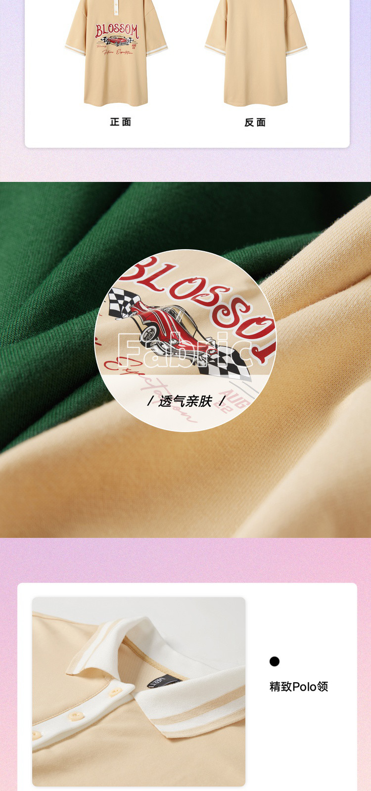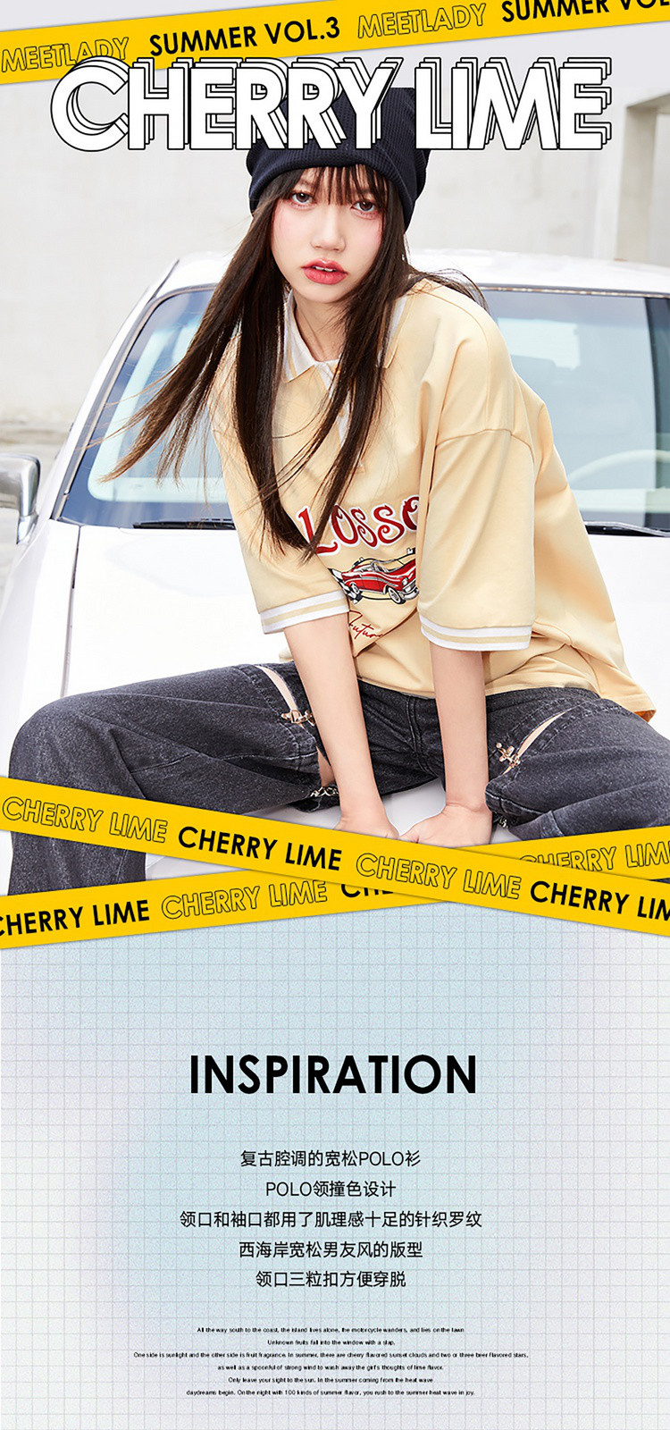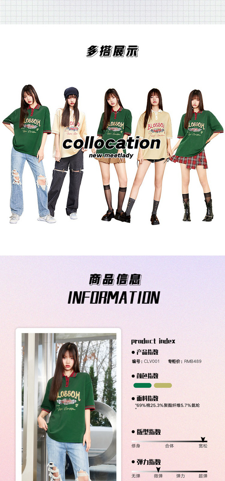 商品名称:复古POLO领撞色印花宽松T恤女韩版休闲上衣 749780
