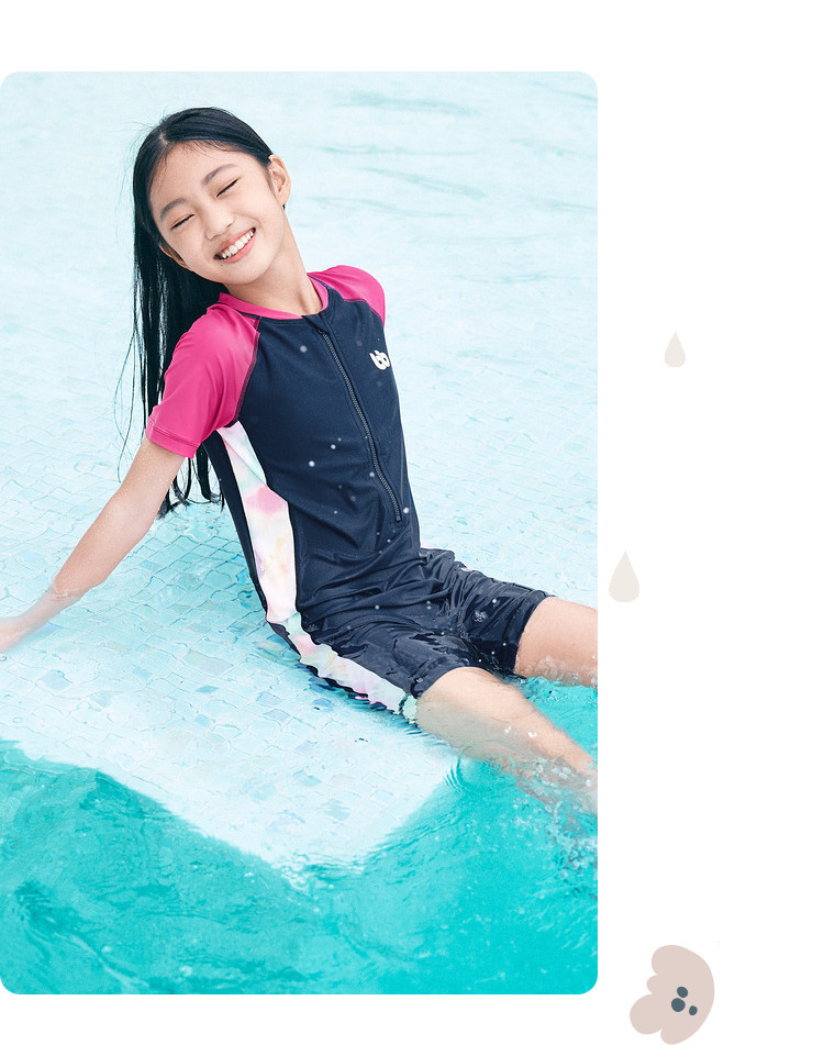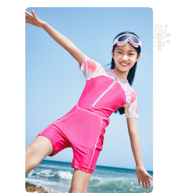 防晒抗UV儿童泳装中大童连体泳衣撞色女童高弹力夏季耐氯薄款 724357