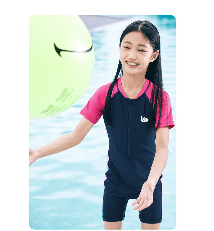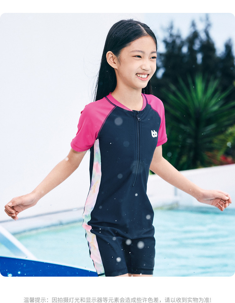 商品名称:防晒抗UV儿童泳装中大童连体泳衣撞色女童高弹力夏季耐氯薄款 724357
