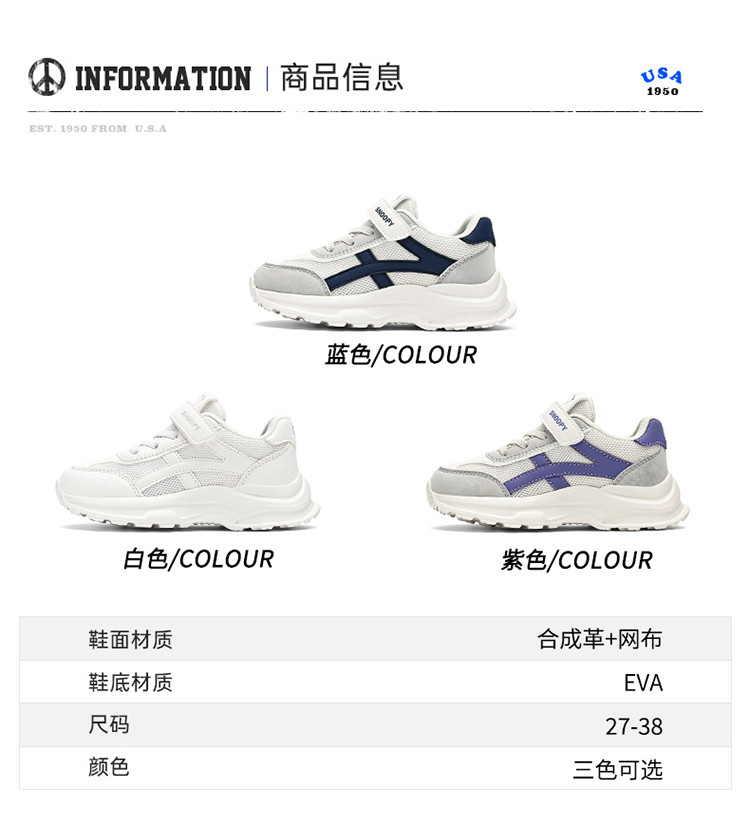 商品名称:2025史努比春秋季舒适百搭简约百搭潮流中大童跑步鞋老爹鞋 805533
