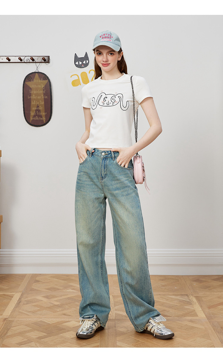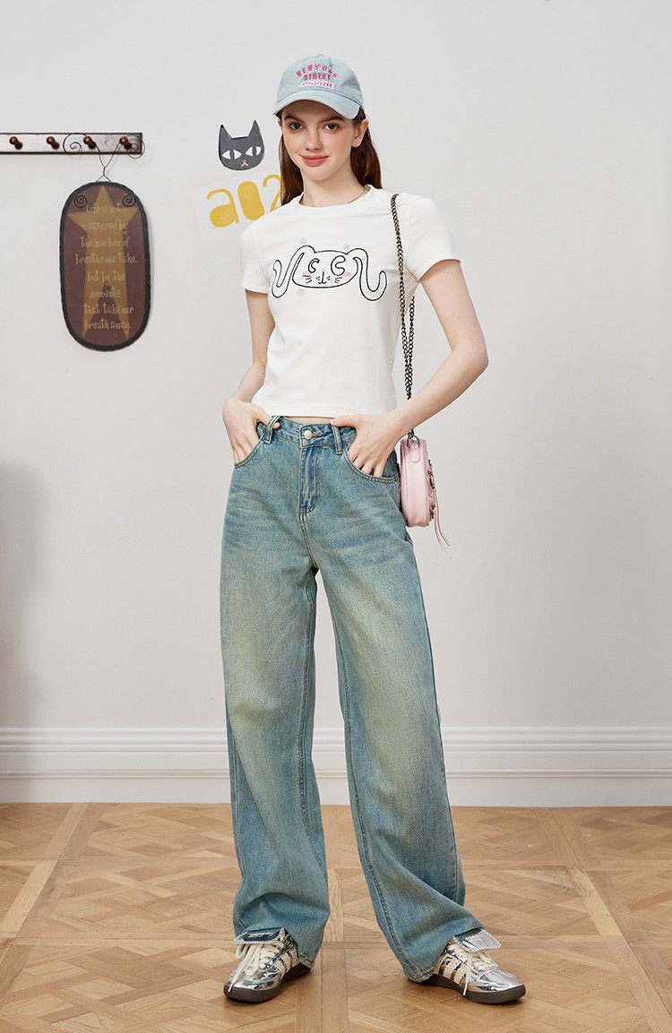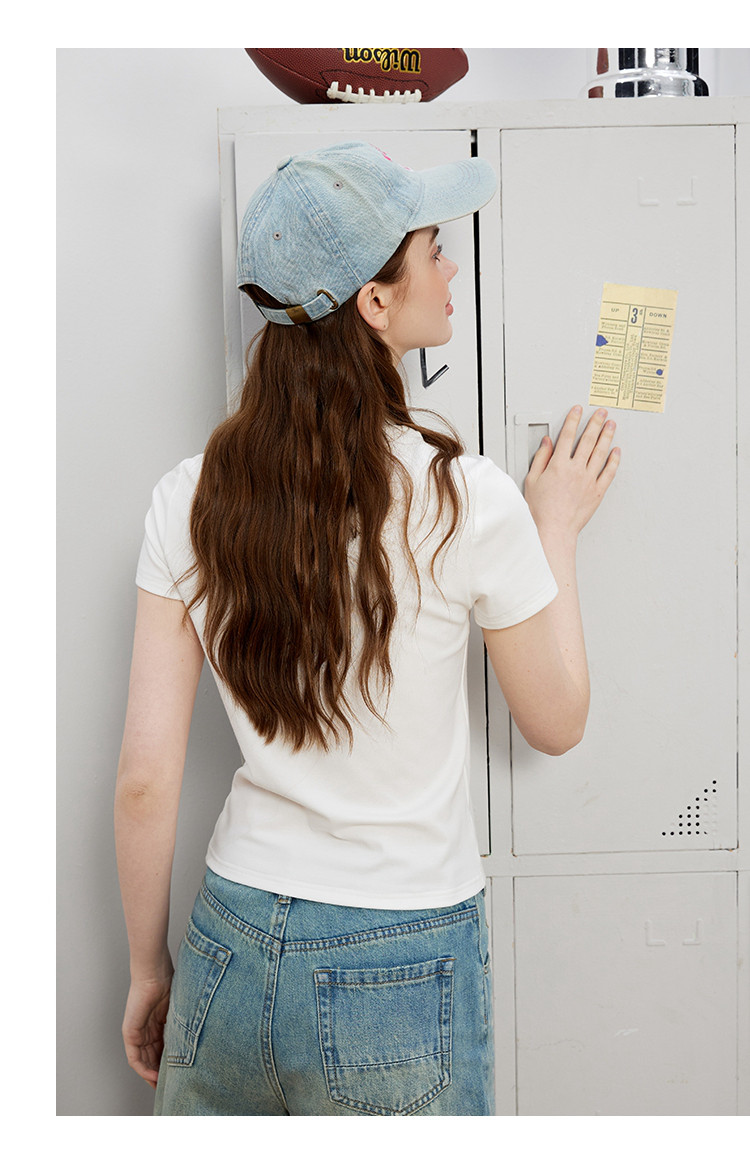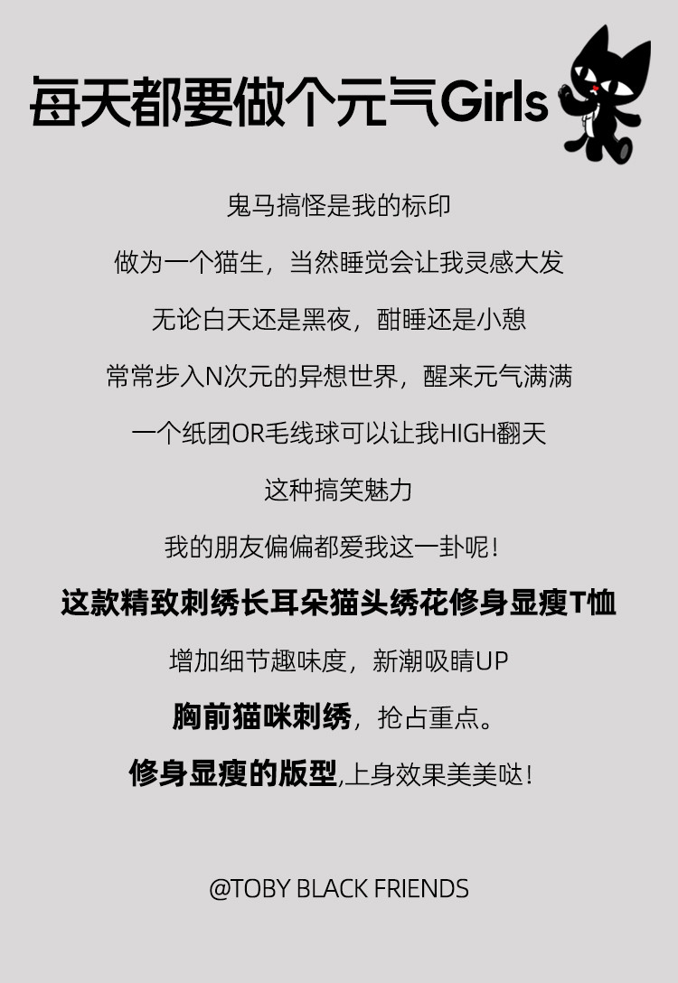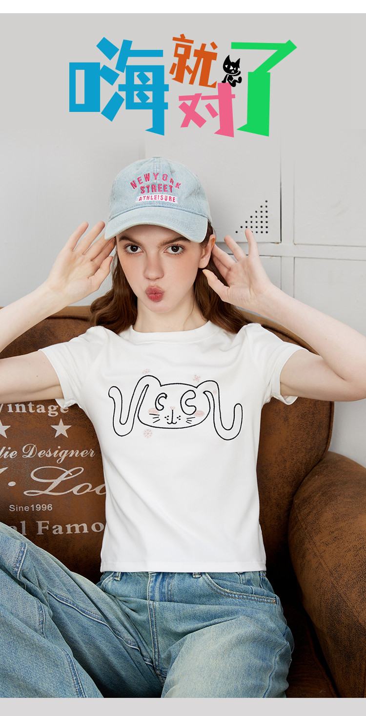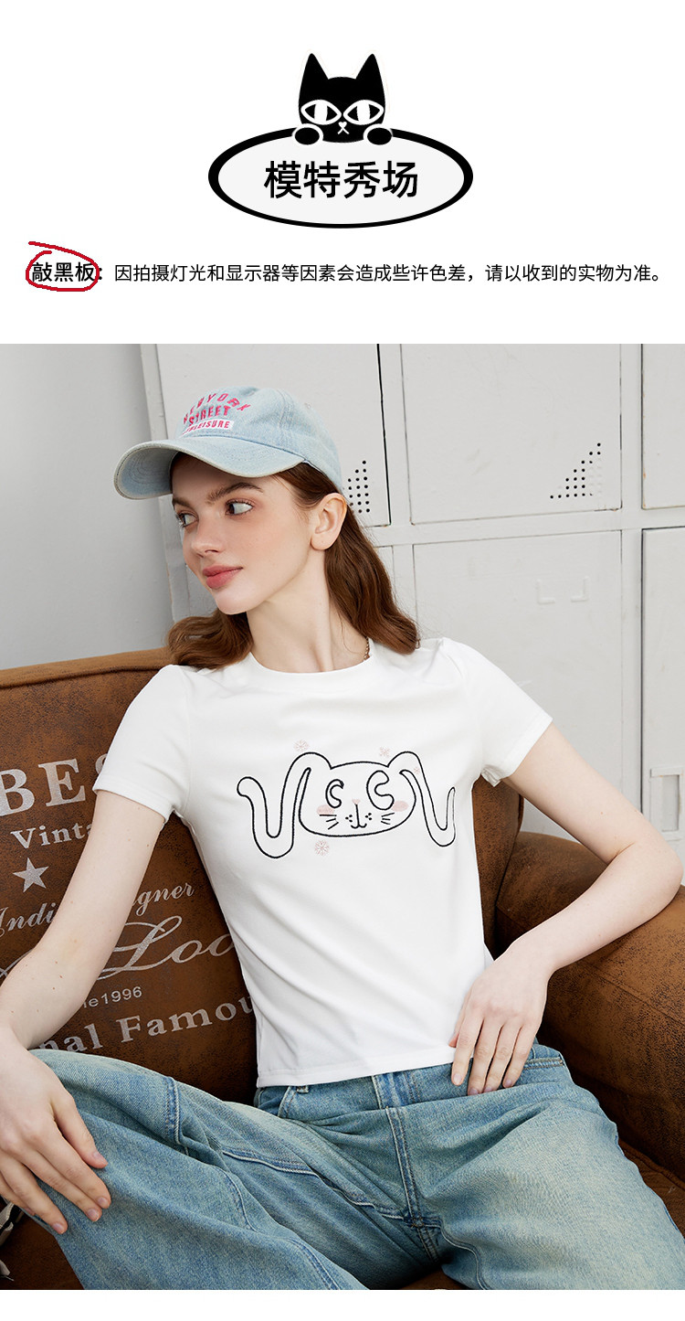 商品名称:精致刺绣长耳朵猫头绣花修身显瘦短袖夏季女式T恤 763357